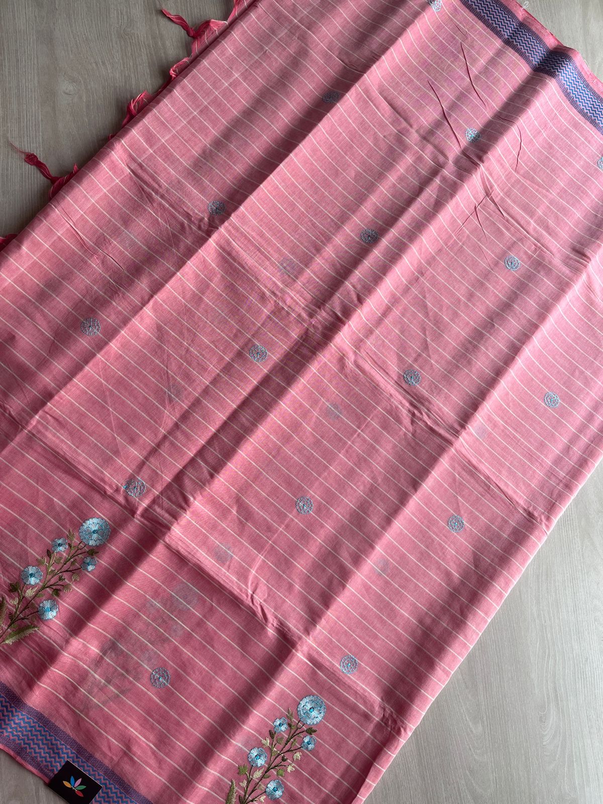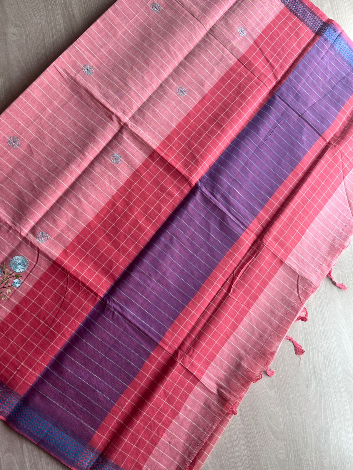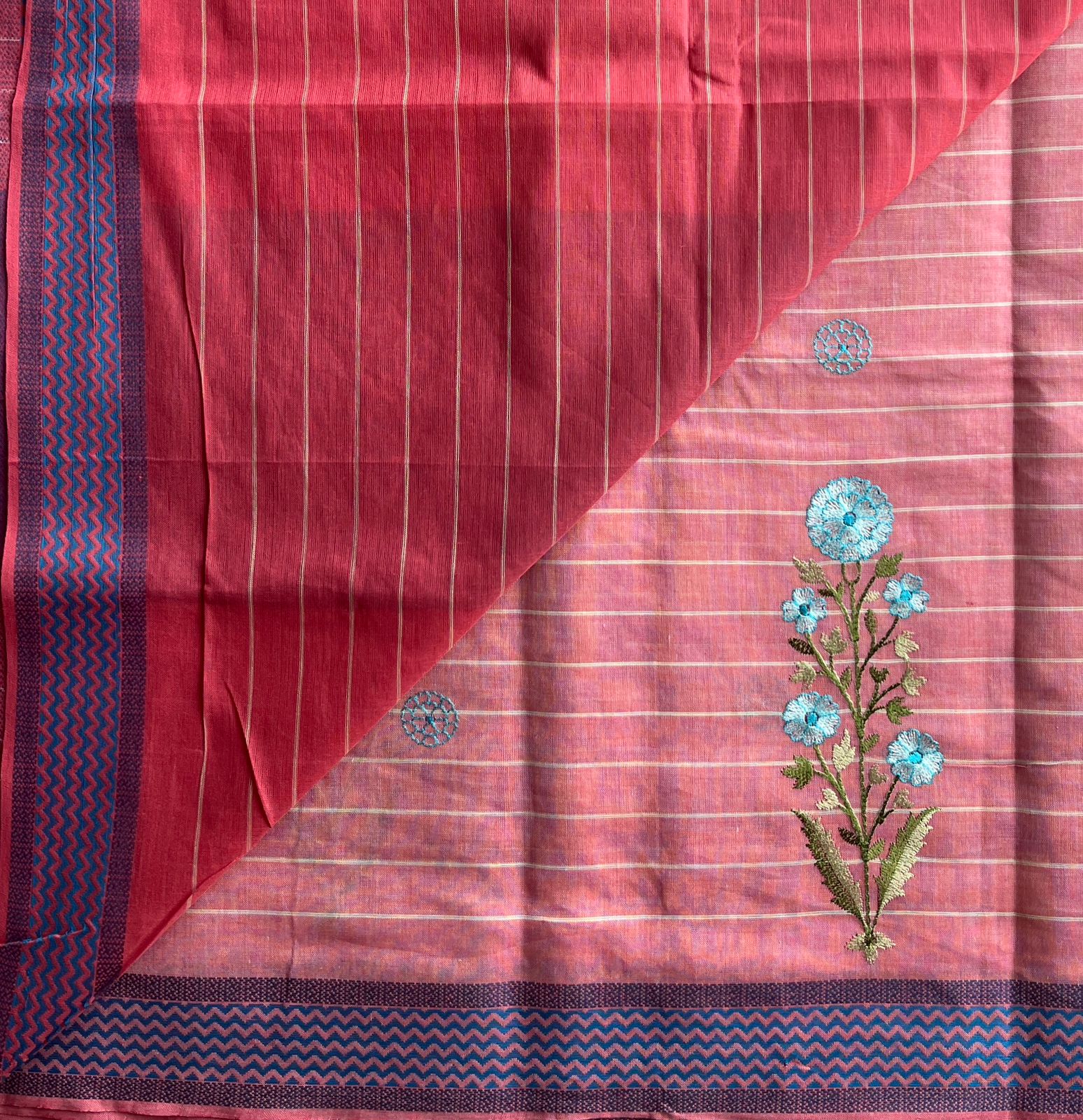 Machine Embroidered Cotton Saree