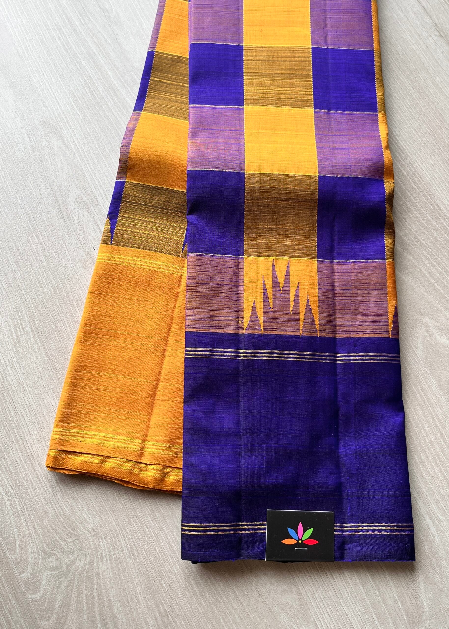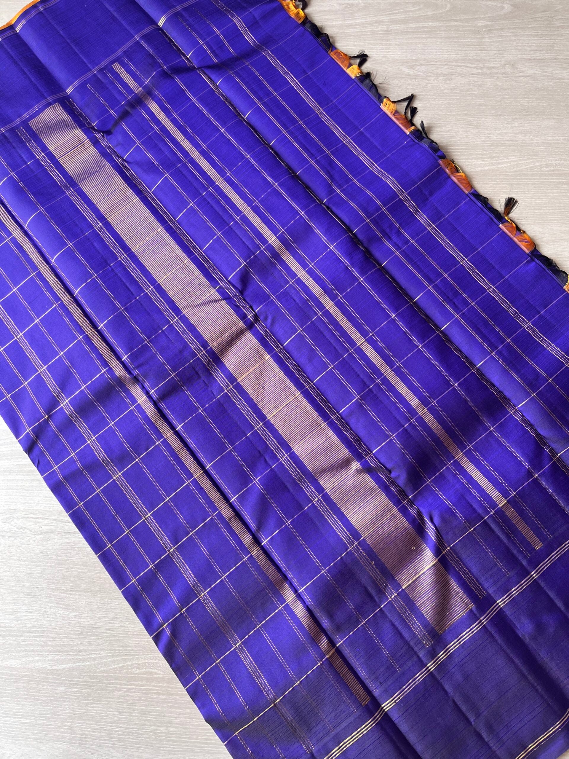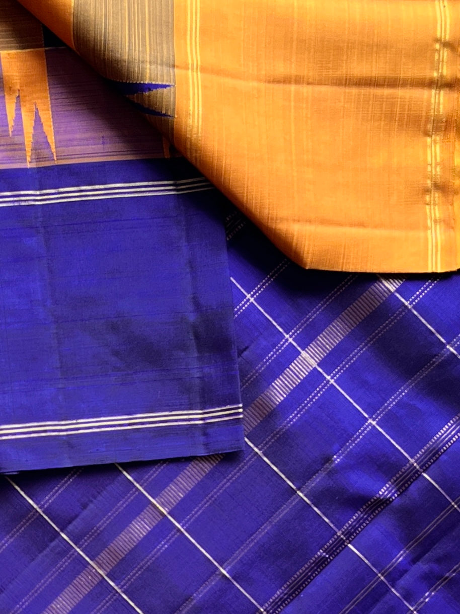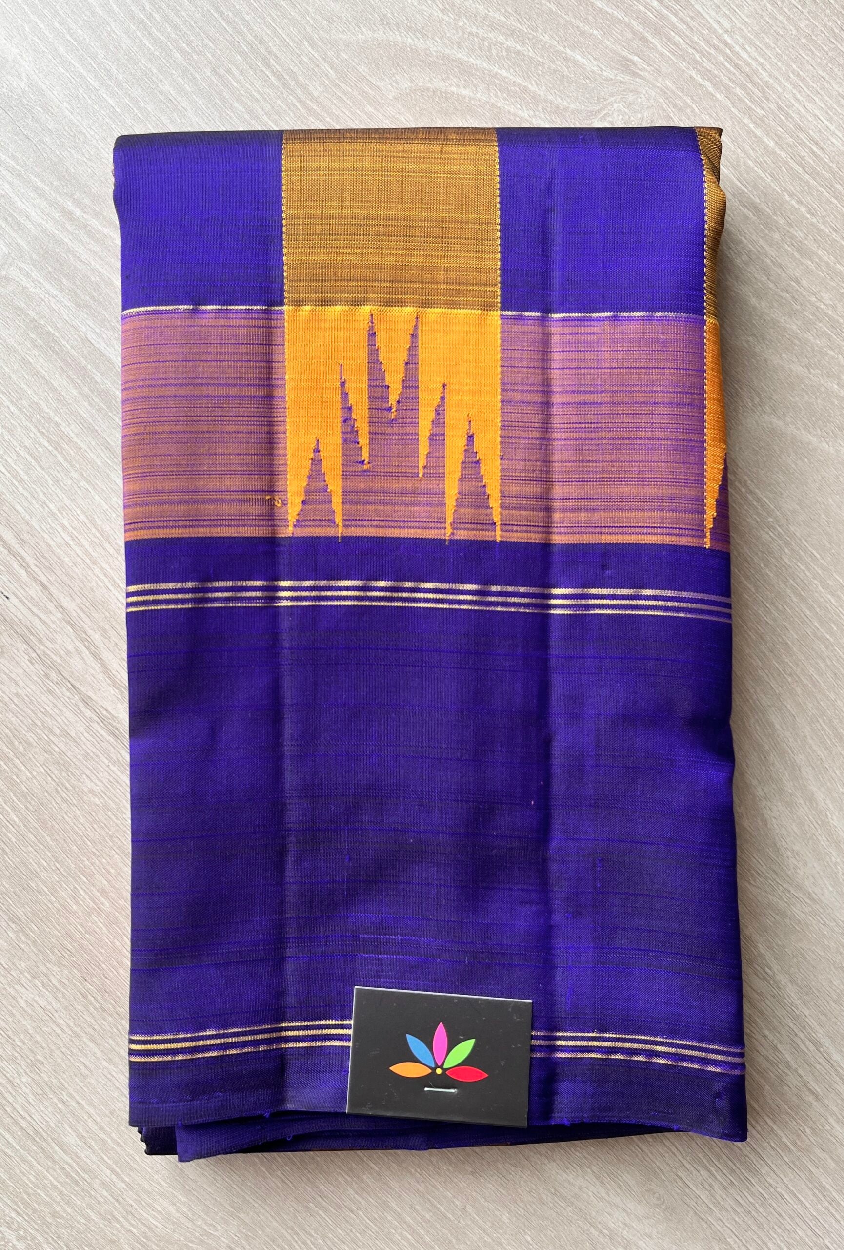 Midnight Blue-Mustard Thazhampoo Contrast Korvai Handloom Pure Kancheevaram Silk Saree -106