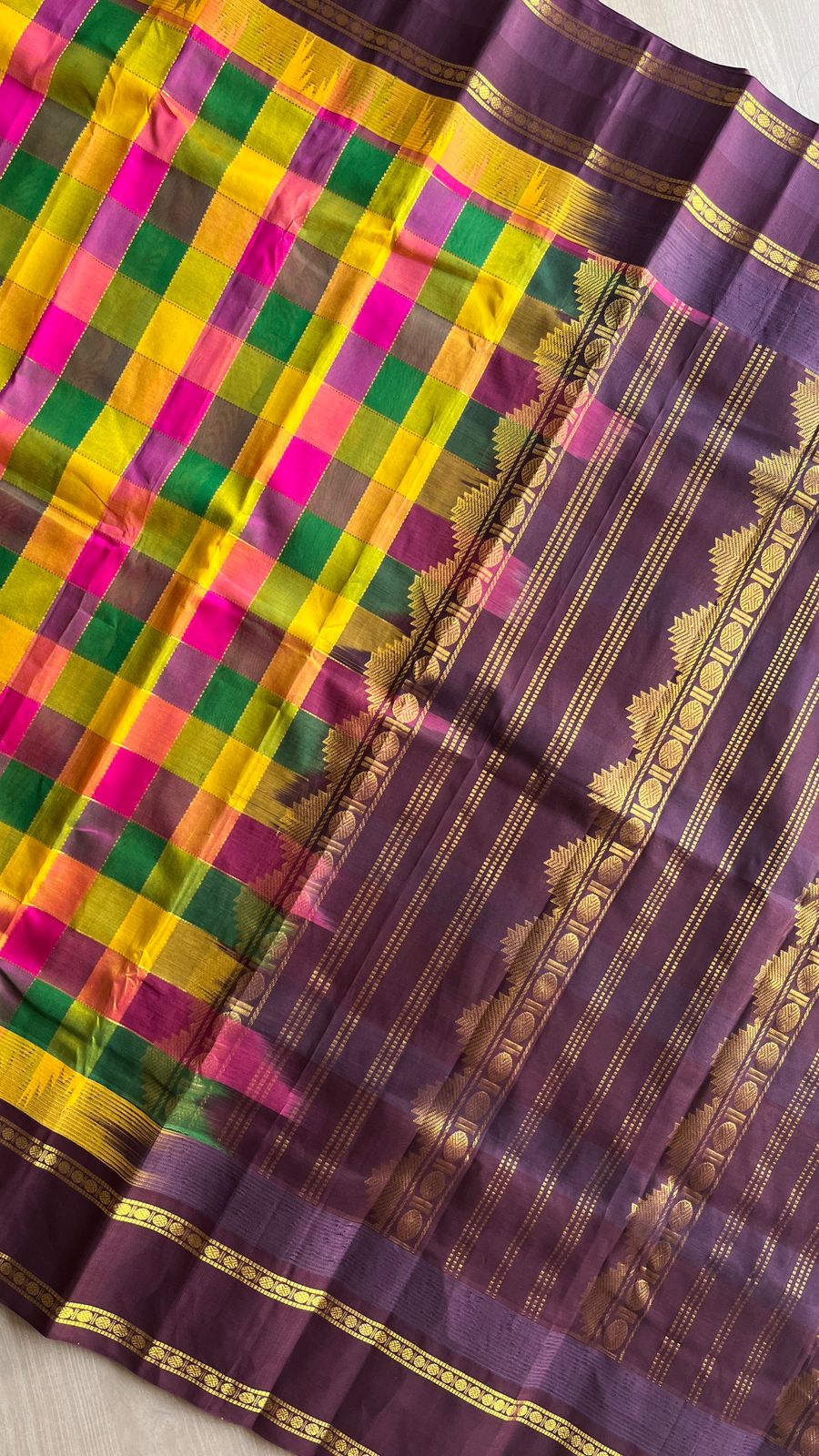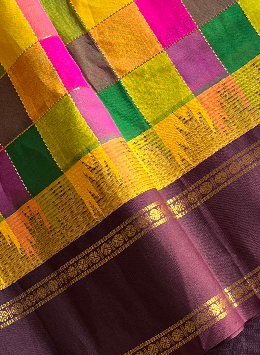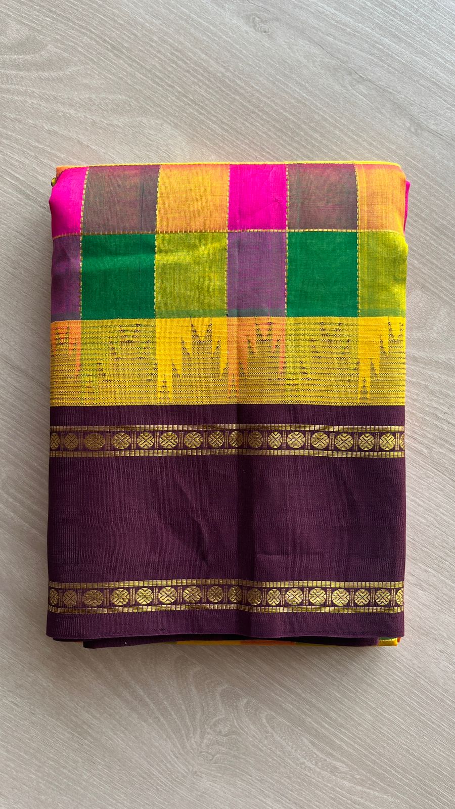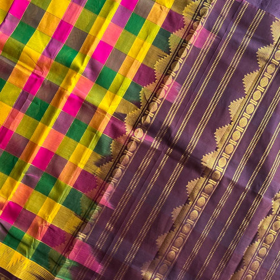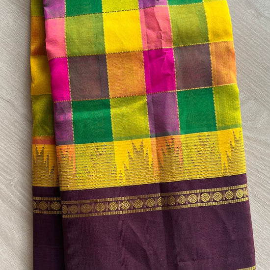 Multi Colour Checked Silk Cotton Saree with Thazhampoo Korvai Border