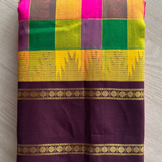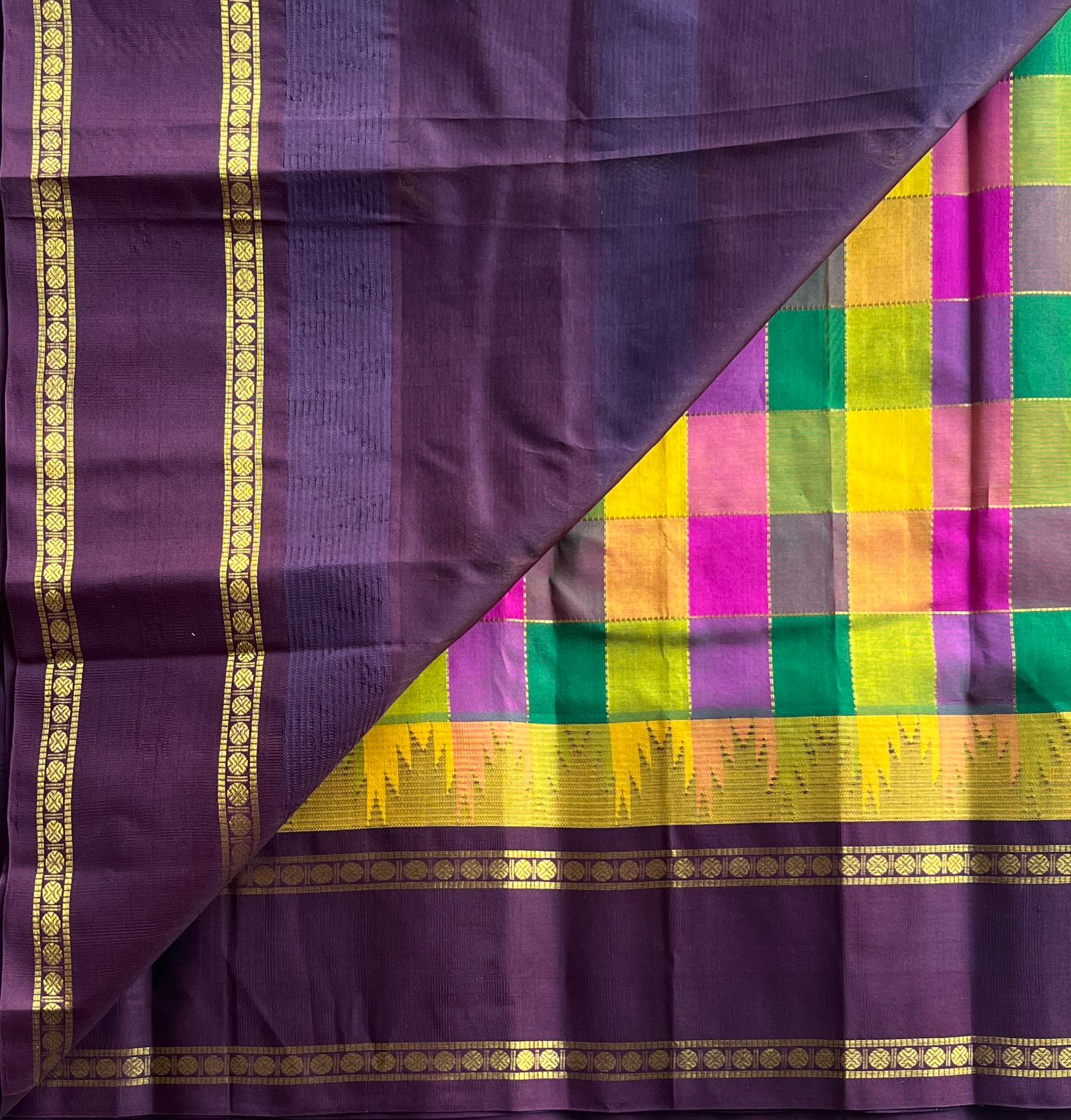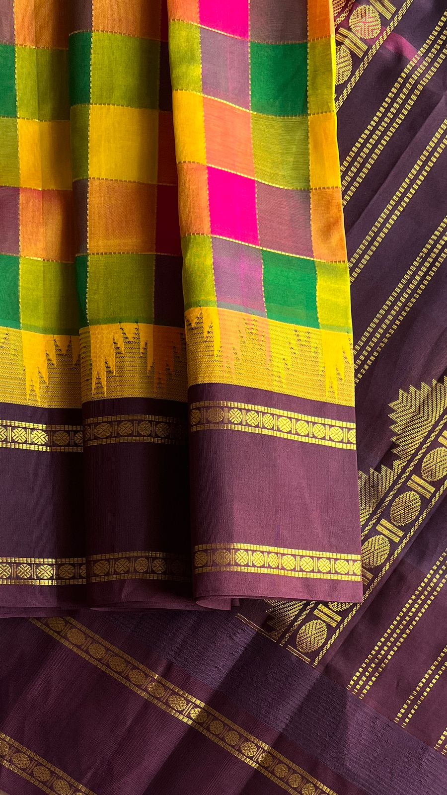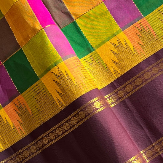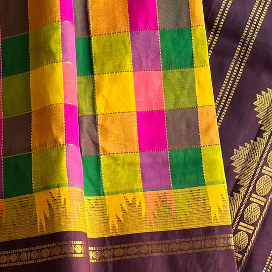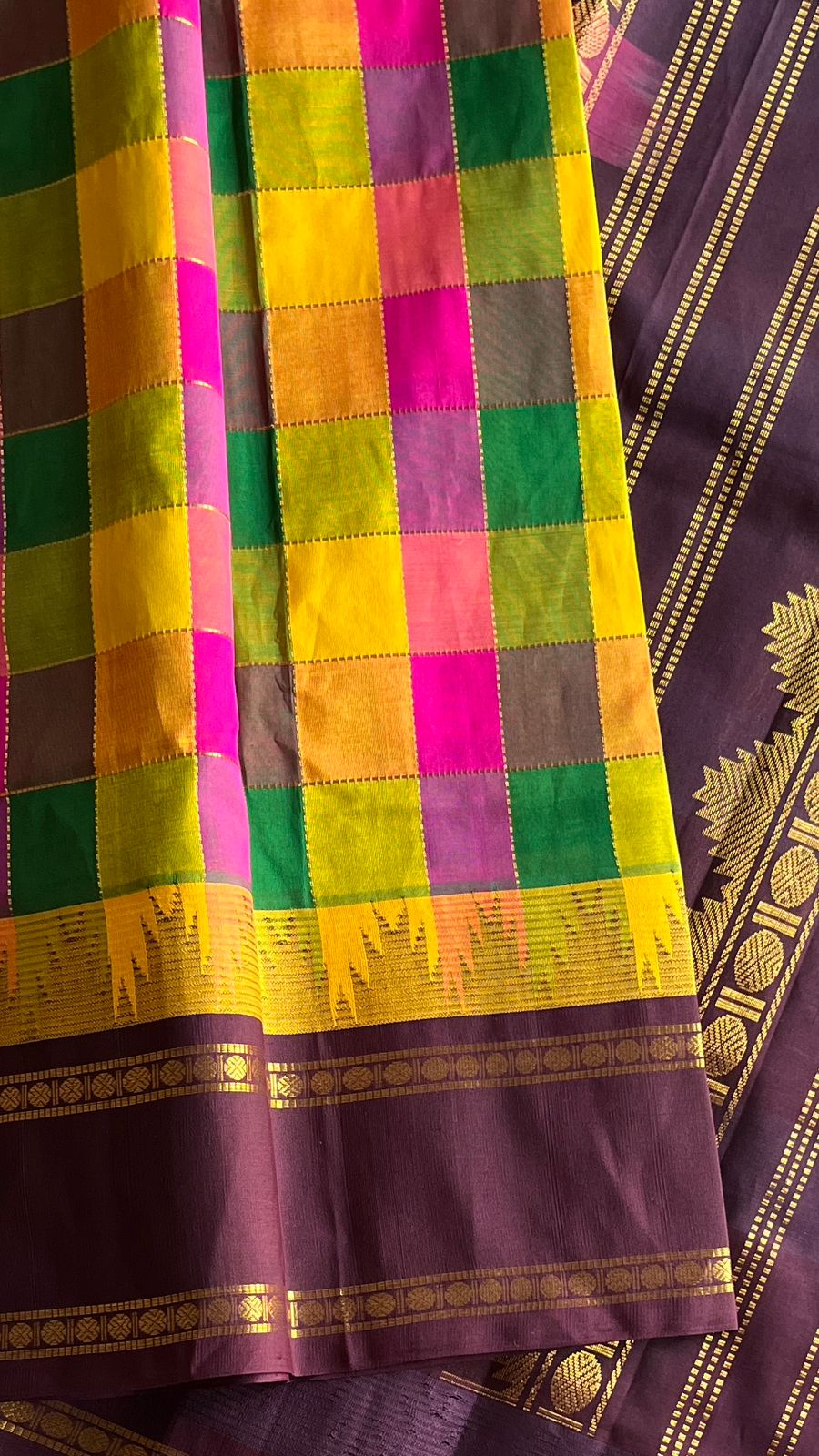Multi Colour Checked Silk Cotton Saree with Thazhampoo Korvai Border