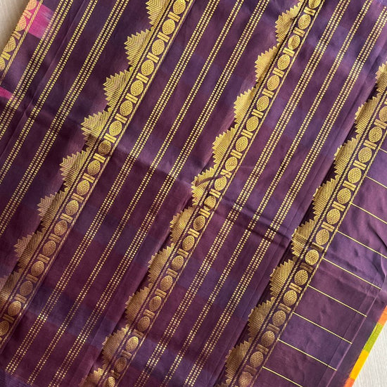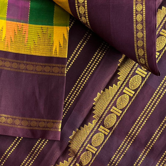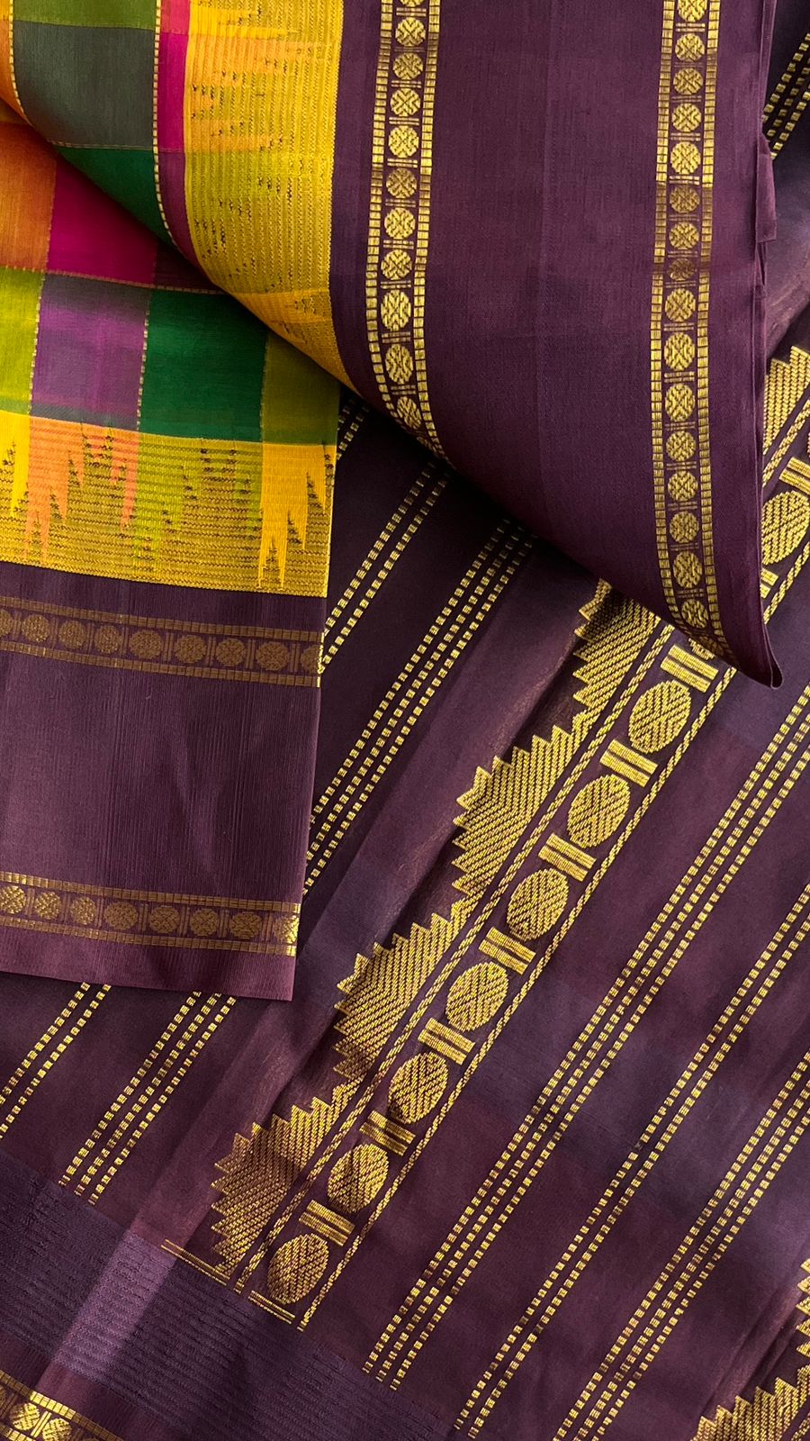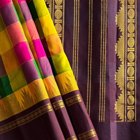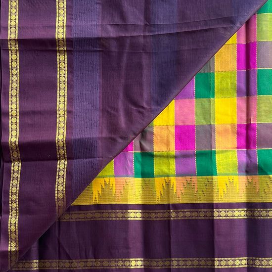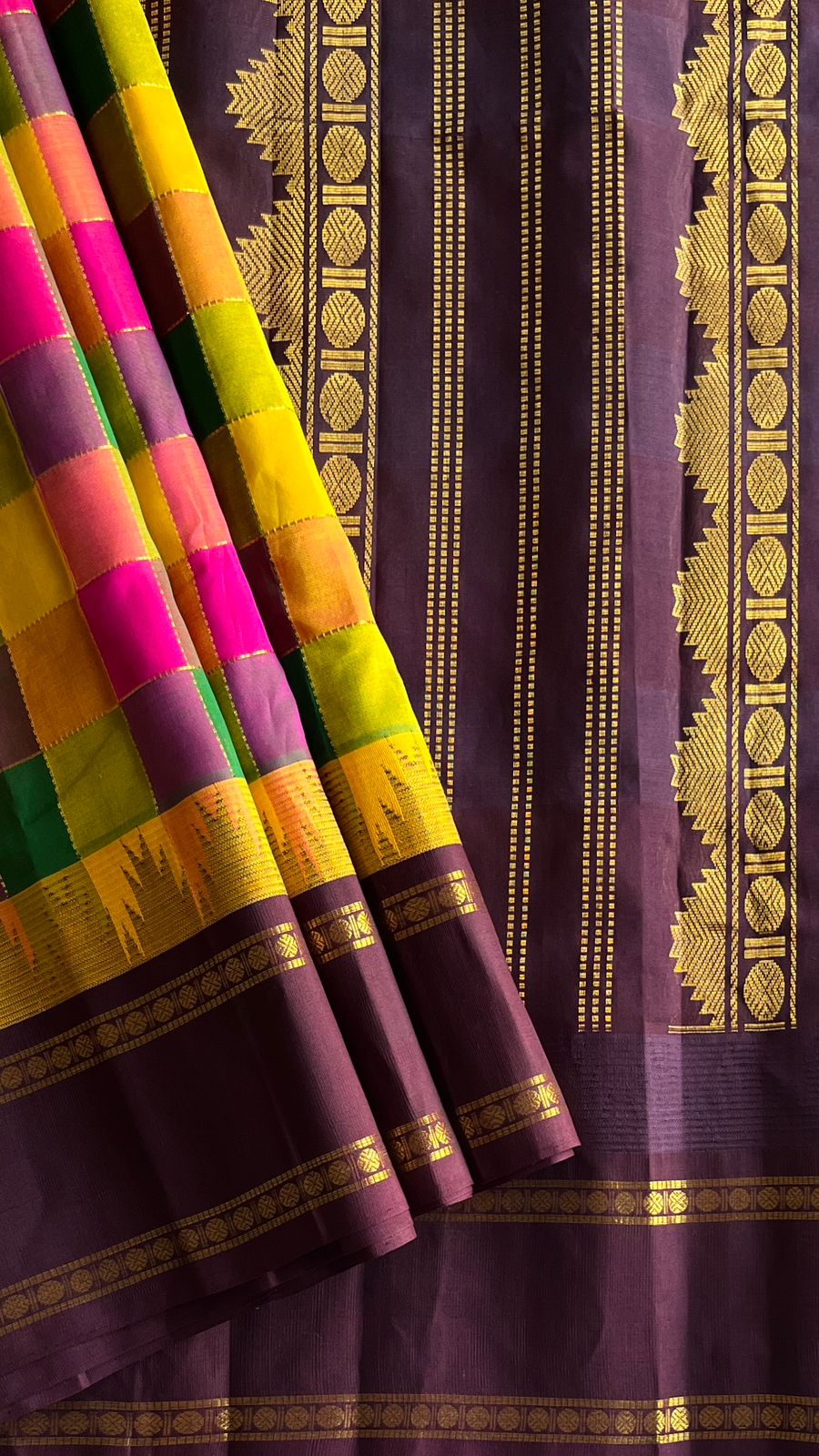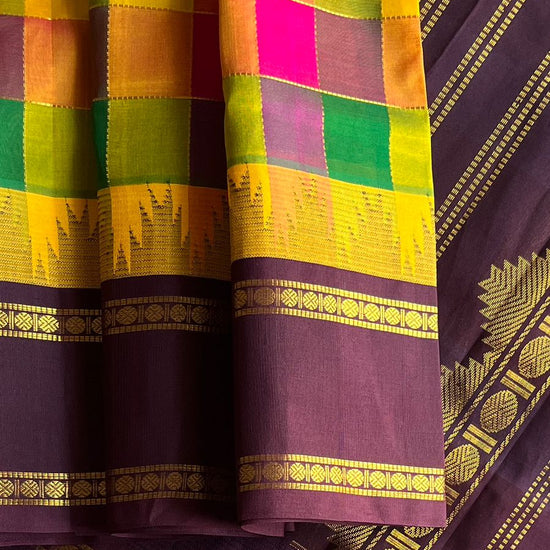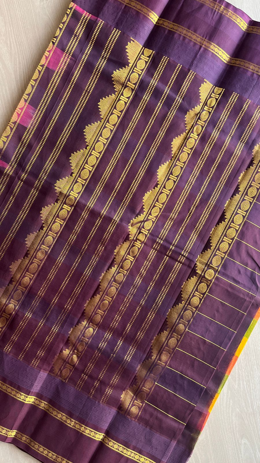 Multi Colour Checked Silk Cotton Saree with Thazhampoo Korvai Border