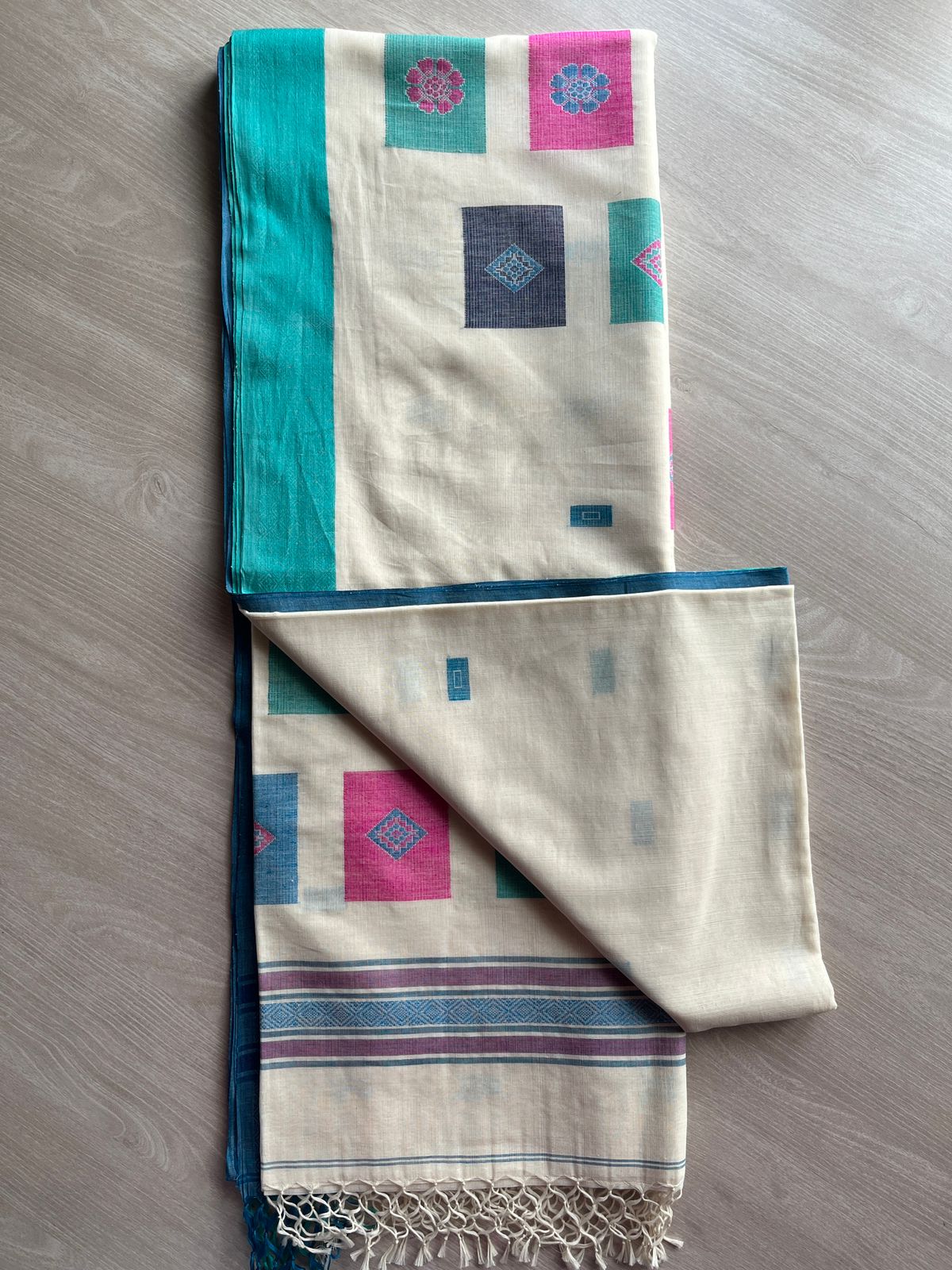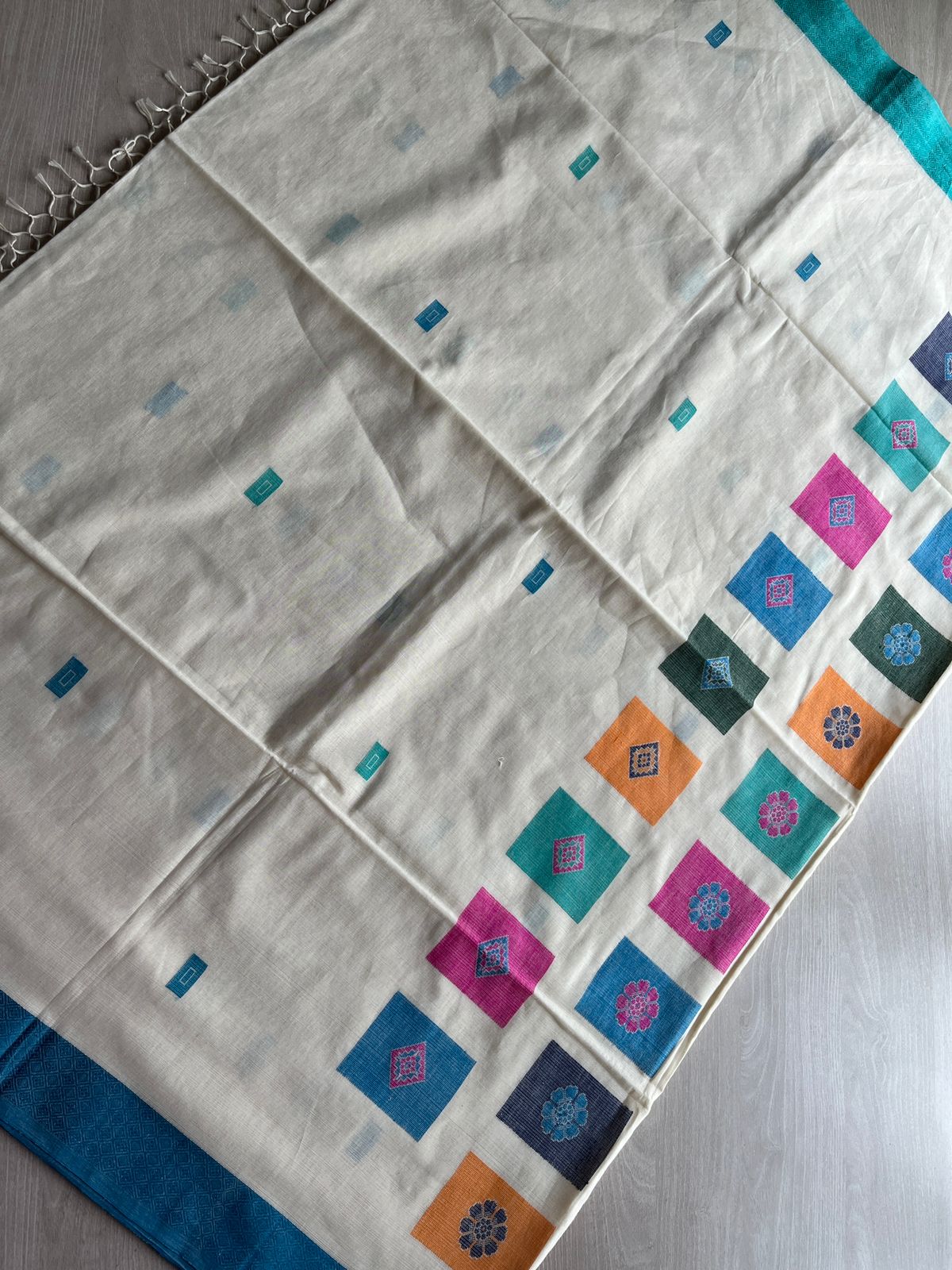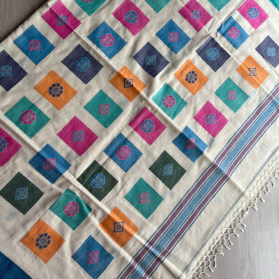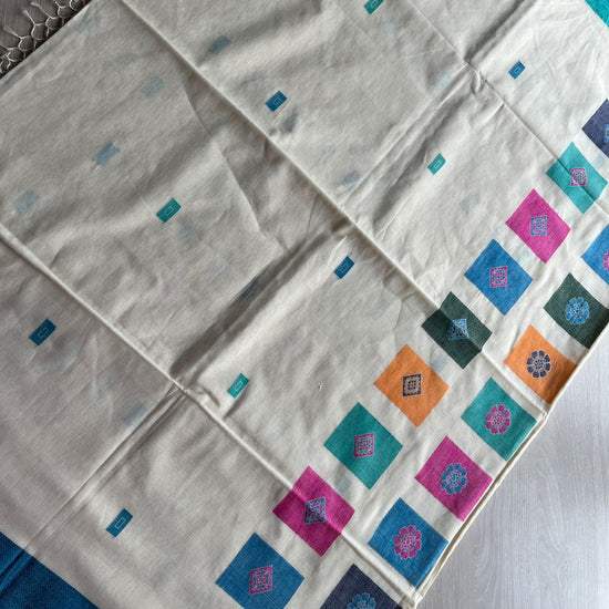 Multicolour Recatangle Floral Pallu Handwoven Soft Cotton Saree -27497