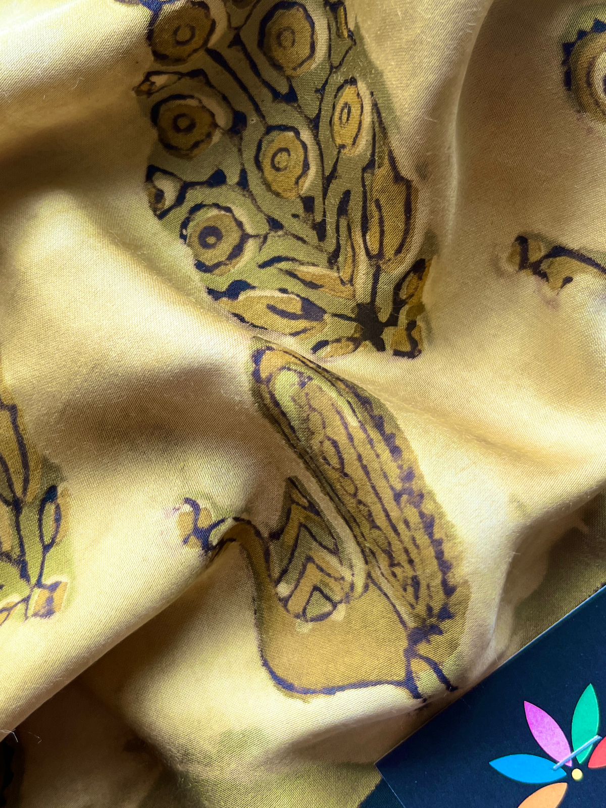 Natural Dye Hand block Printed Modal Silk Saree -27336
