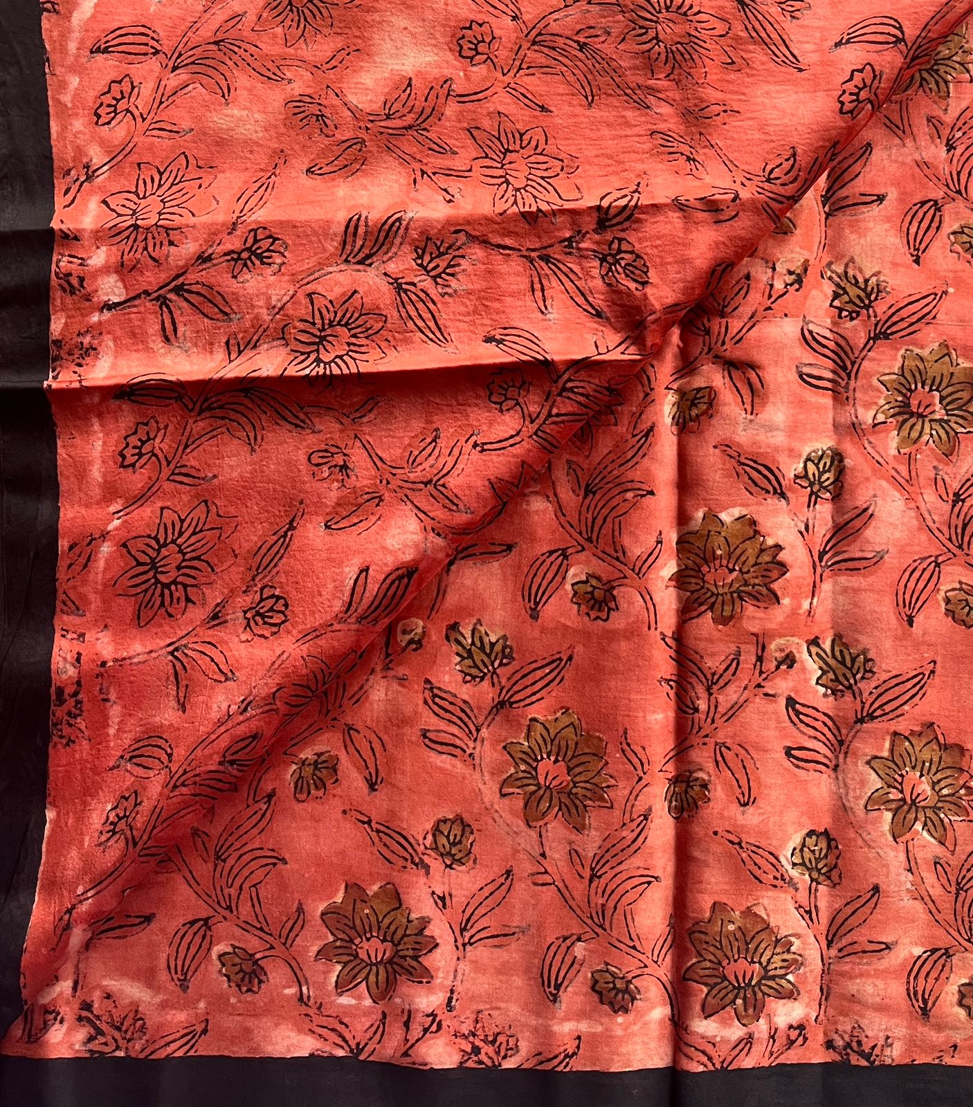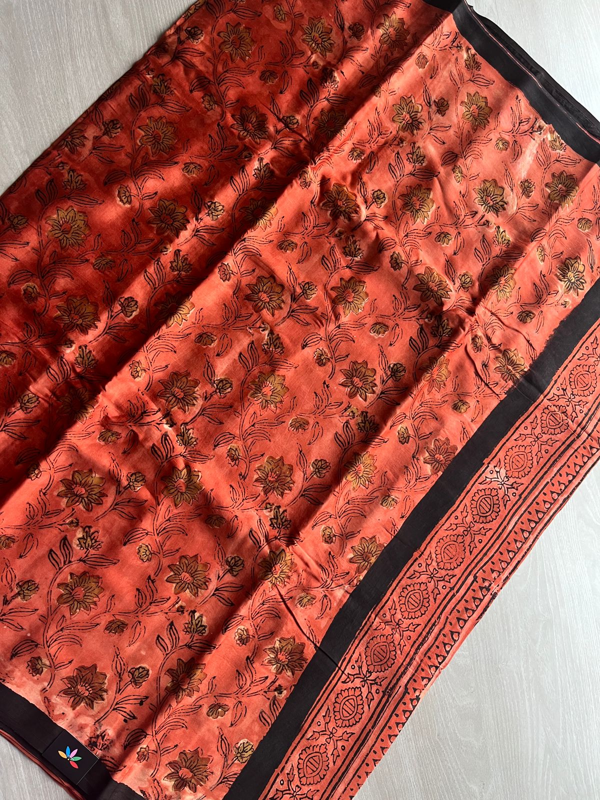 Natural Dye Hand block Printed Modal Silk Saree -27341