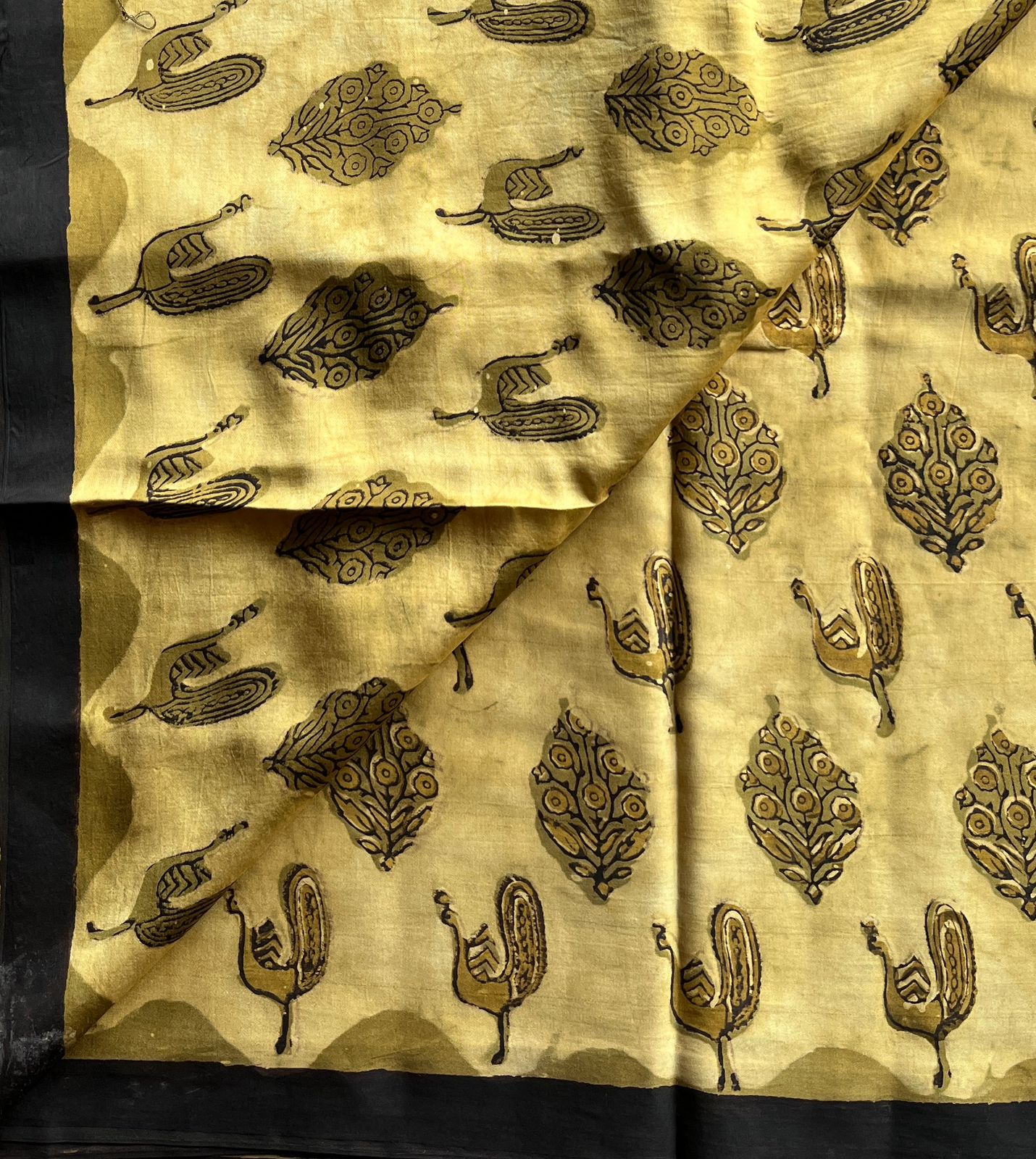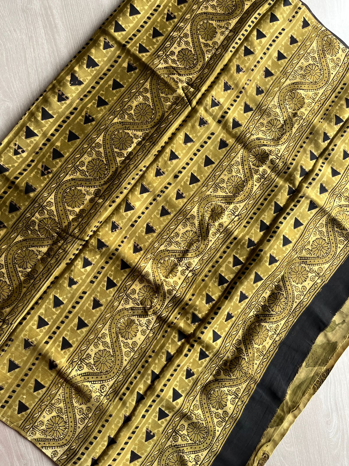 Natural Dye Hand block Printed Modal Silk Saree -27716