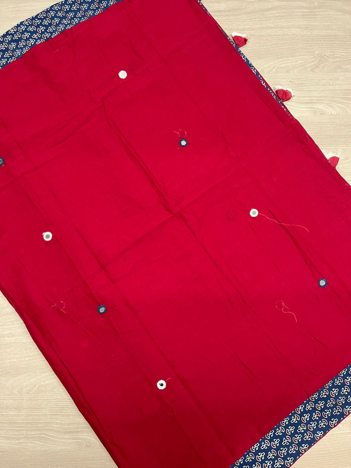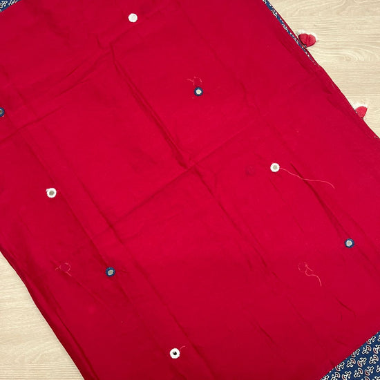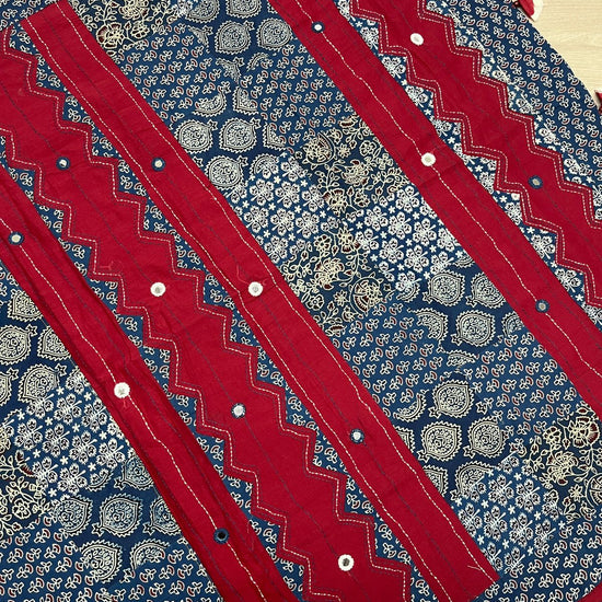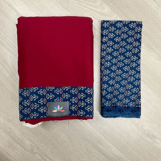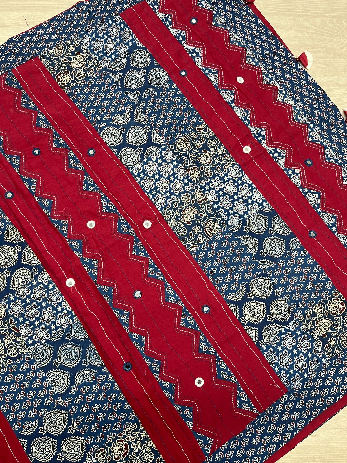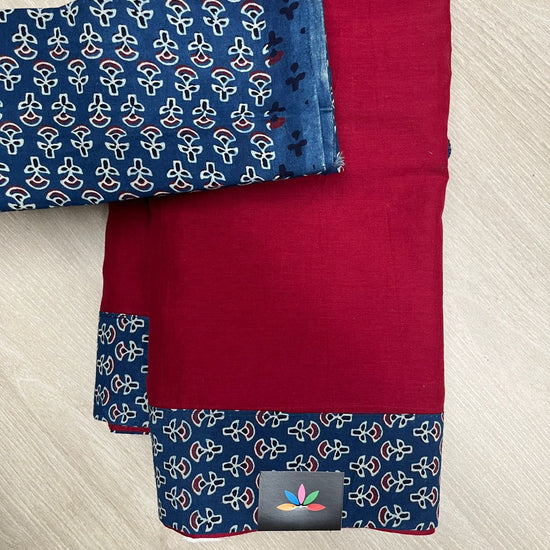 Natural Dyed Ajrakh Patch Work Cotton Saree - 23778