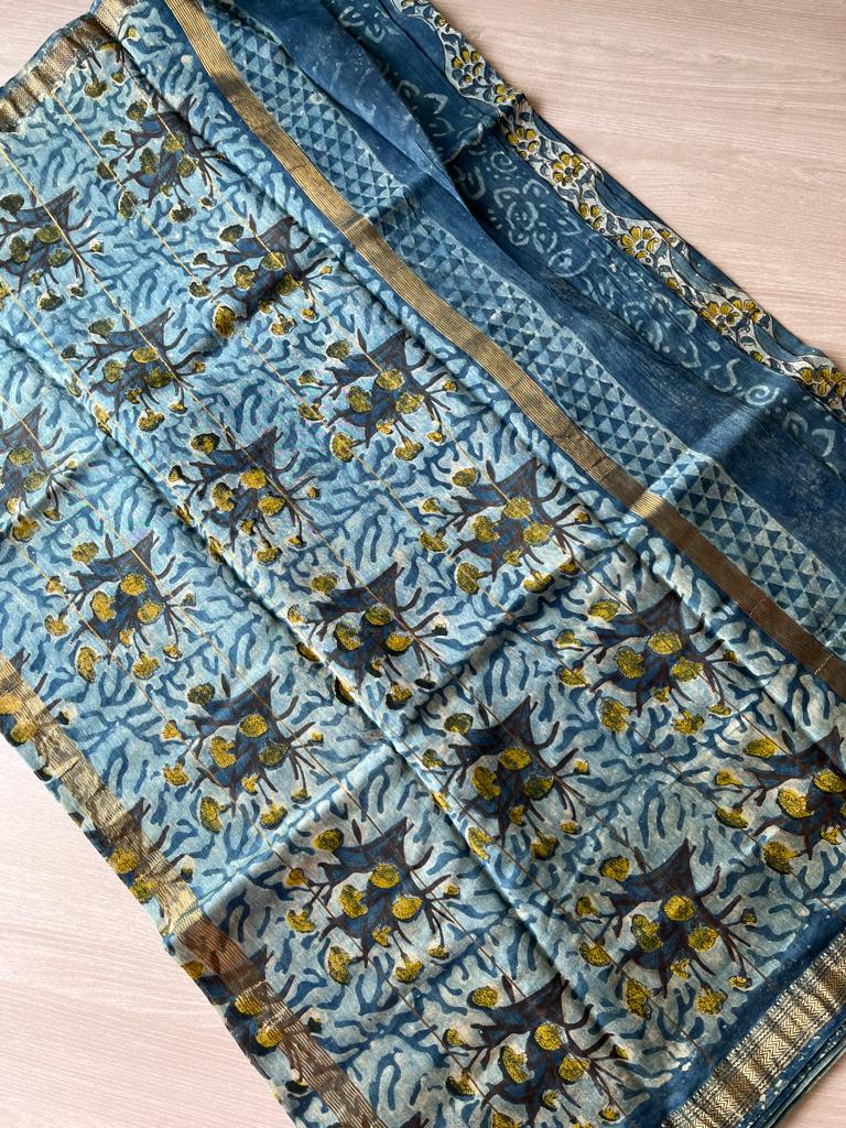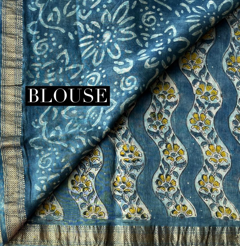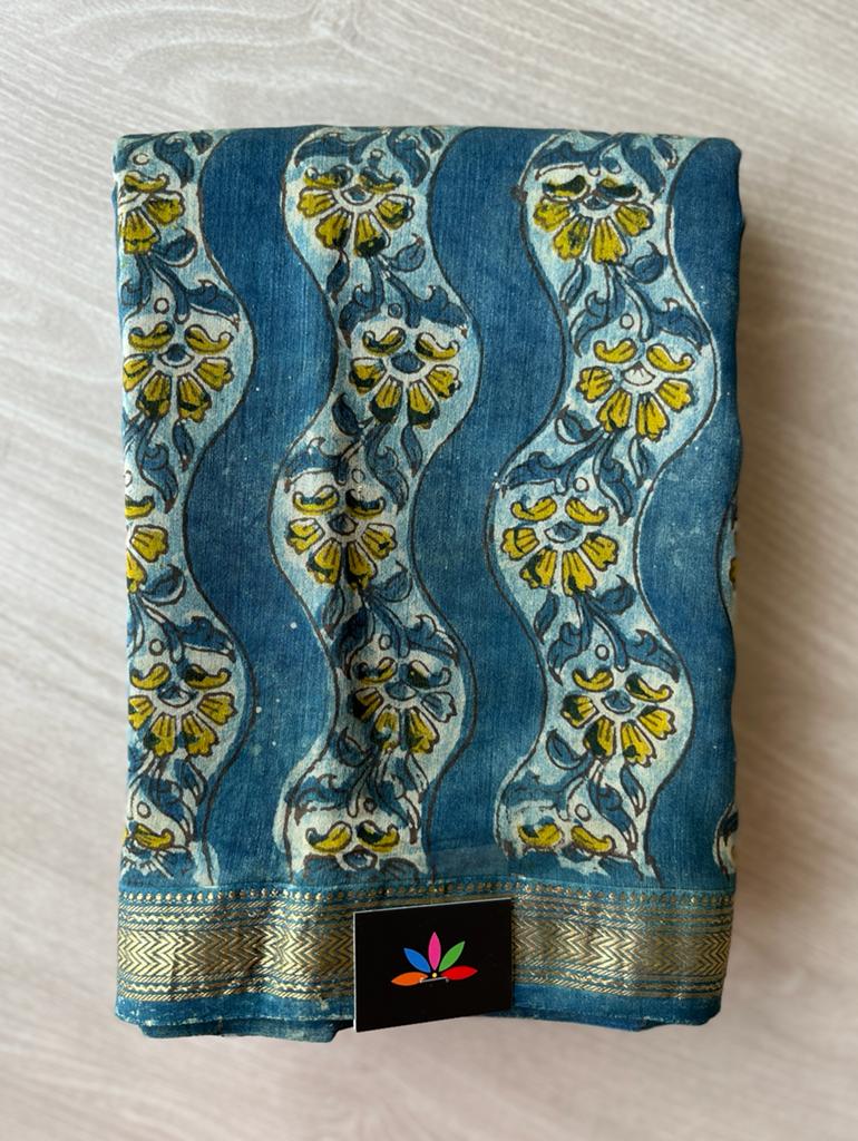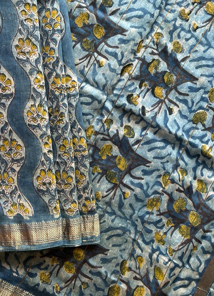 Natural Dyed Handblock Printed Maheshwari Silk Cotton Saree