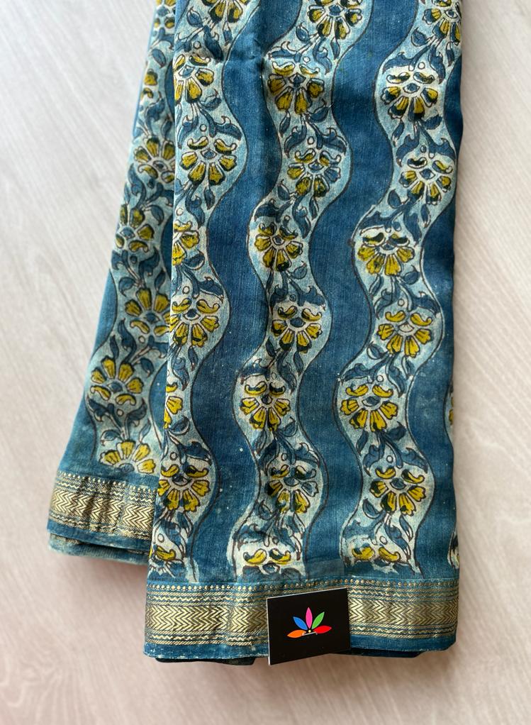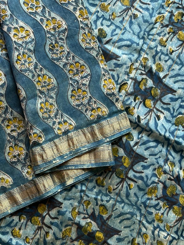 Natural Dyed Handblock Printed Maheshwari Border Silk Cotton Saree-7163