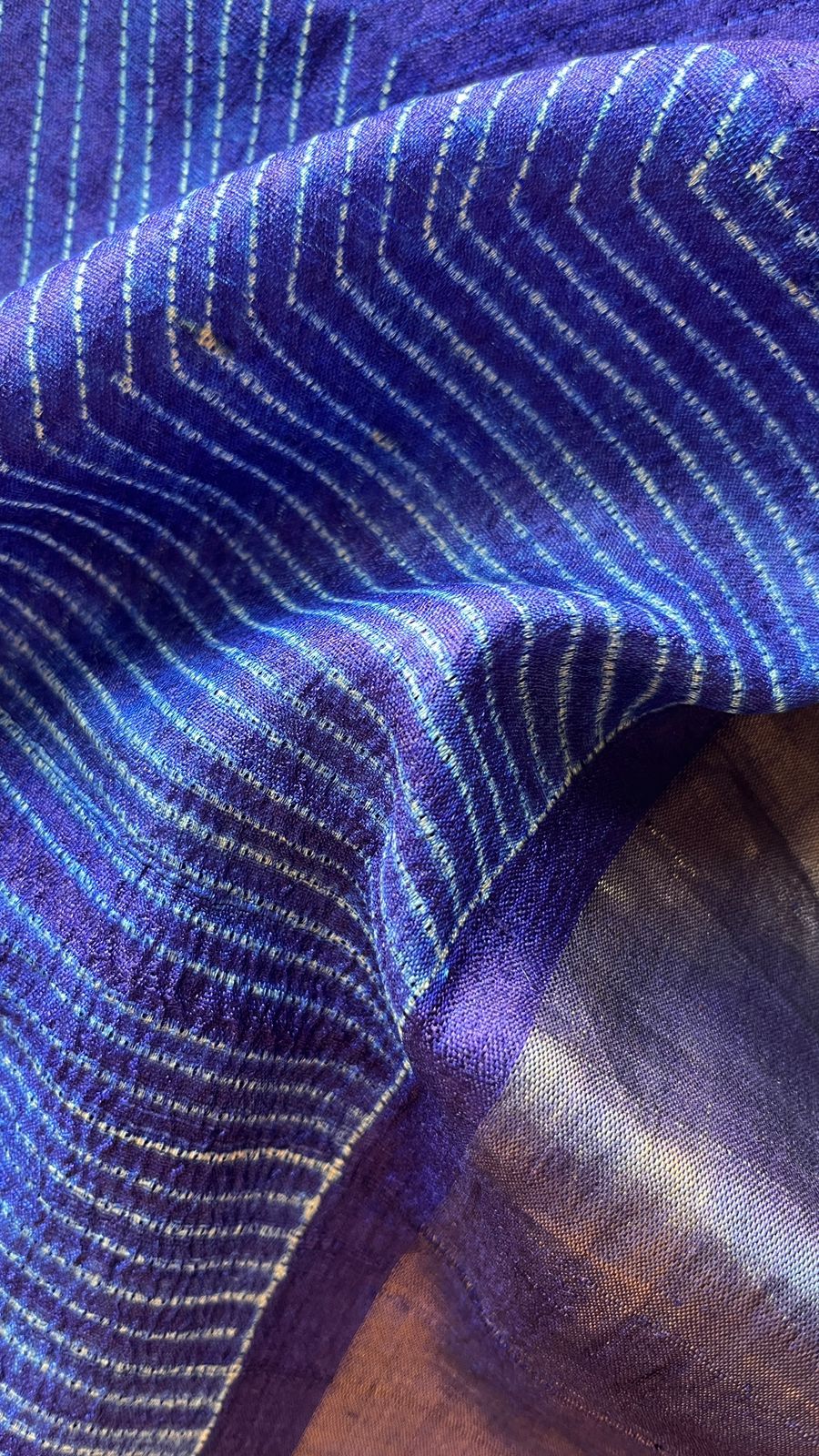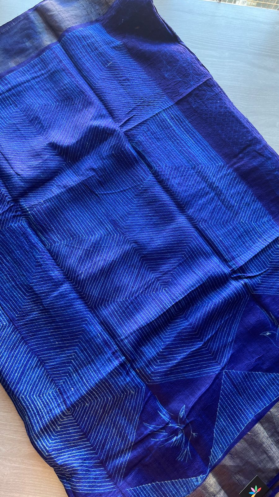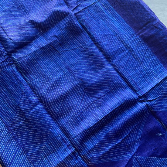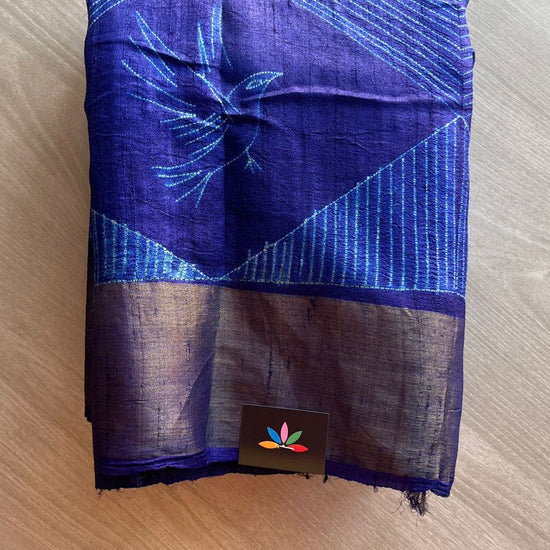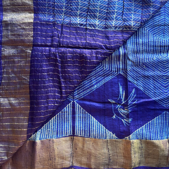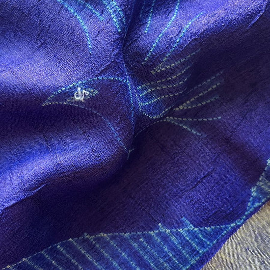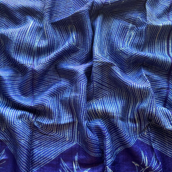 Needle Shibori Tussar Silk Saree – Indigo Elegance