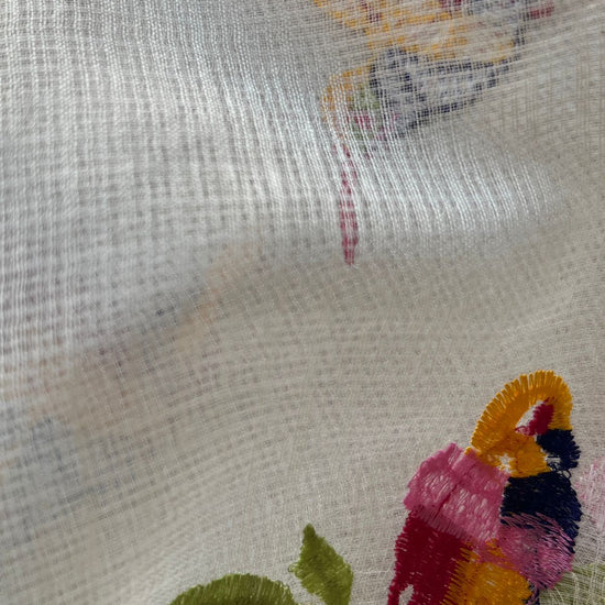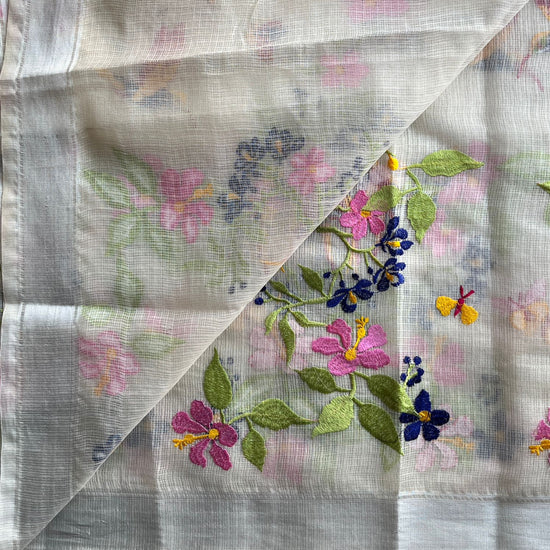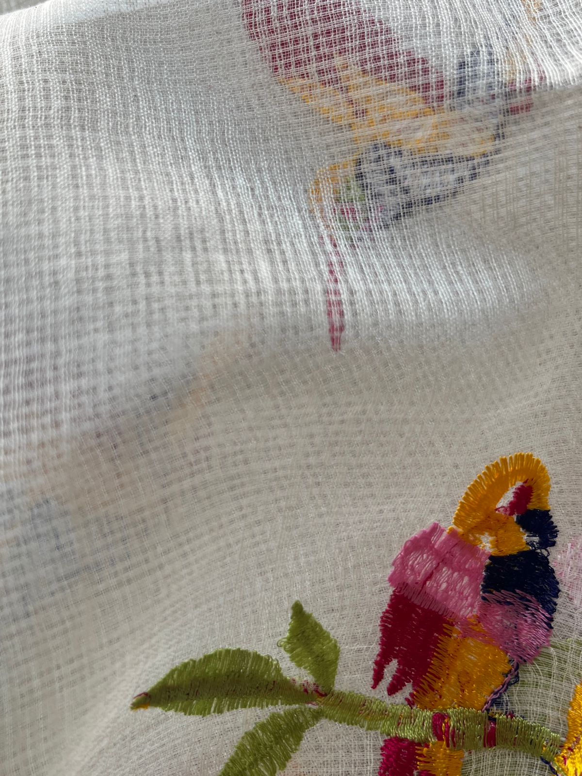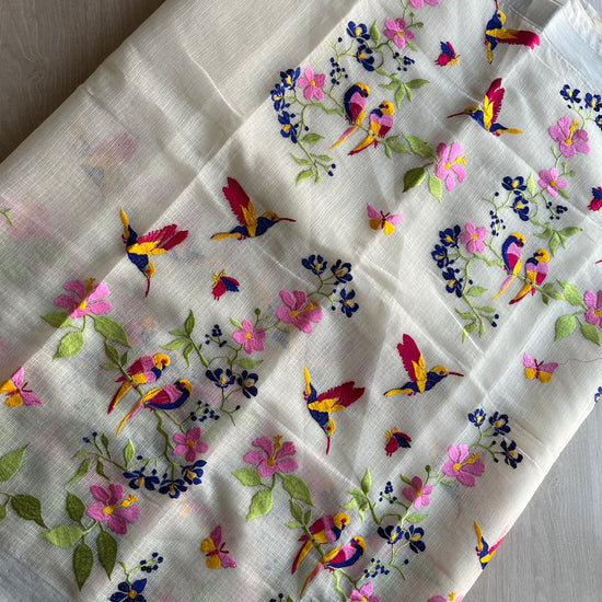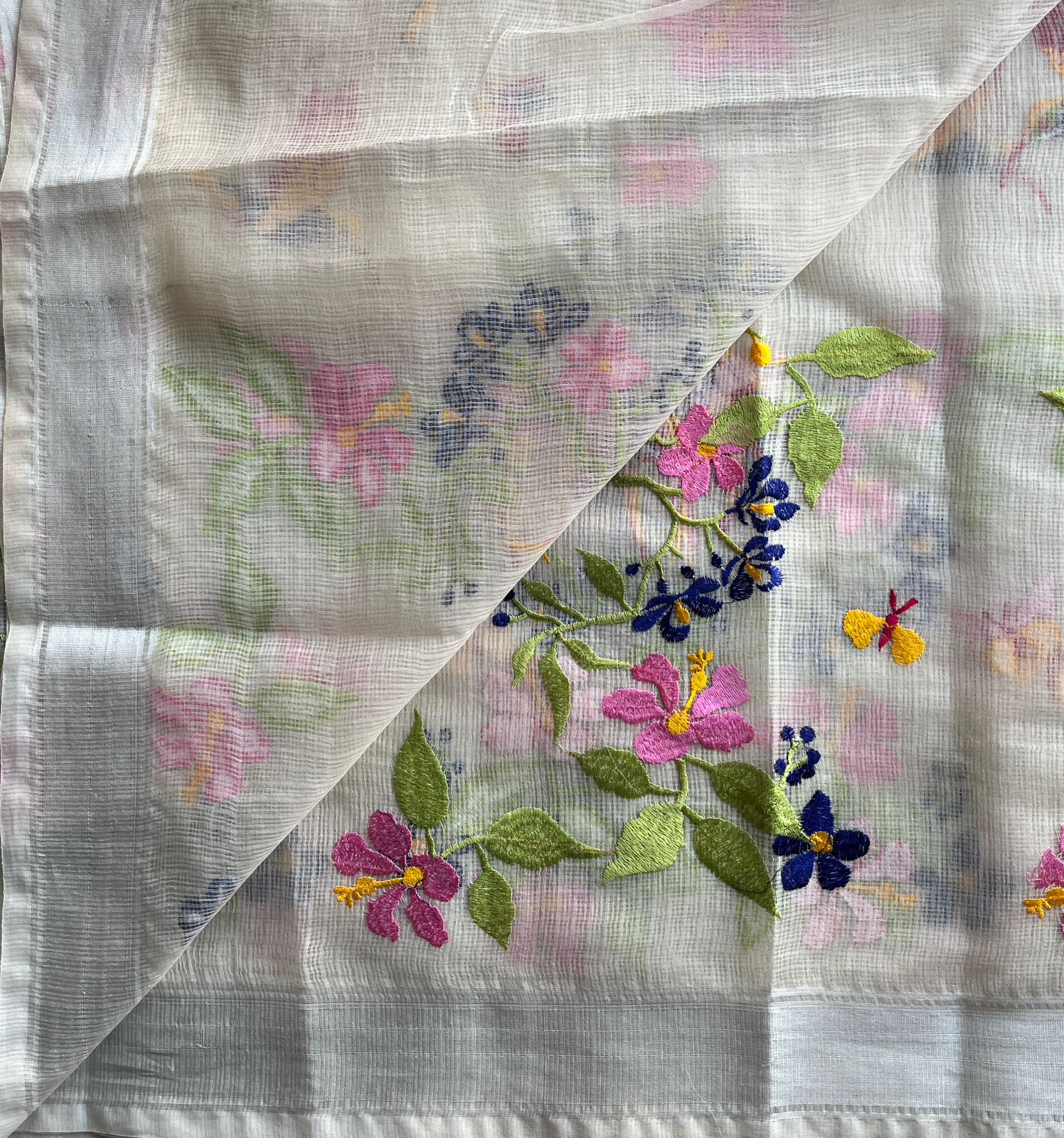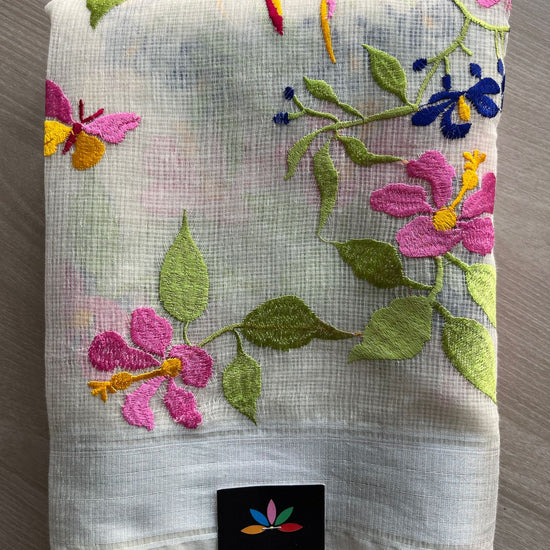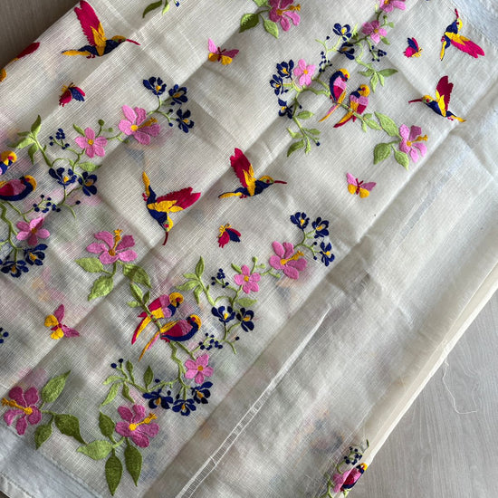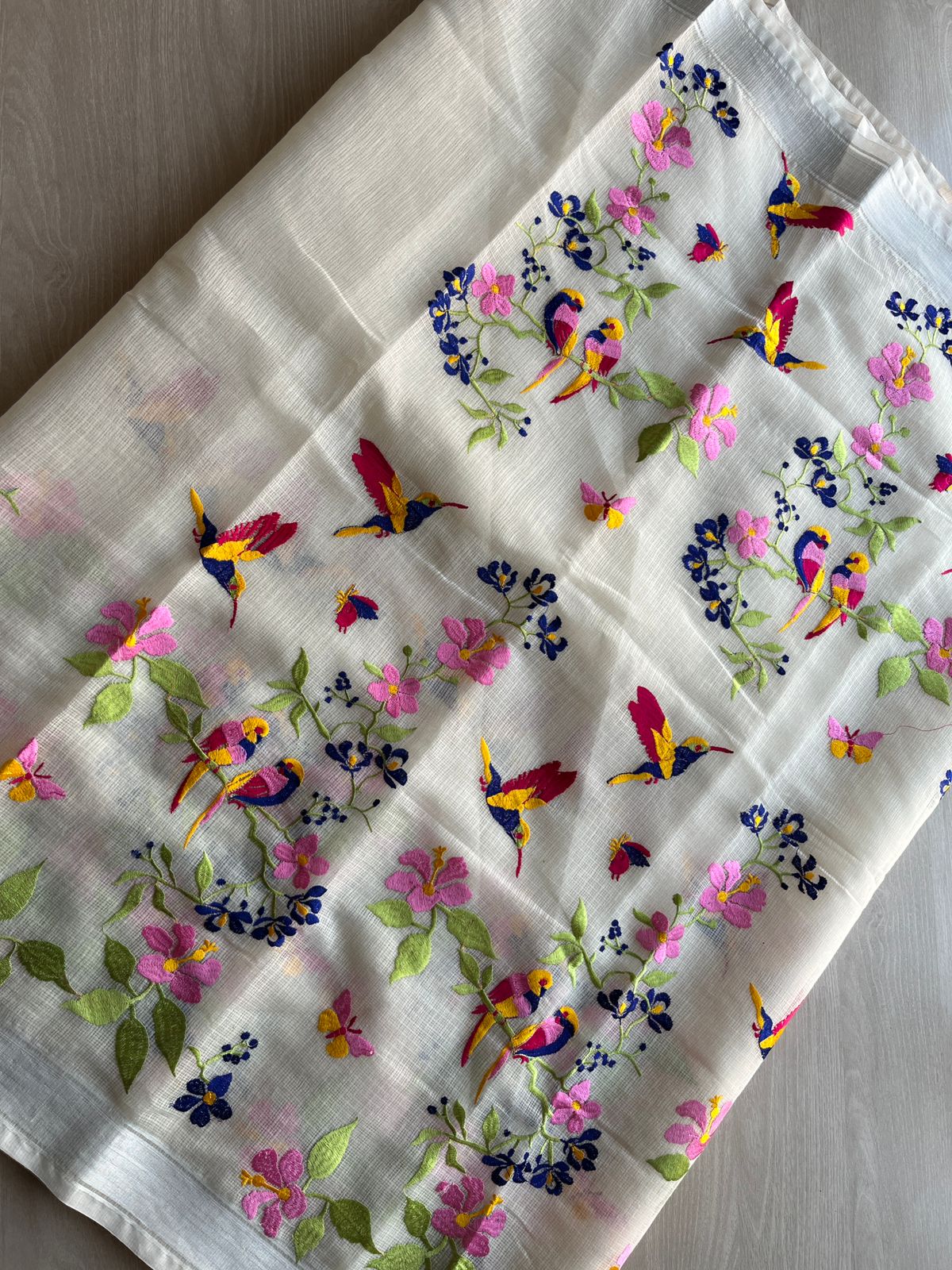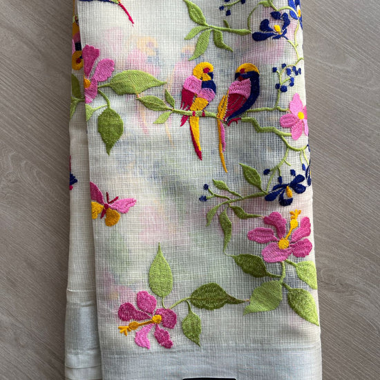 Off-White Floral Bird Embroidered Kota Saree-27612