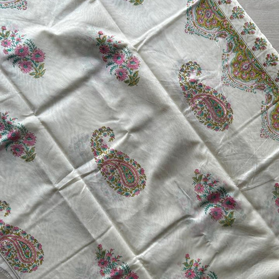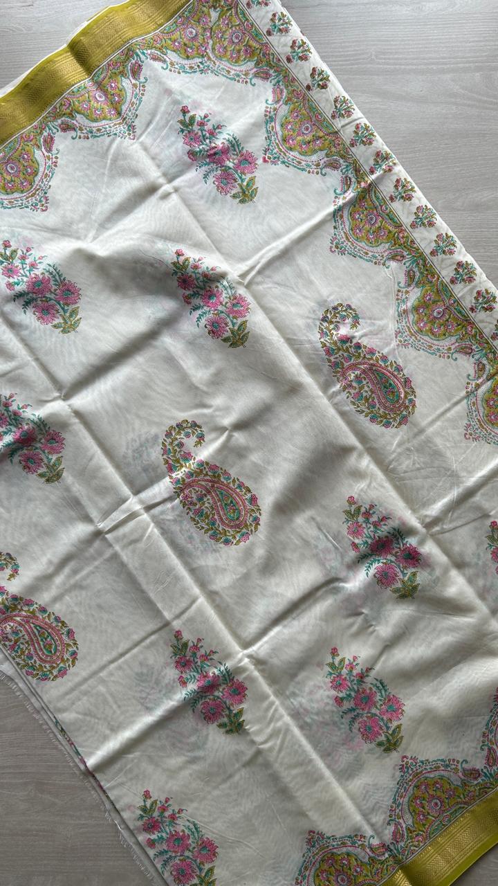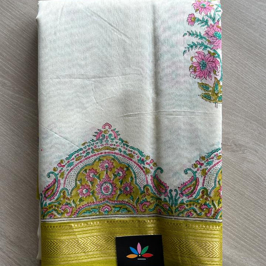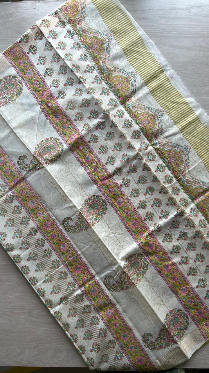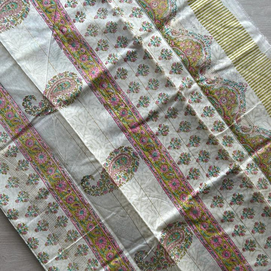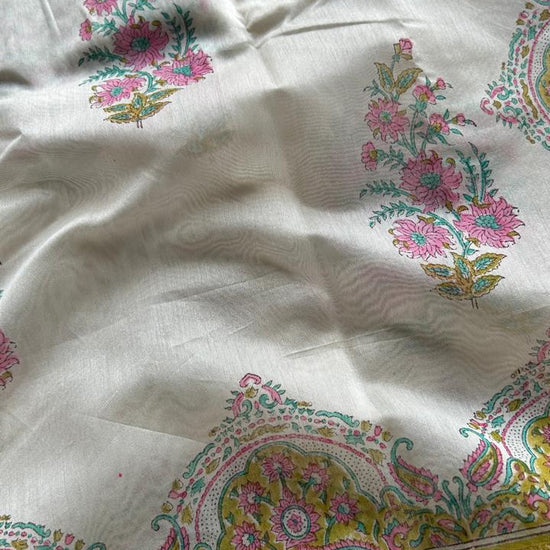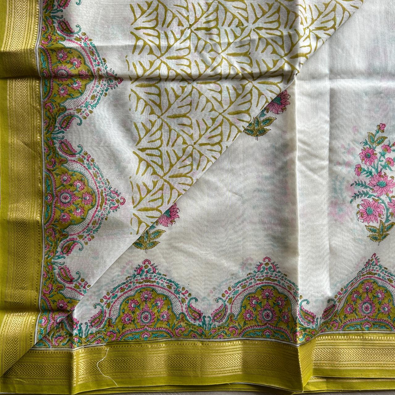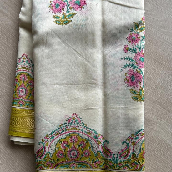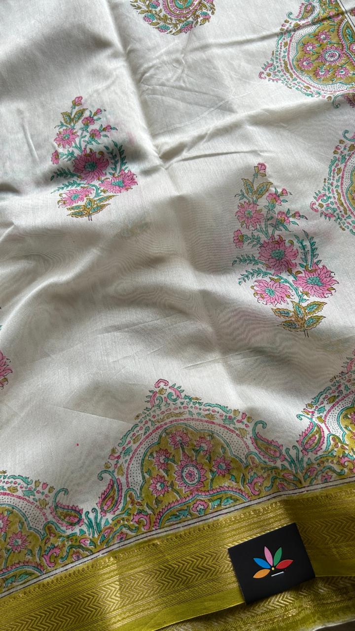 Offwhite Floral Handblock Printed Chanderi Cotton Silk Saree