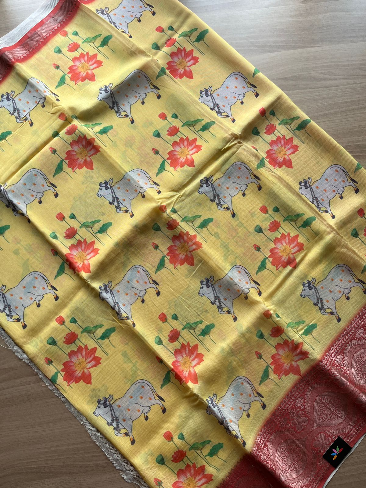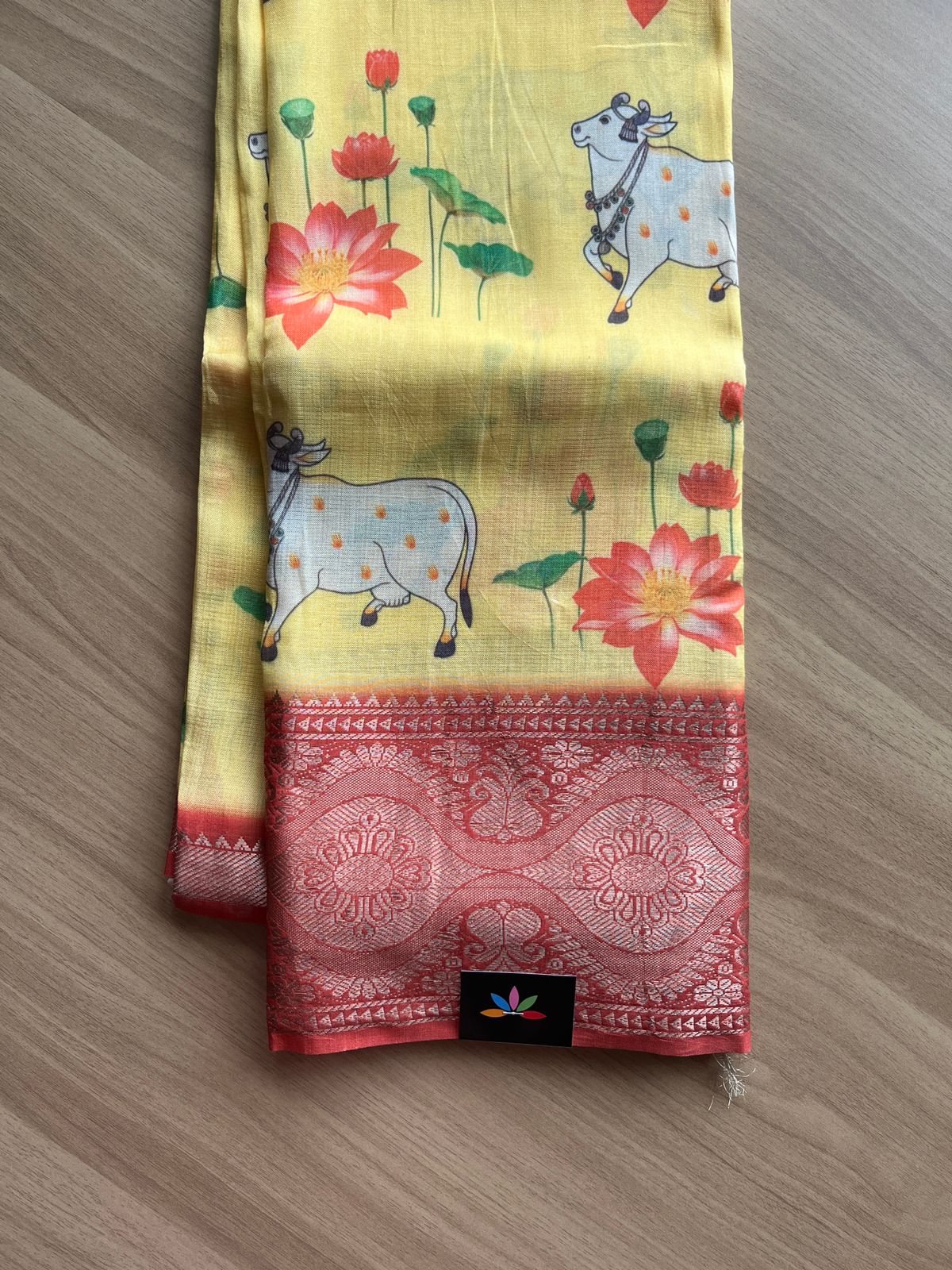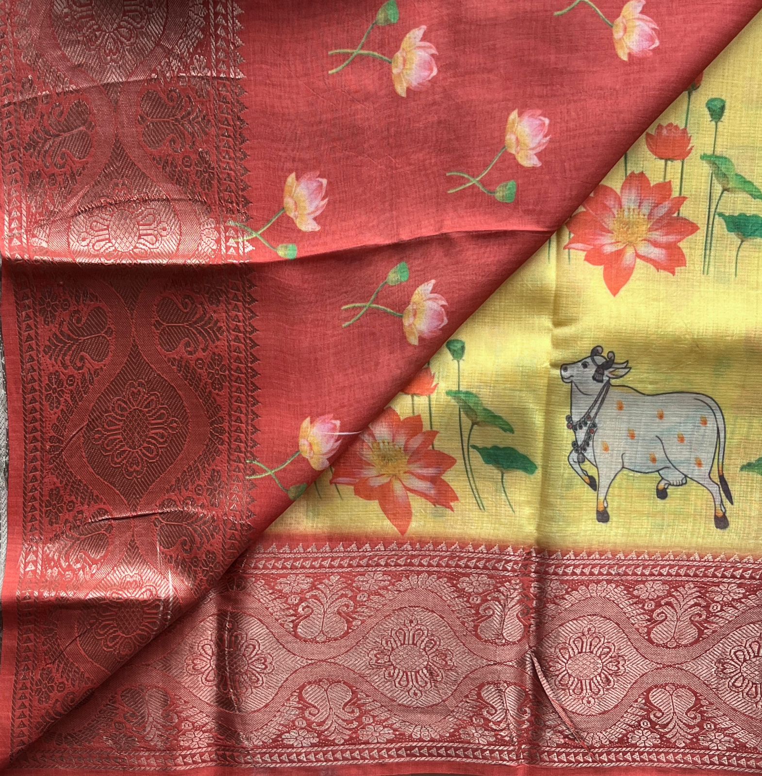 Pichwai Digital Printed Mangalagiri Silk Cotton Saree