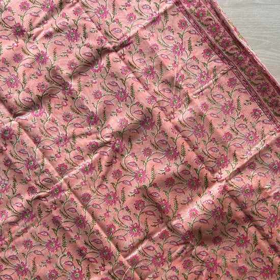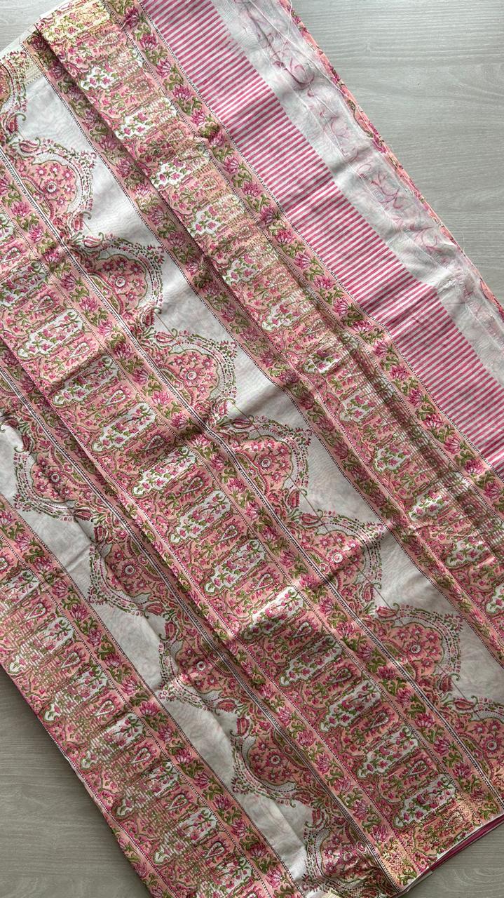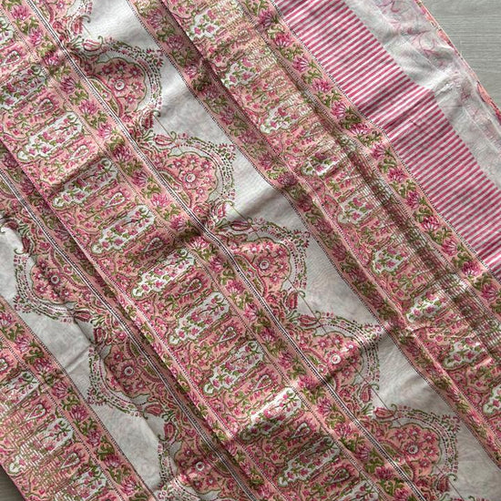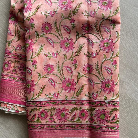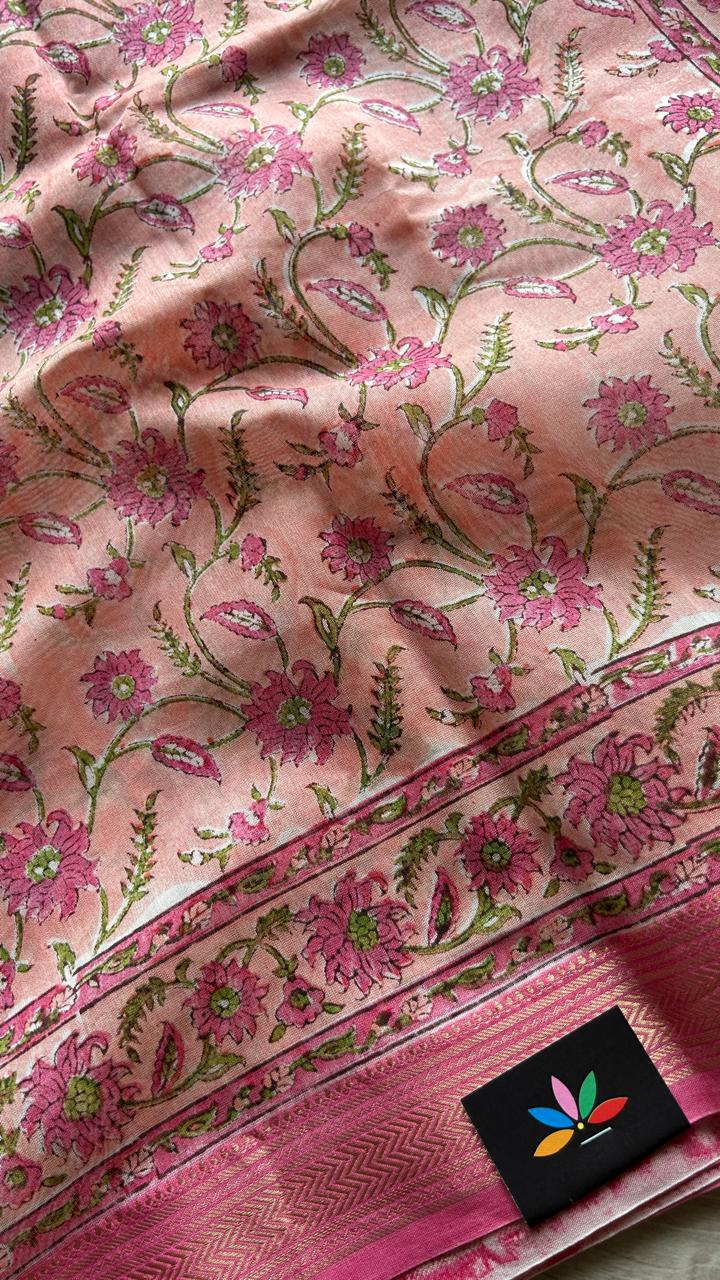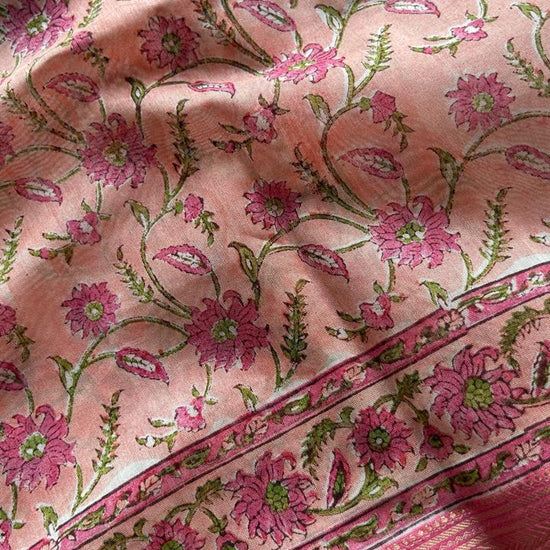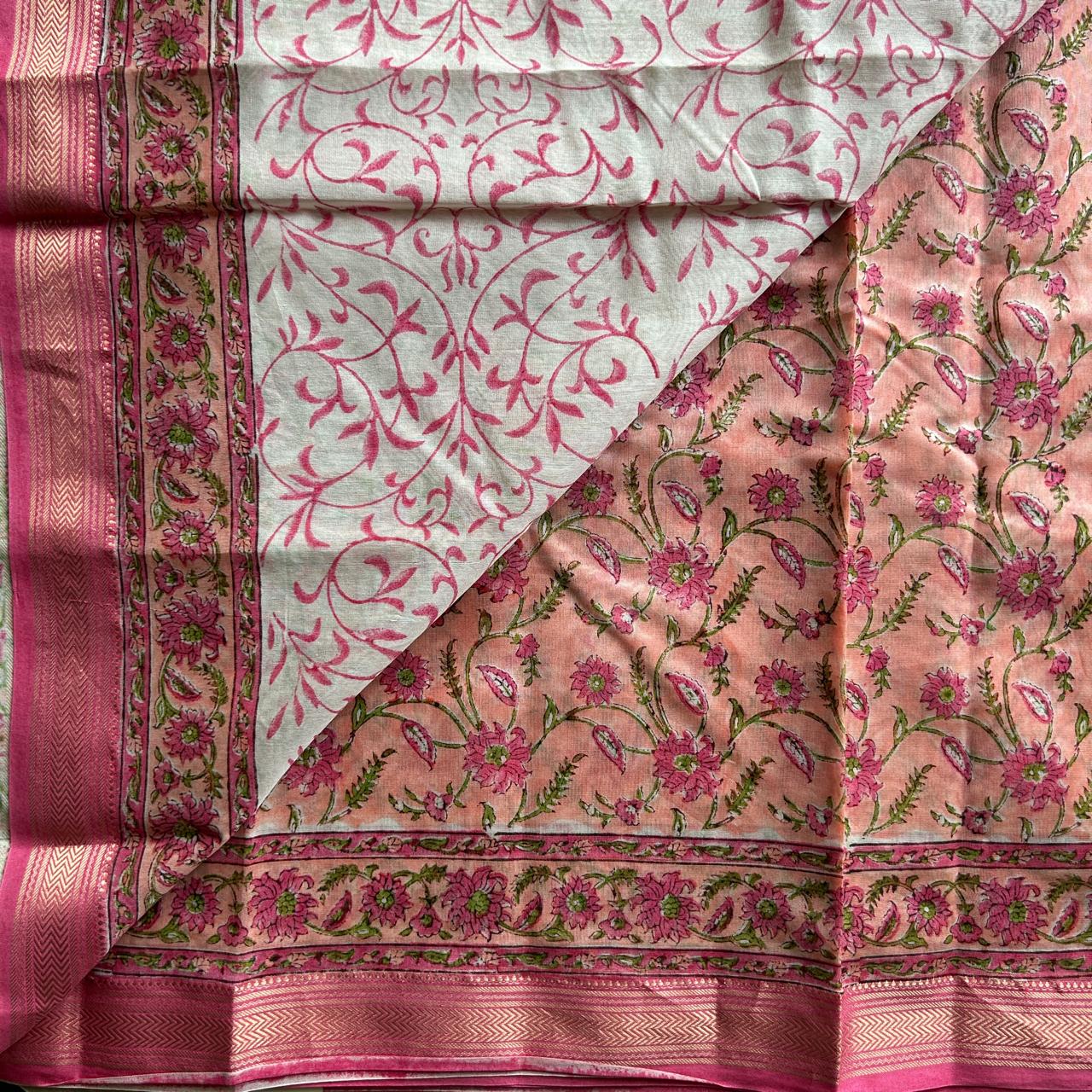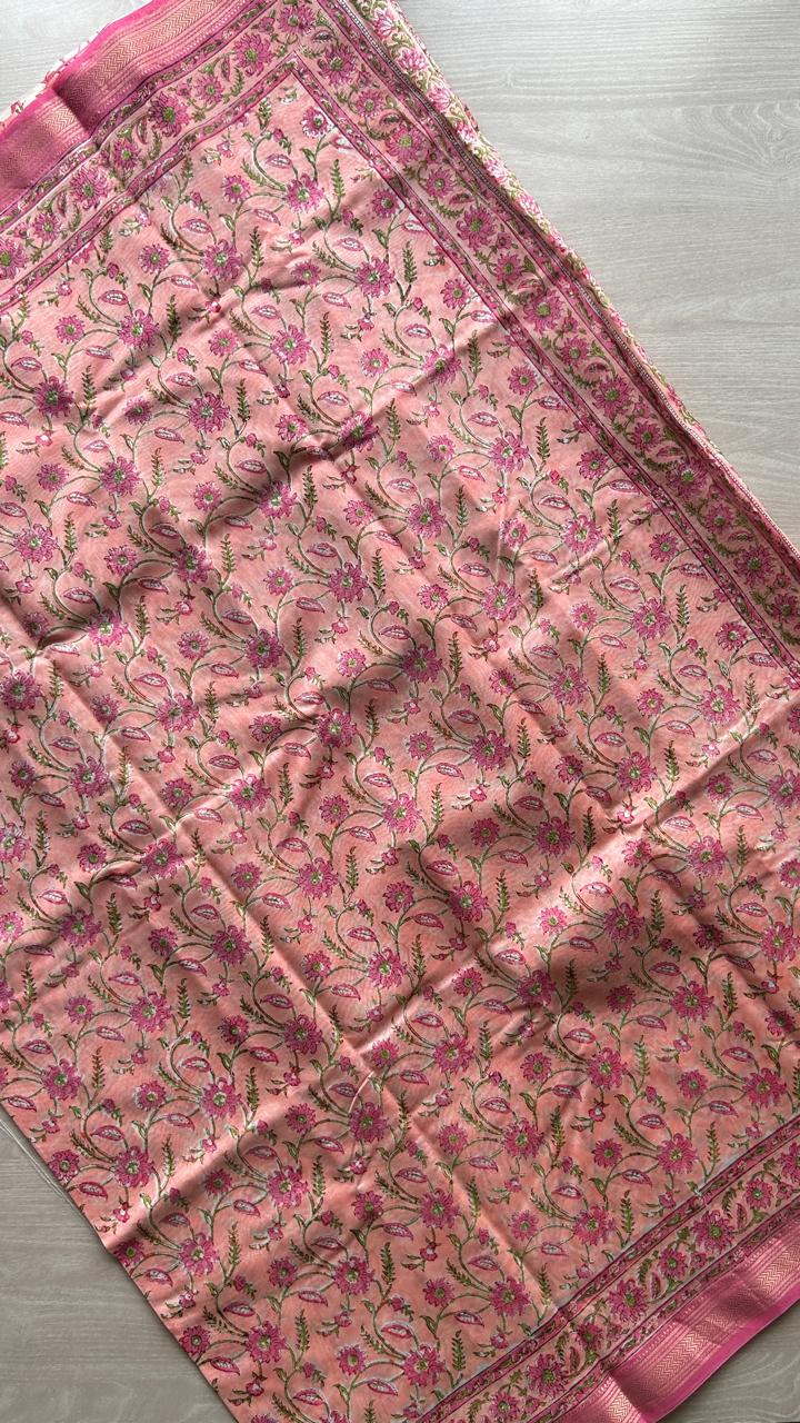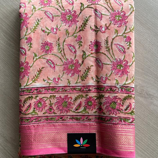 Pink Handblock Printed Chanderi Cotton Silk Saree