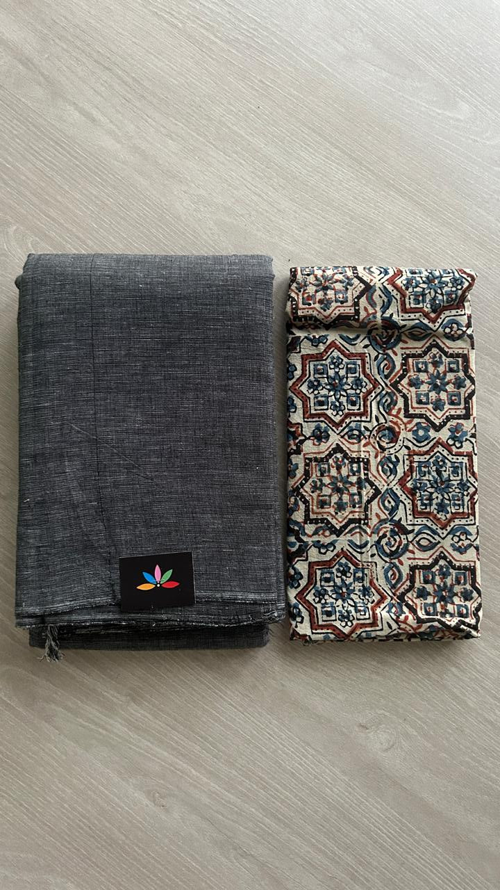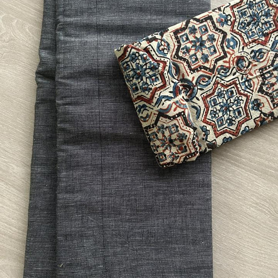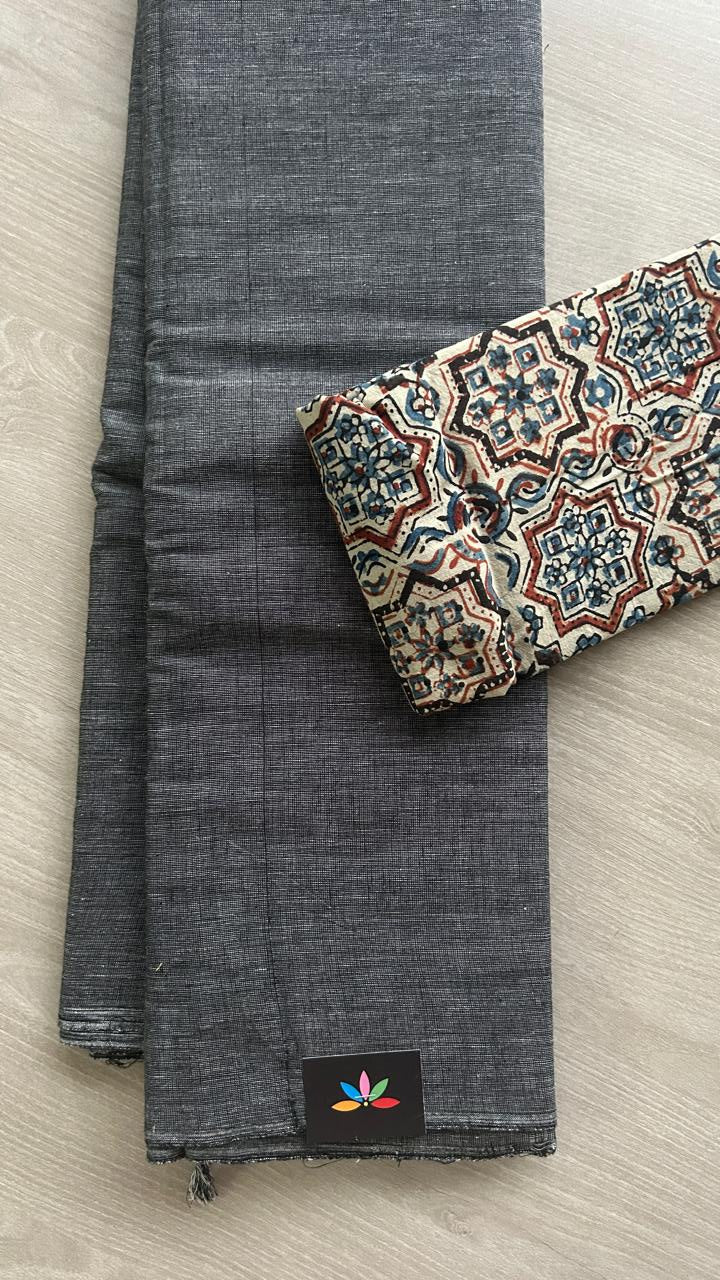 Plain Cotton Saree with Contrast Blouse