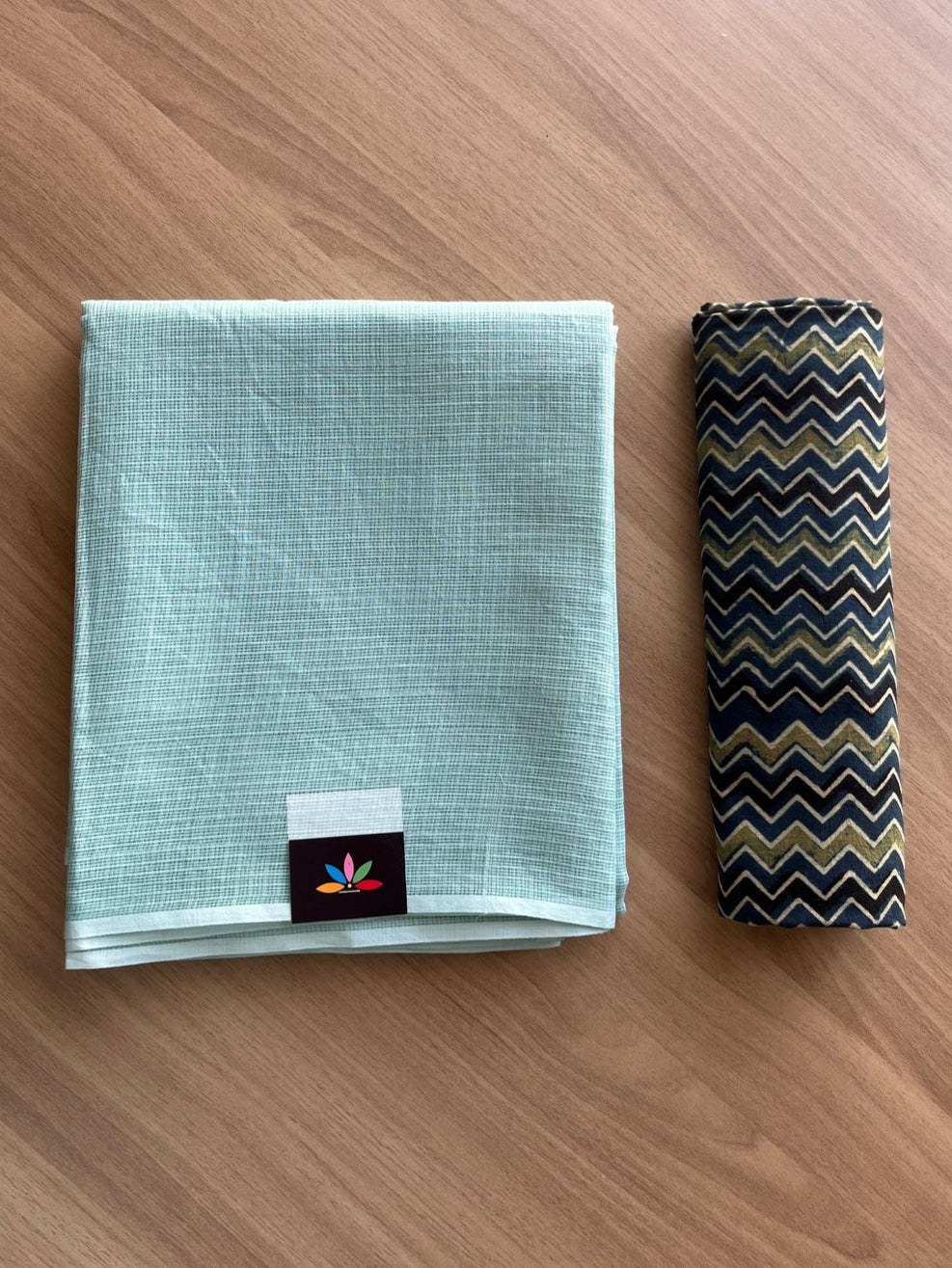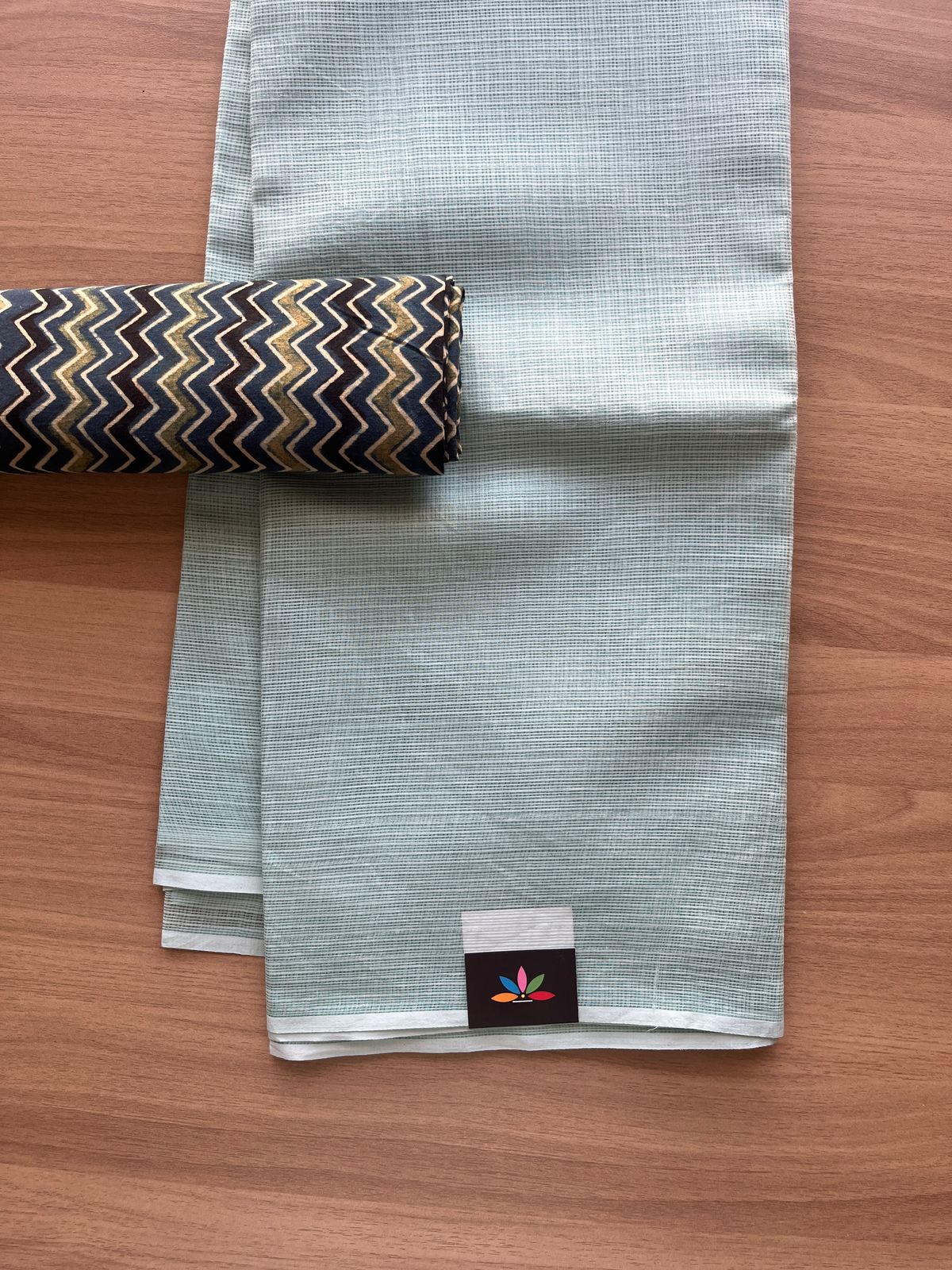Plain Kota Cotton Saree Paired with Contrast Blouse-20111