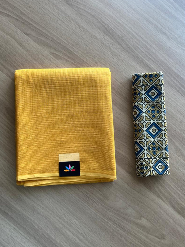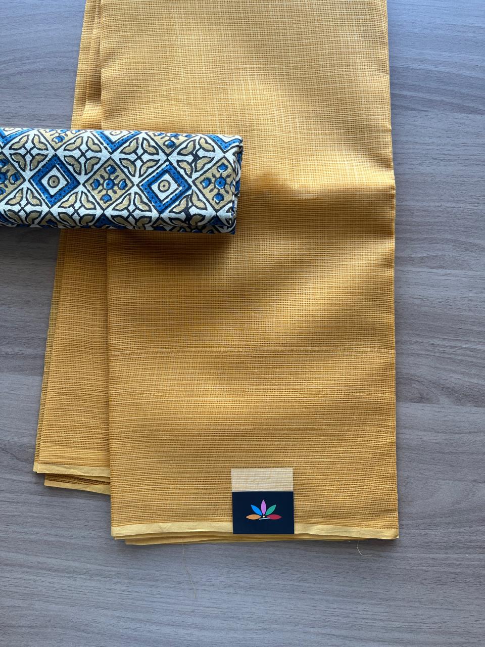 Plain Kota Cotton Saree Paired with Contrast Blouse-20122