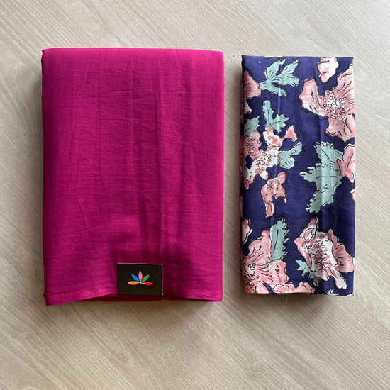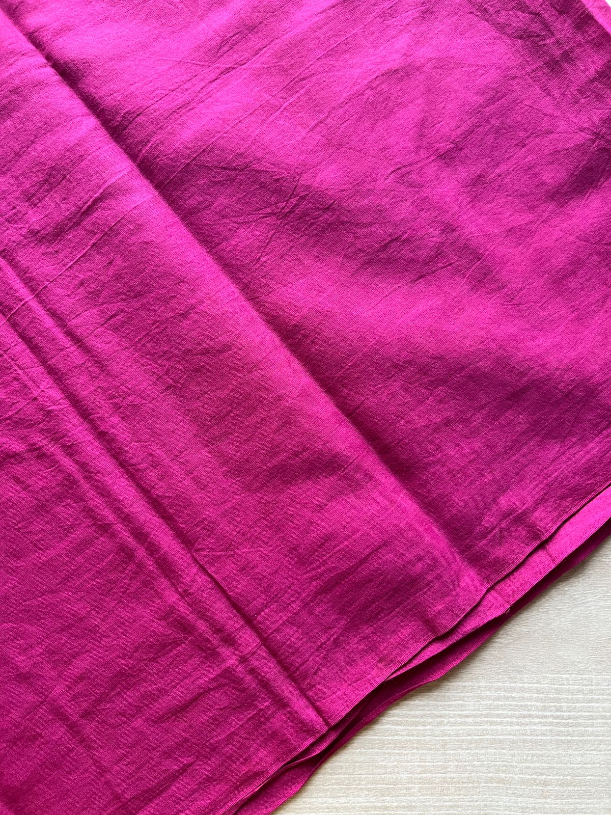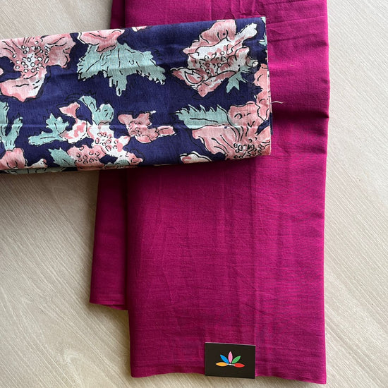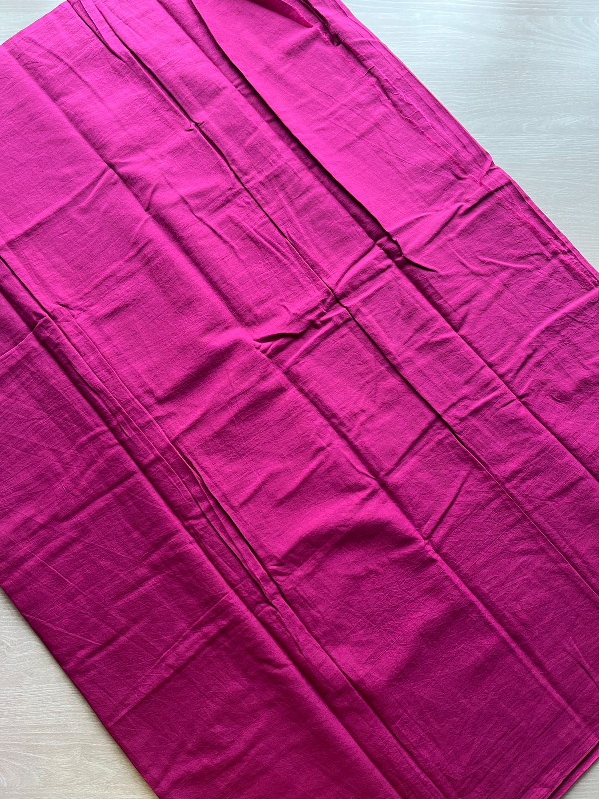 Deep Magenta Plain Mul Saree and Handblock Blouse Fabric –Casual/Work Wear-24329-24333