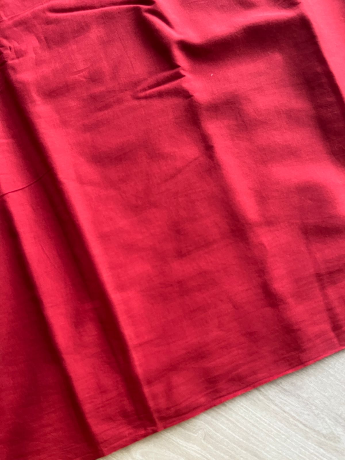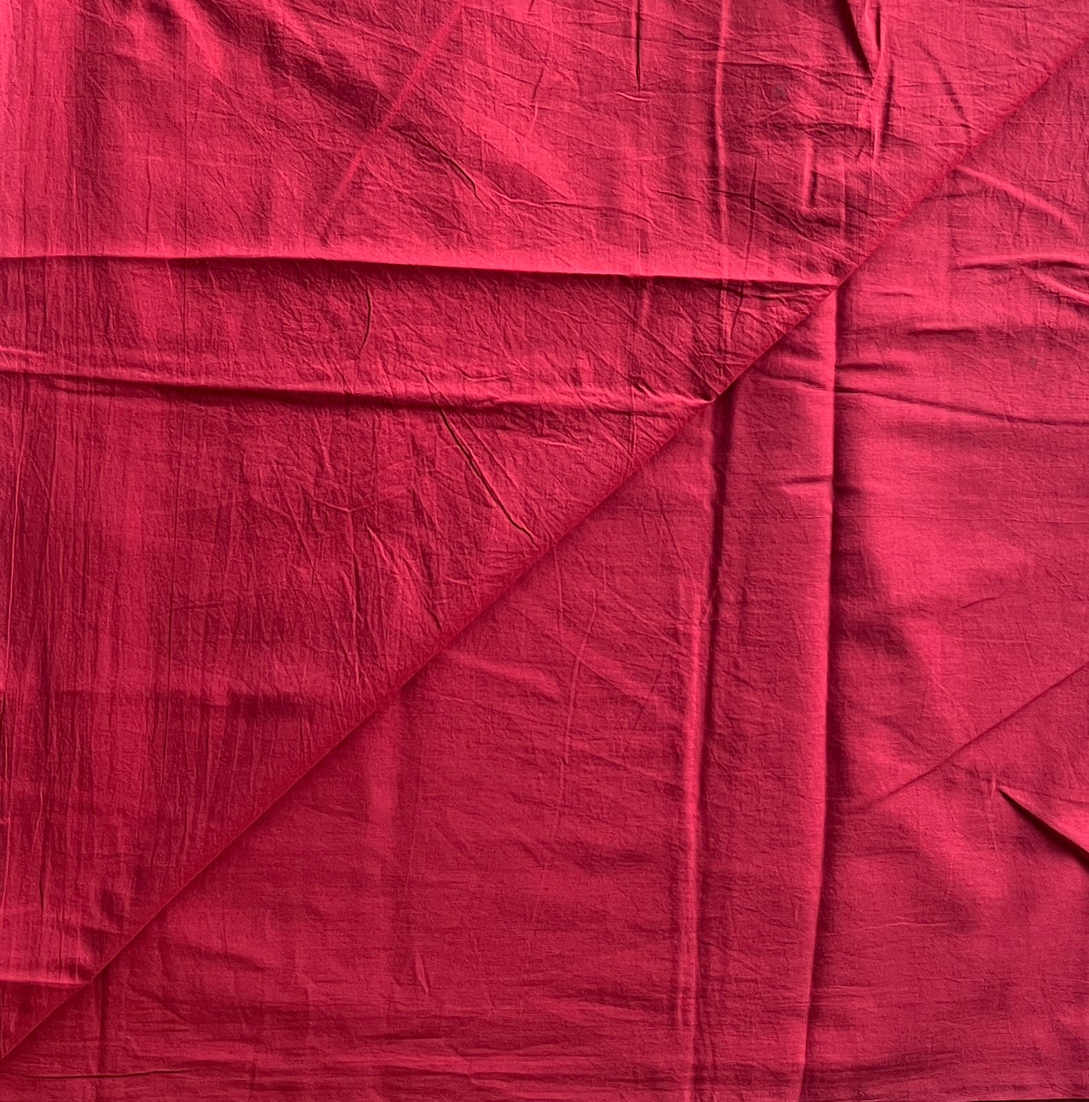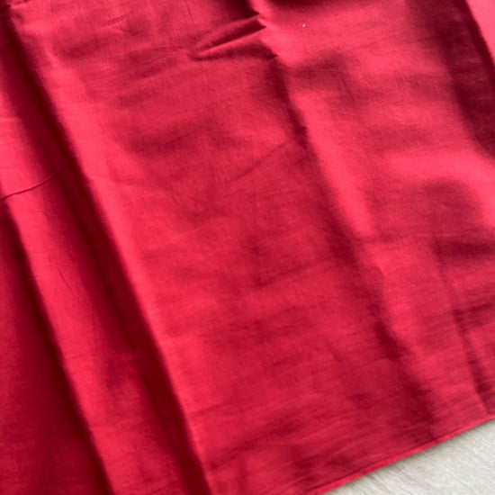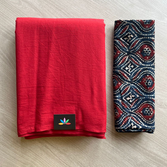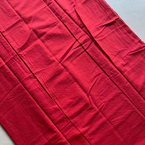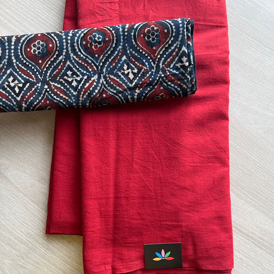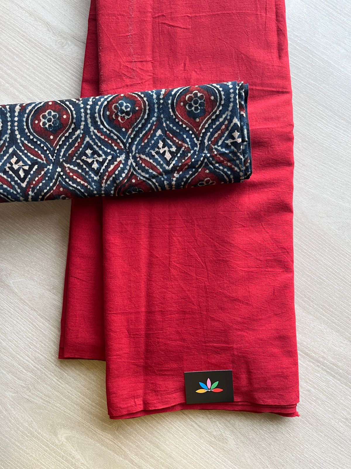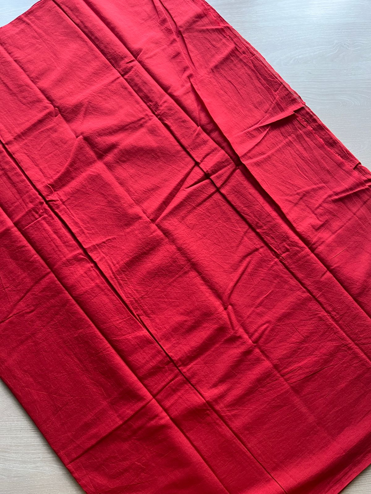 Crimson Red Plain Mul Saree and Handblock Blouse Fabric – Casual/Work Wear-24357-24358