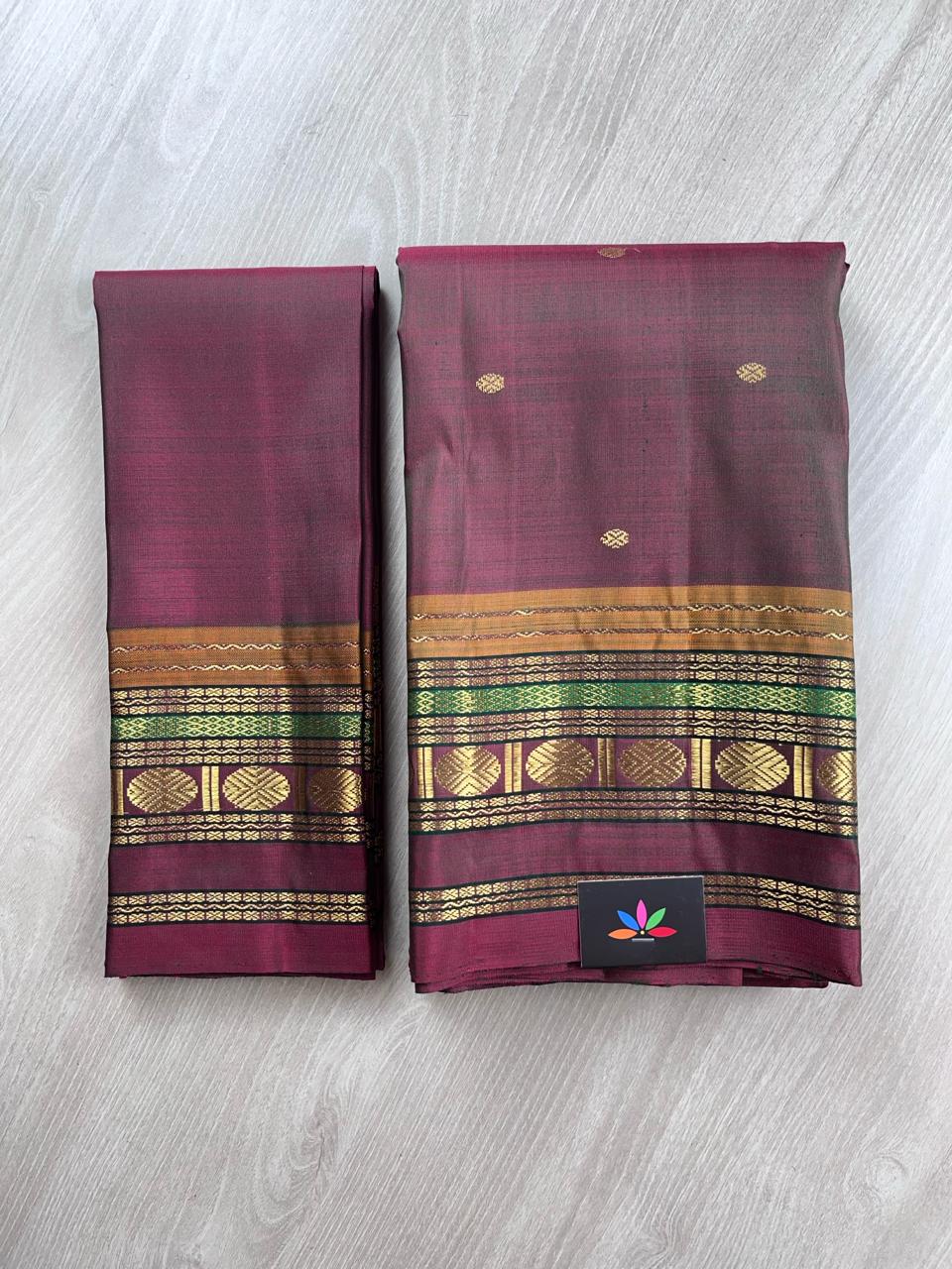 Kancheepuram sarees, also known as Kanjeevaram sarees, are traditional silk sarees woven in the Kanchipuram region of Tamil Nadu, India. Renowned for their rich texture, vibrant colors, and intricate zari work, Kancheepuram sarees are highly prized and considered among the finest silk sarees in India.