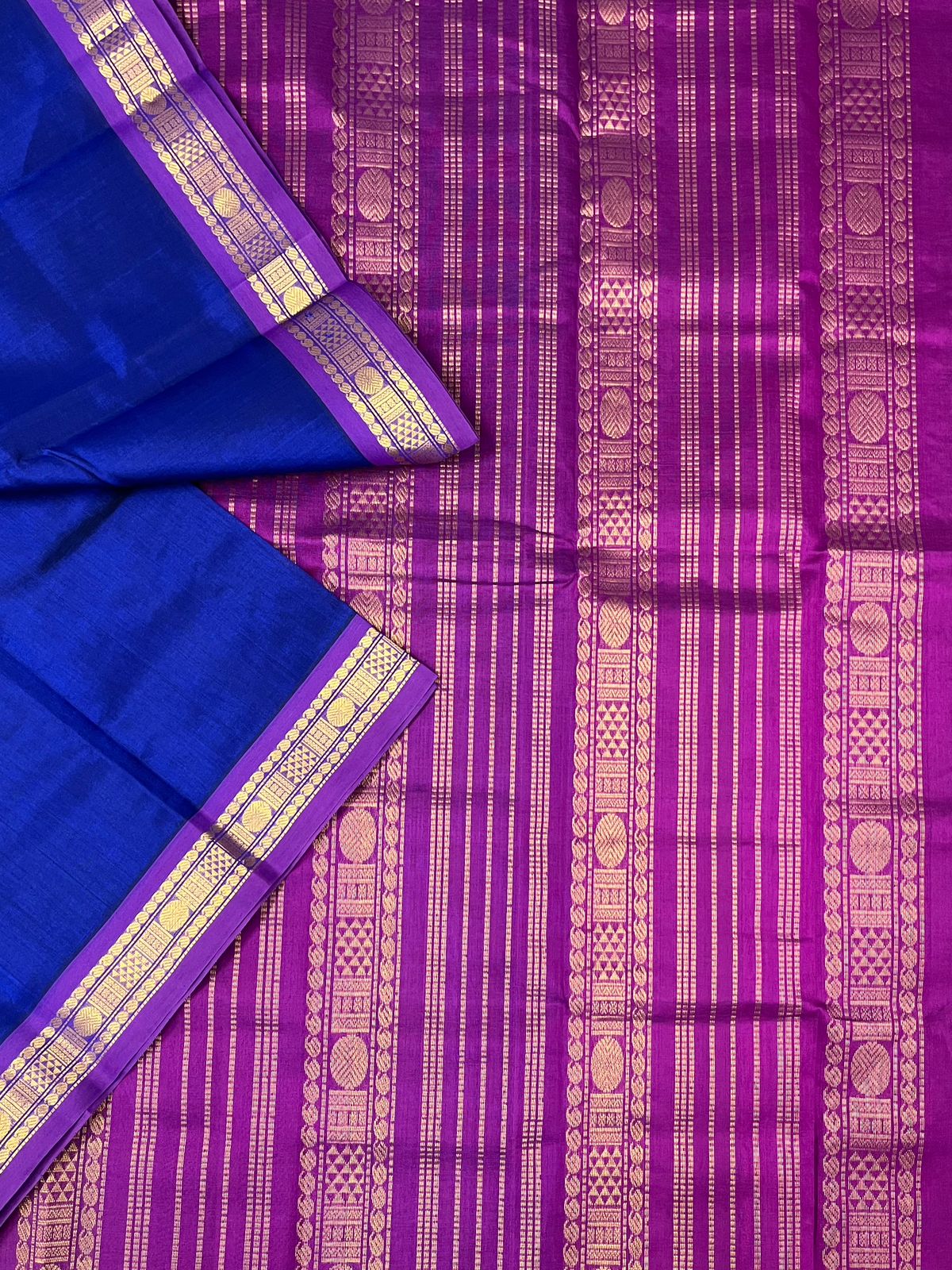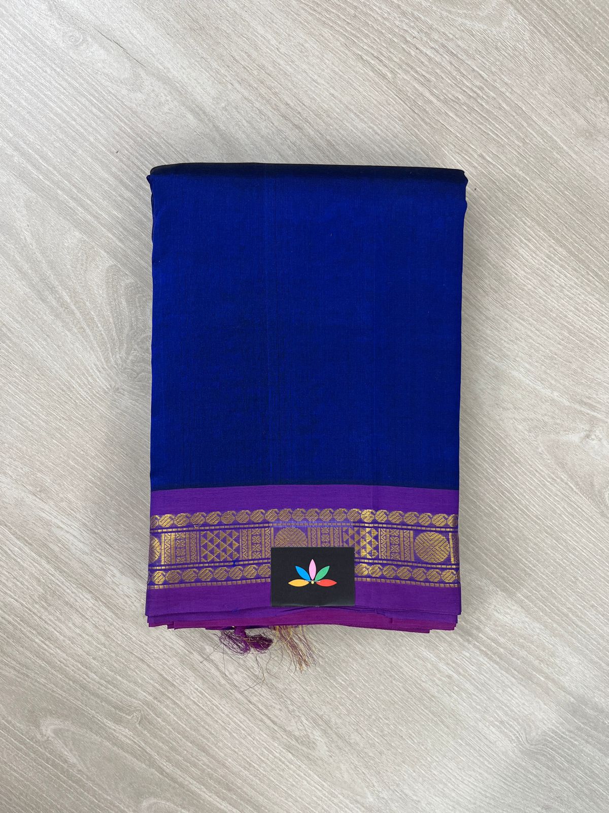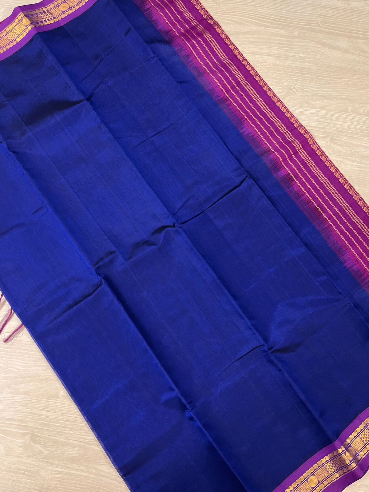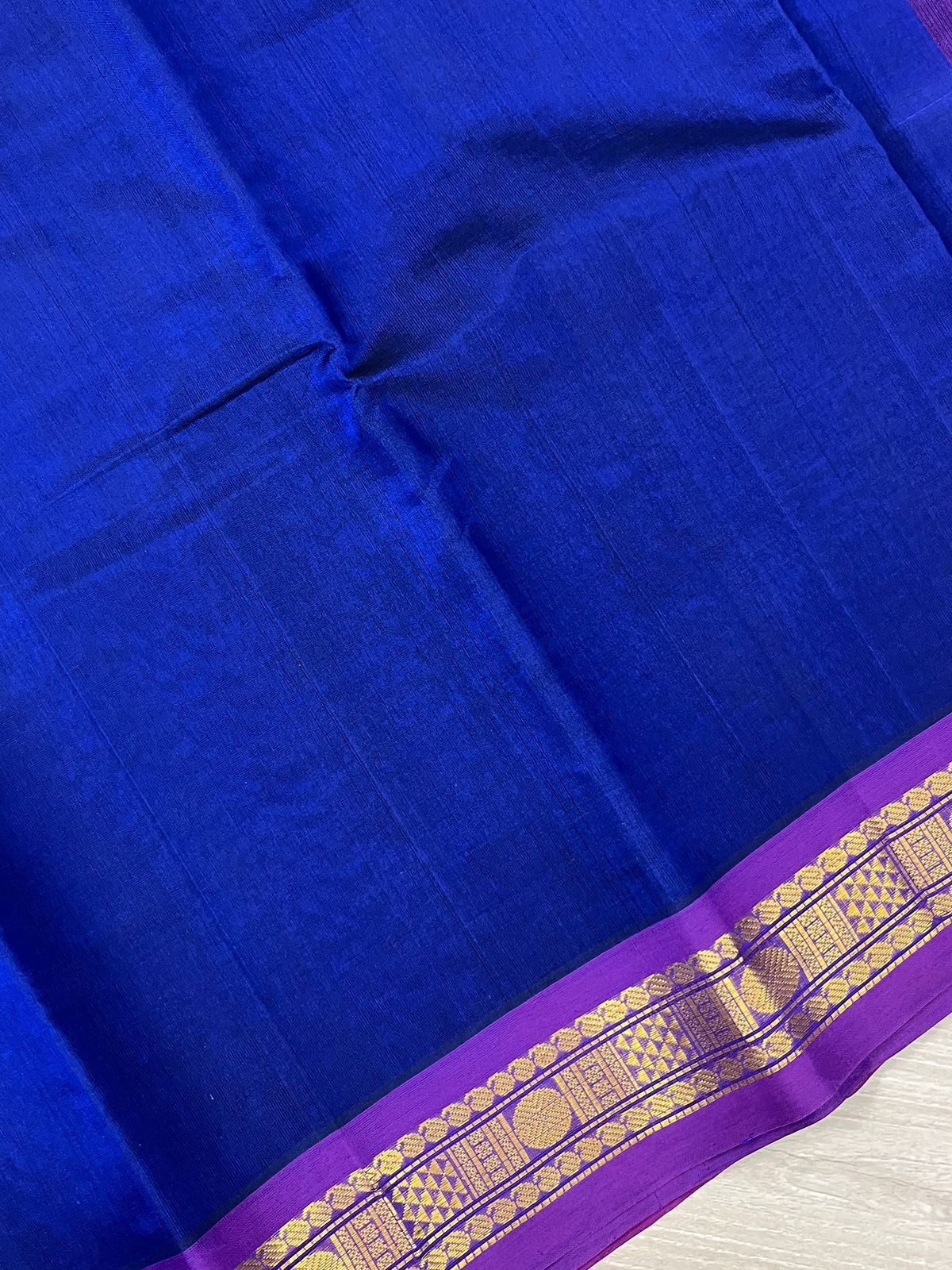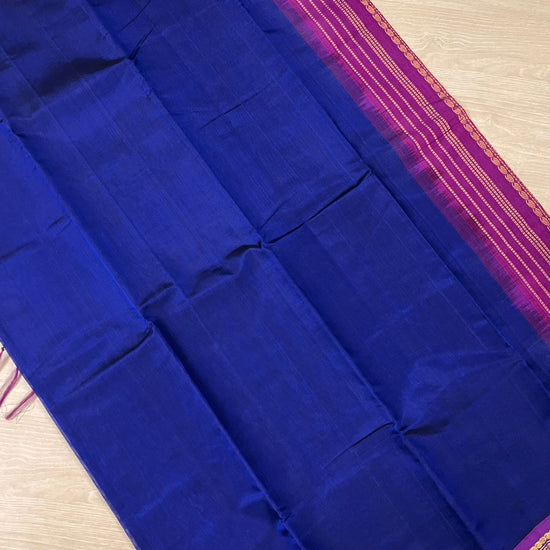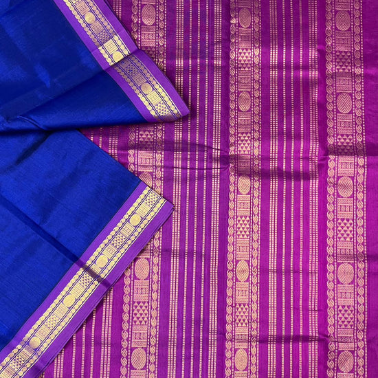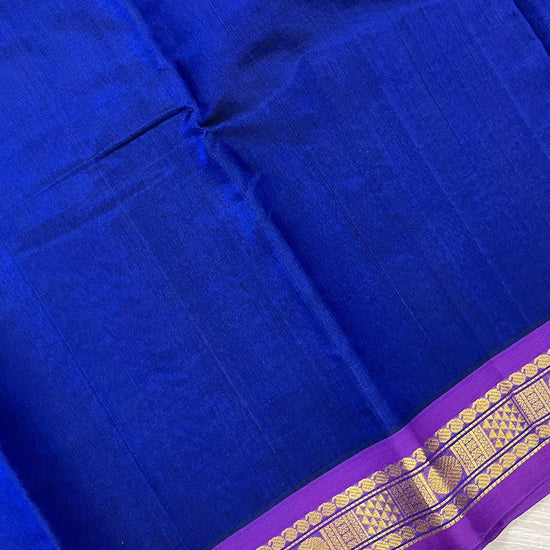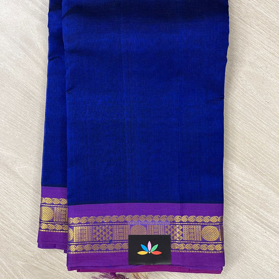 Royal Blue Silk Cotton Saree with Purple Border