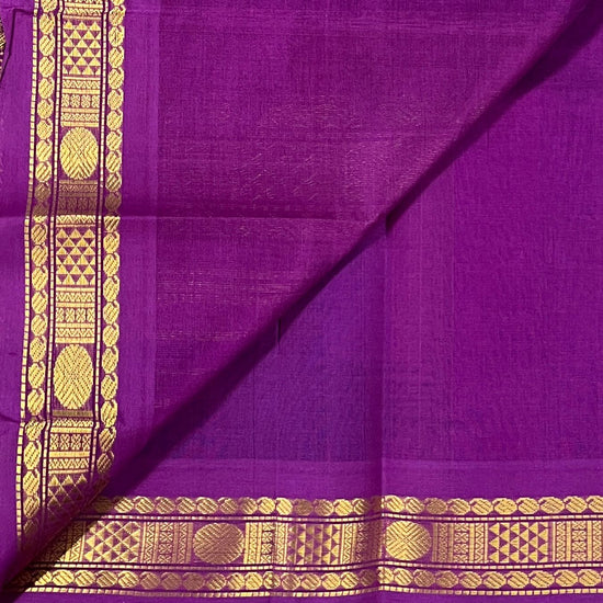 Royal Blue Silk Cotton Saree with Purple Border -24167
