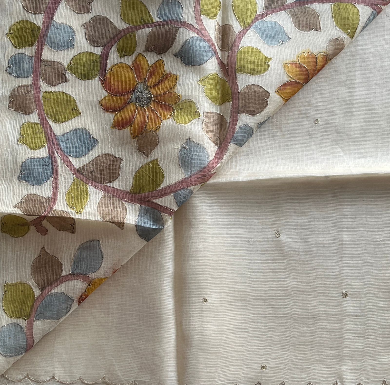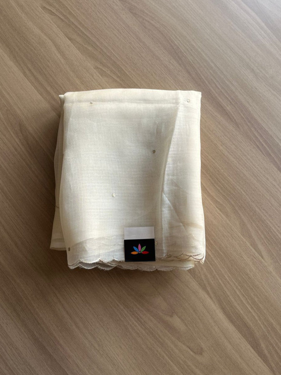 Scallop Border Kota Silk Saree with Kalamkari Print Blouse