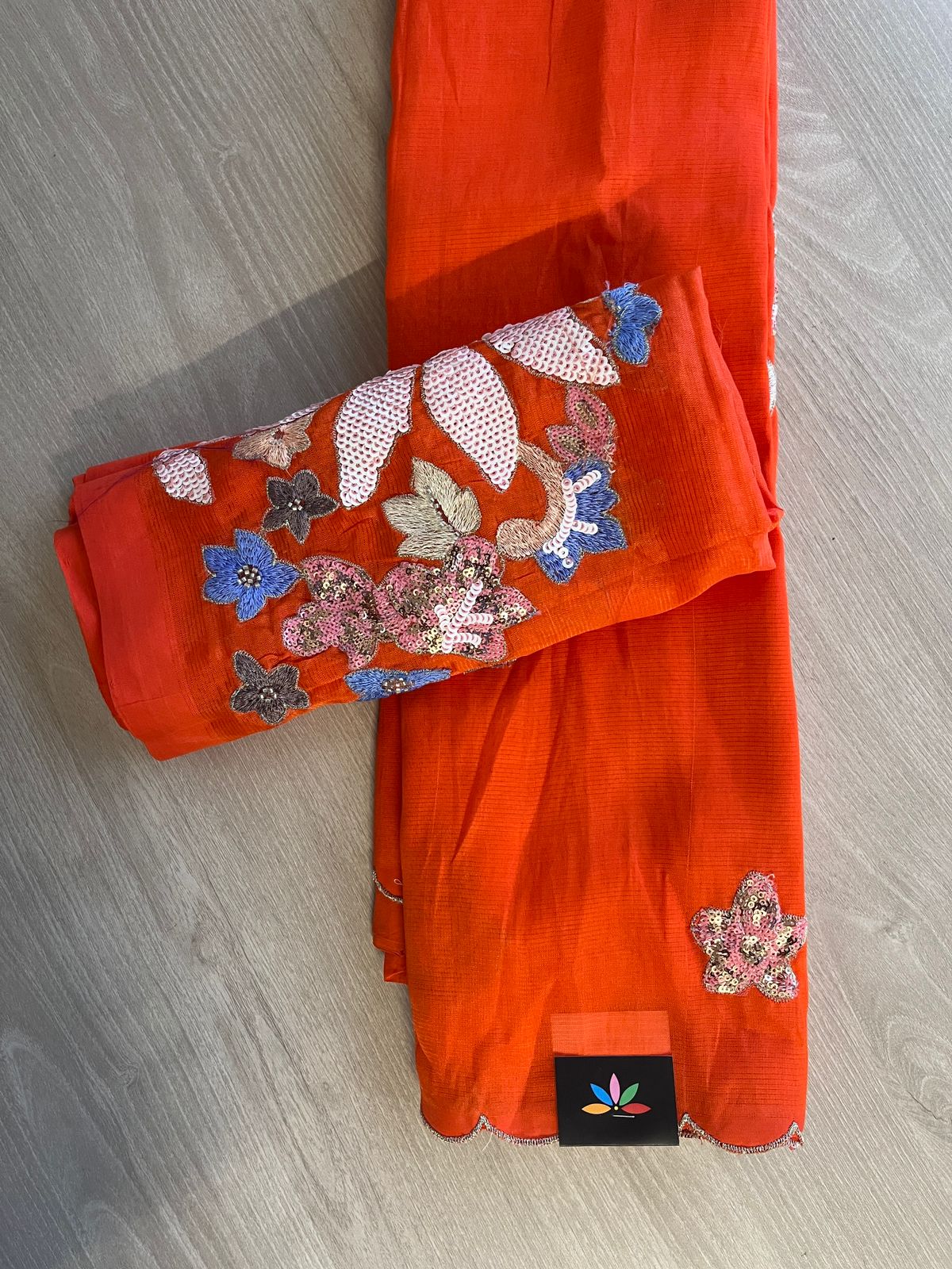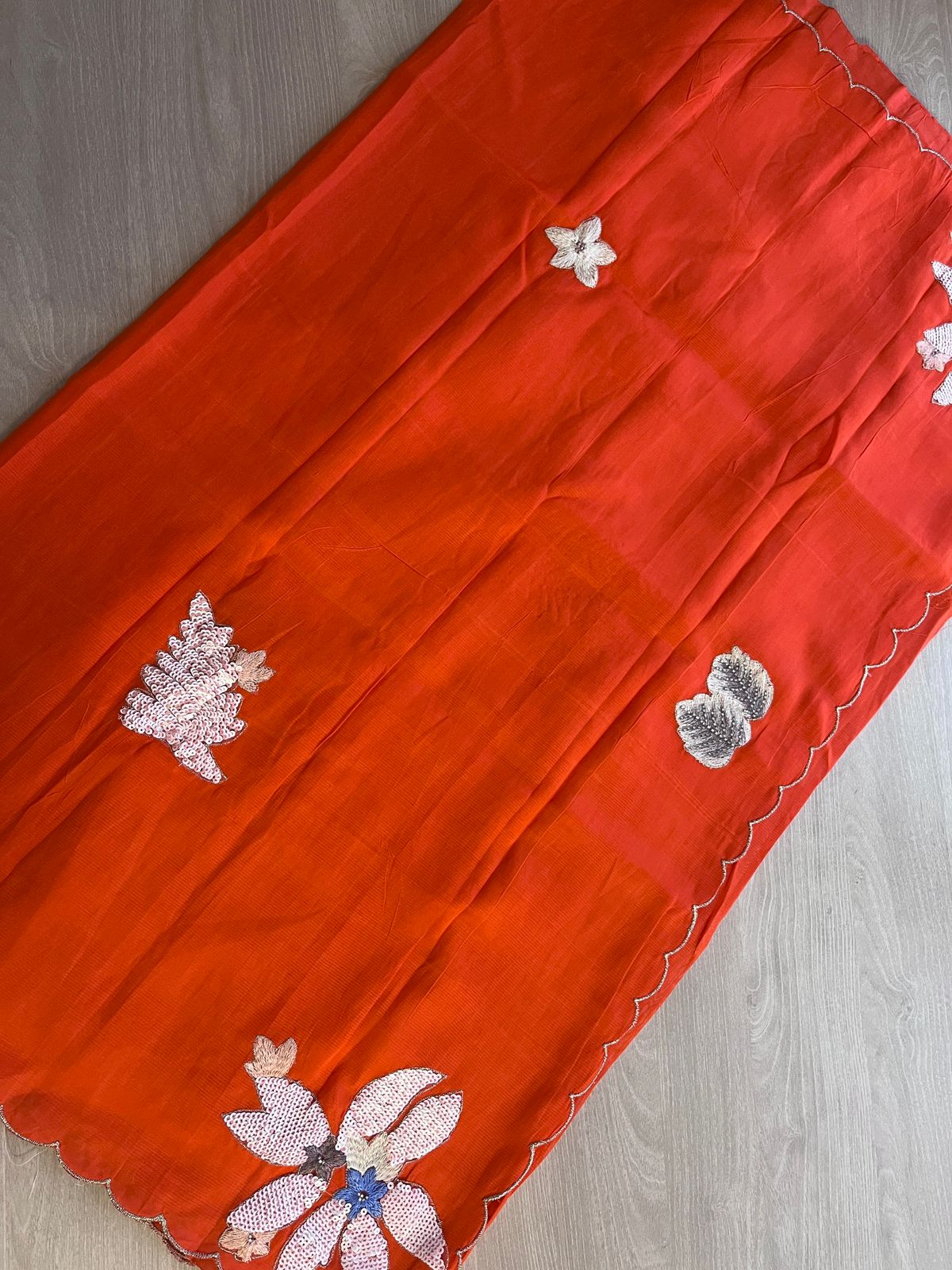 Sequin Work Mangalagiri Silk Cotton Saree - 27030