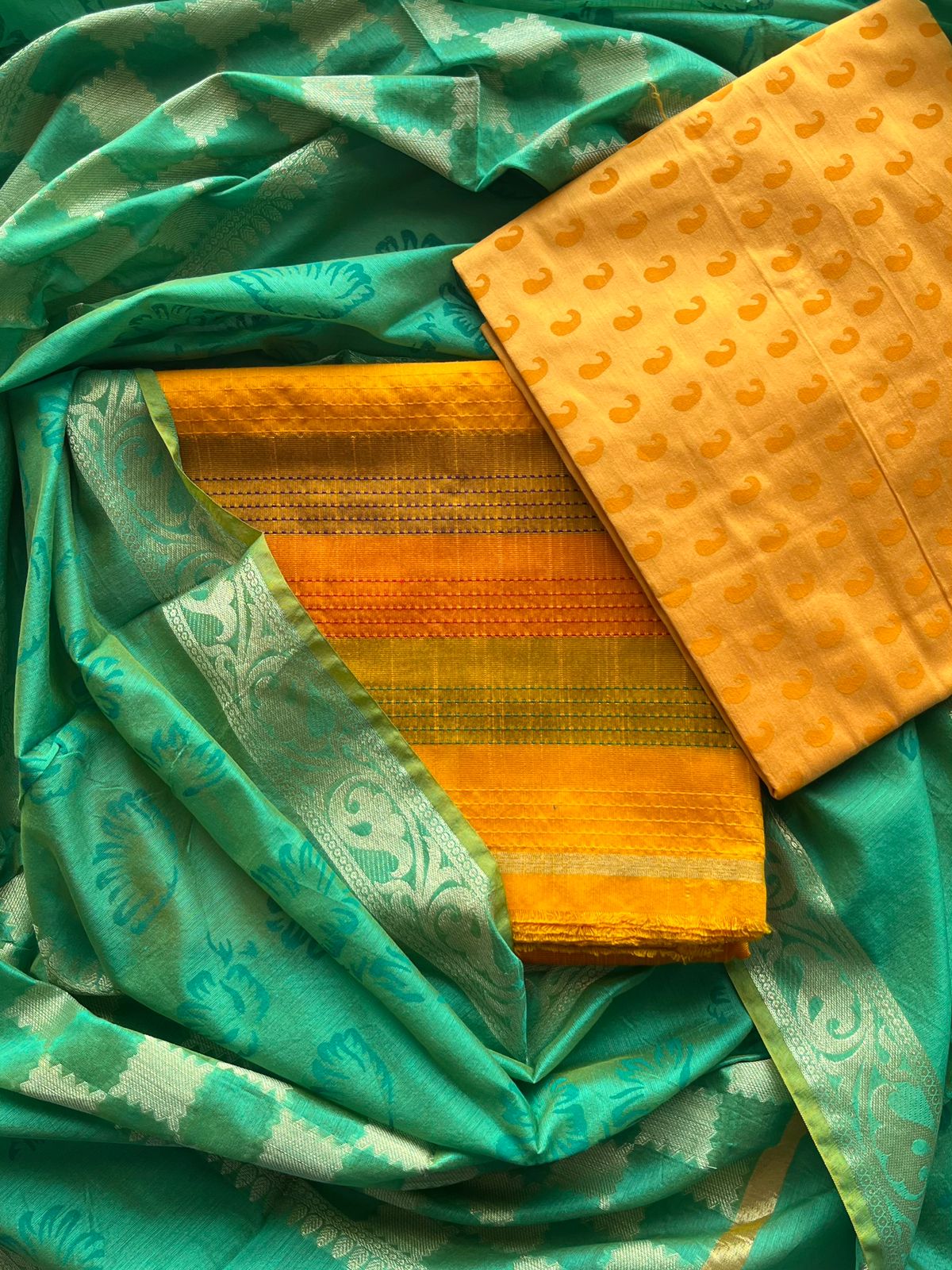 Semi Raw Kantha Weaving Suits With Chanderi Dupatta -516