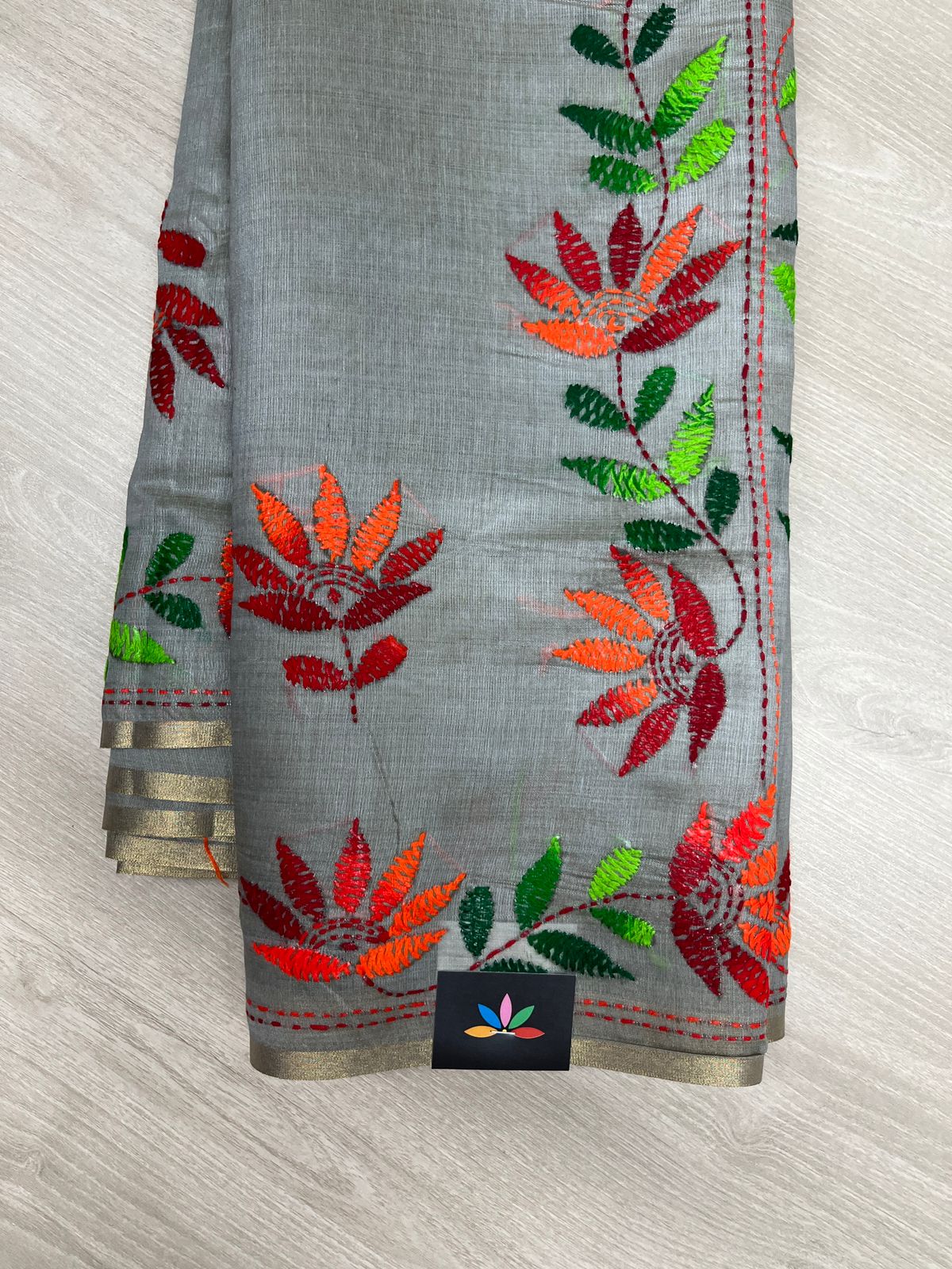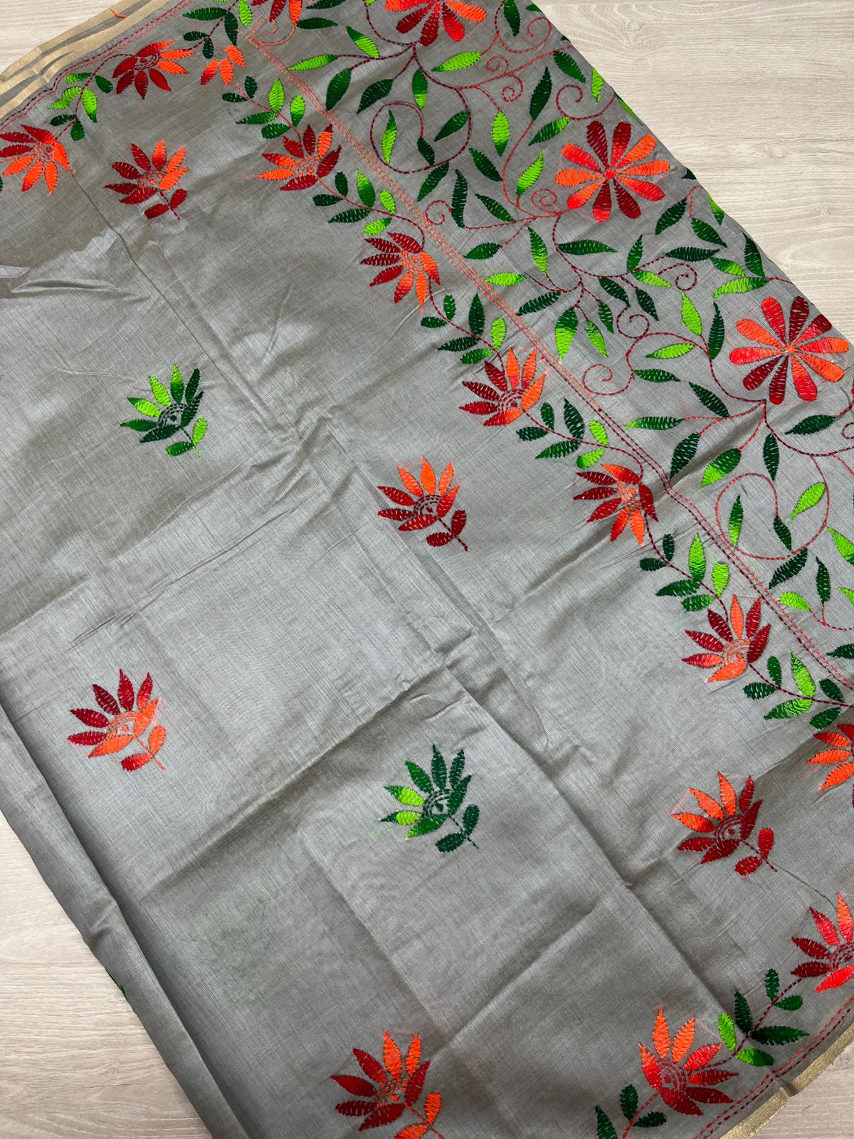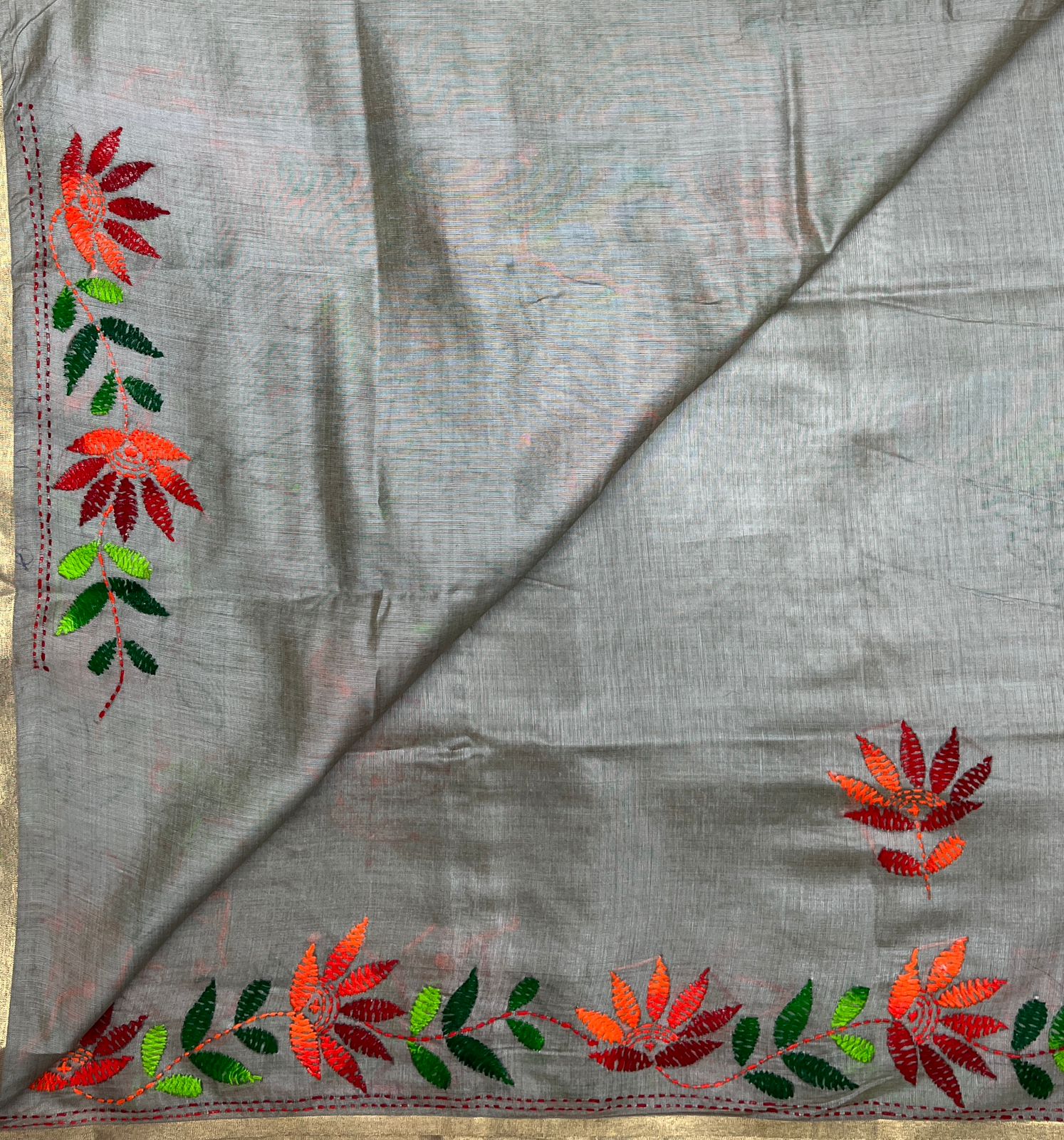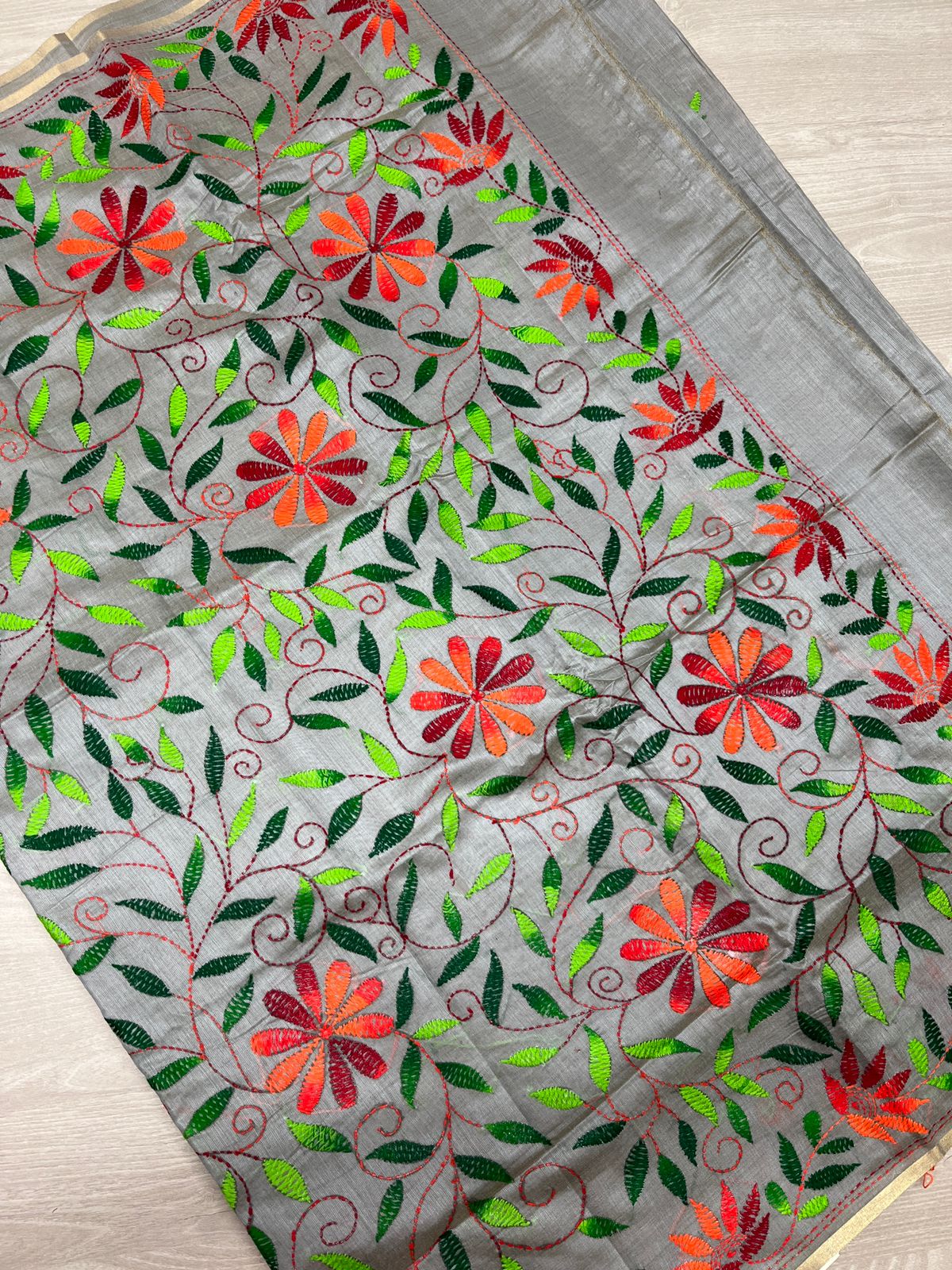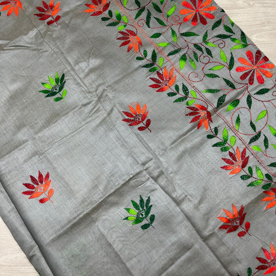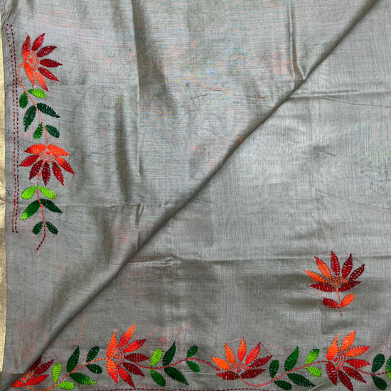 Semi Tussar Kantha Stitch Saree -23759