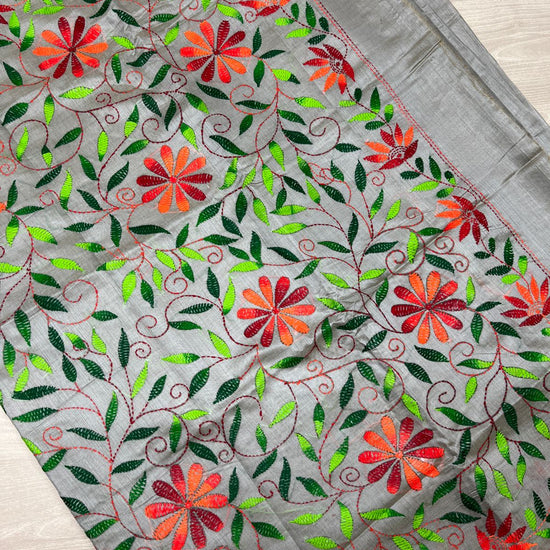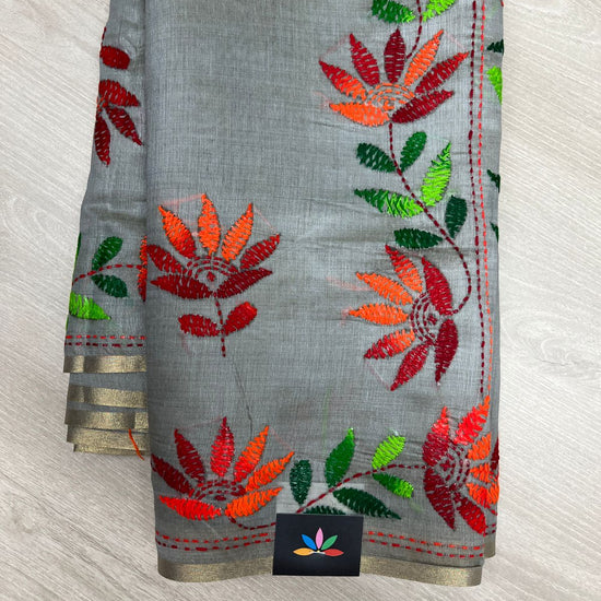 Semi Tussar Kantha Stitch Saree