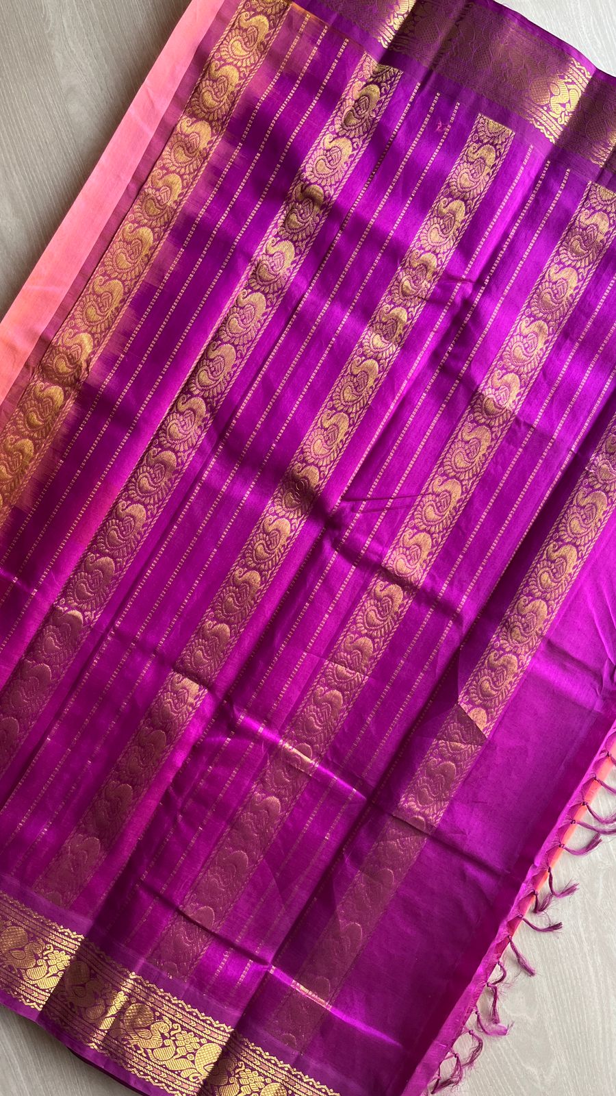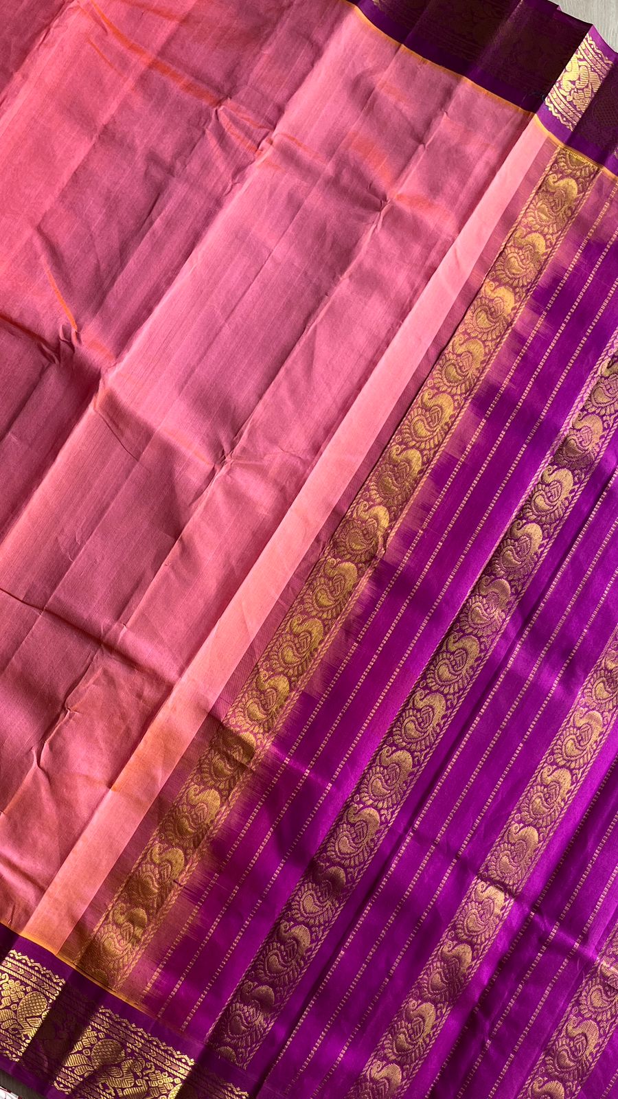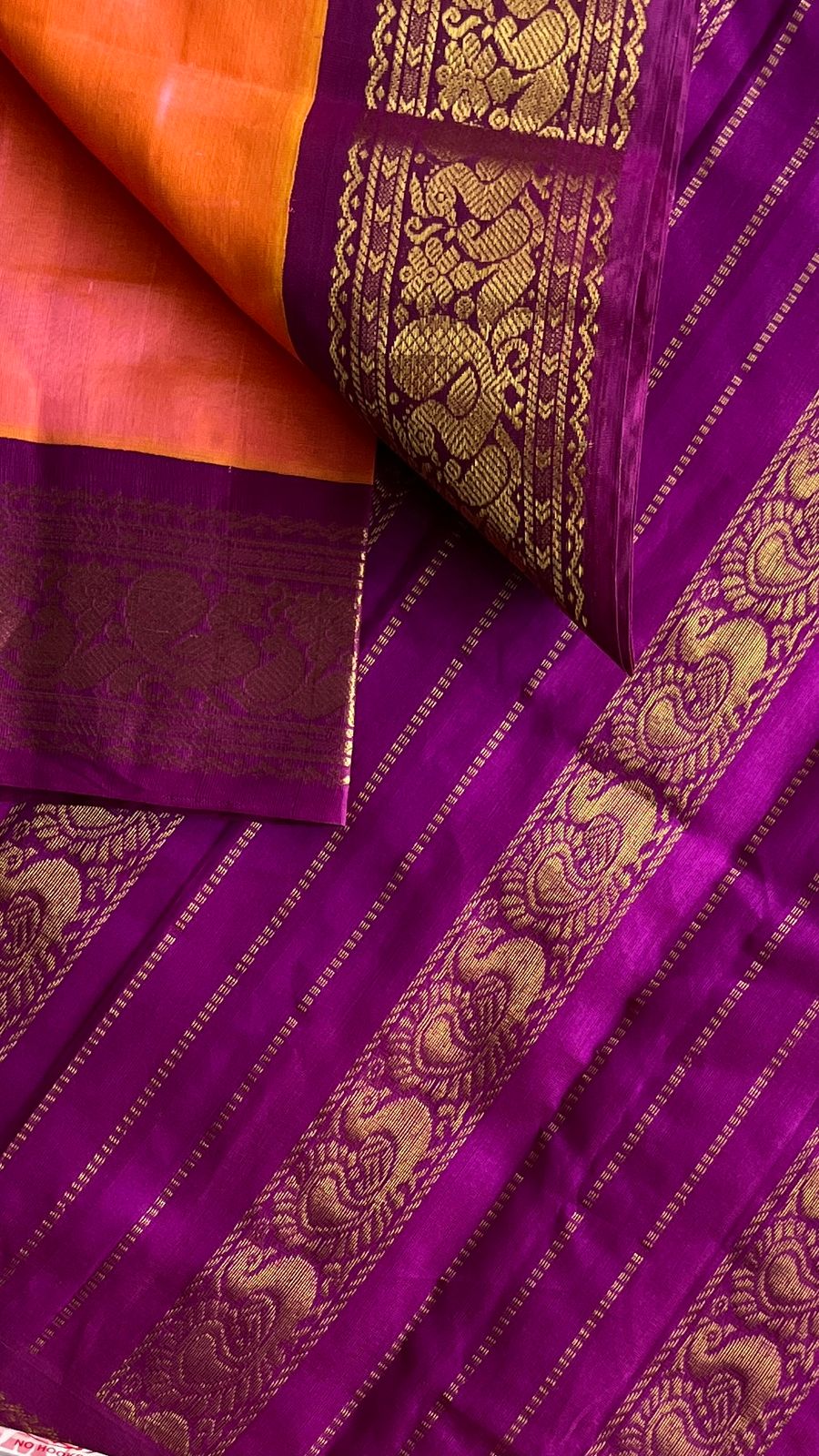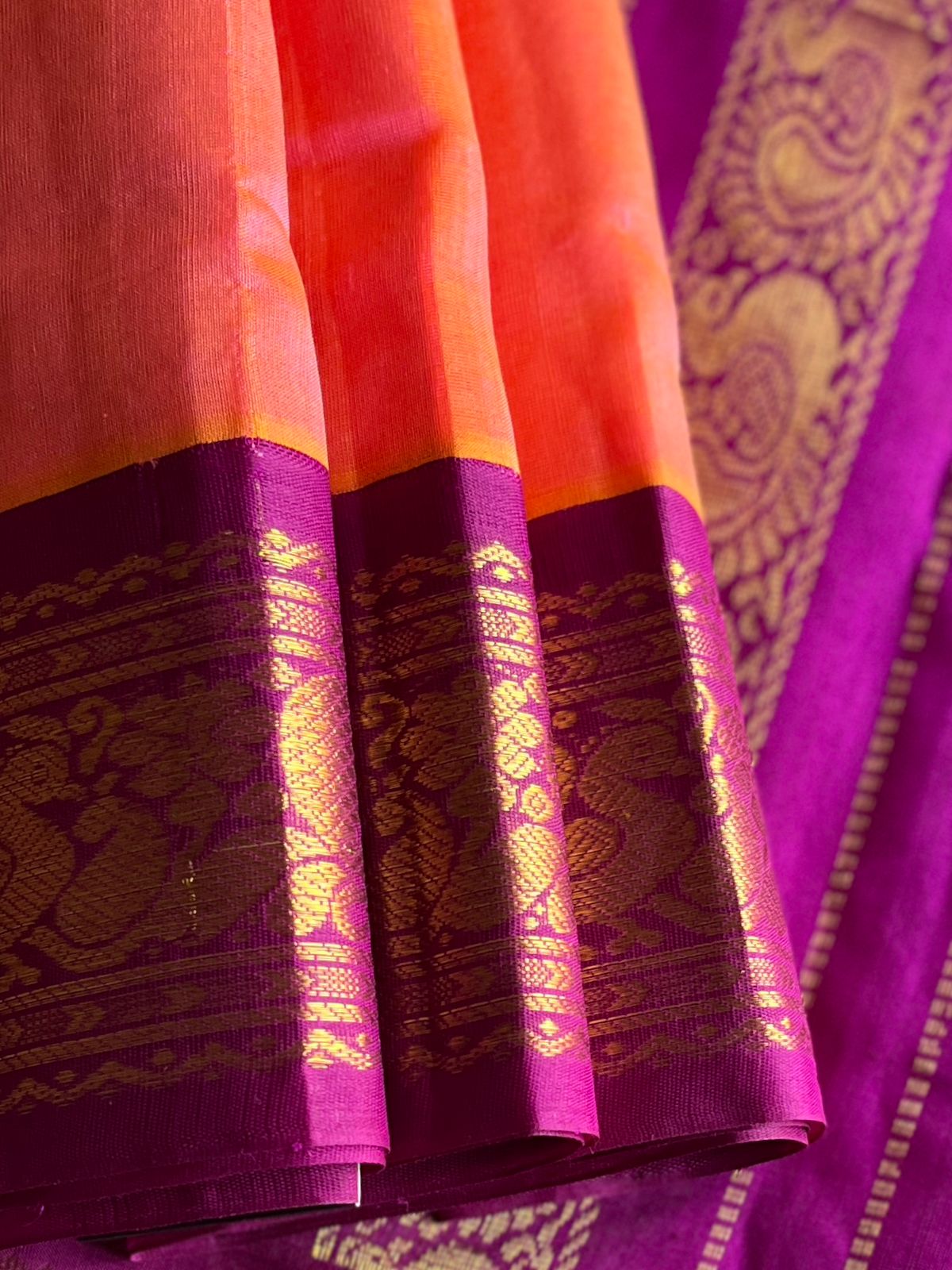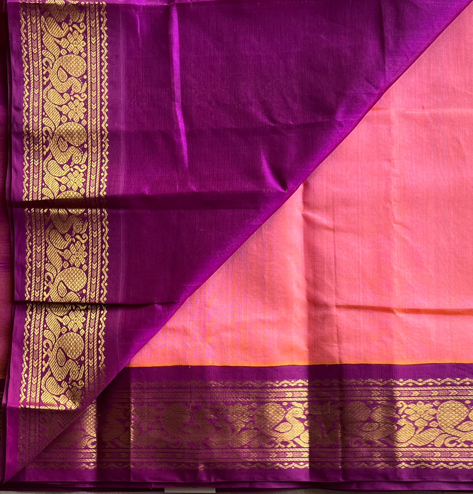 Silk Cotton Saree with Contrast Korvai Border
