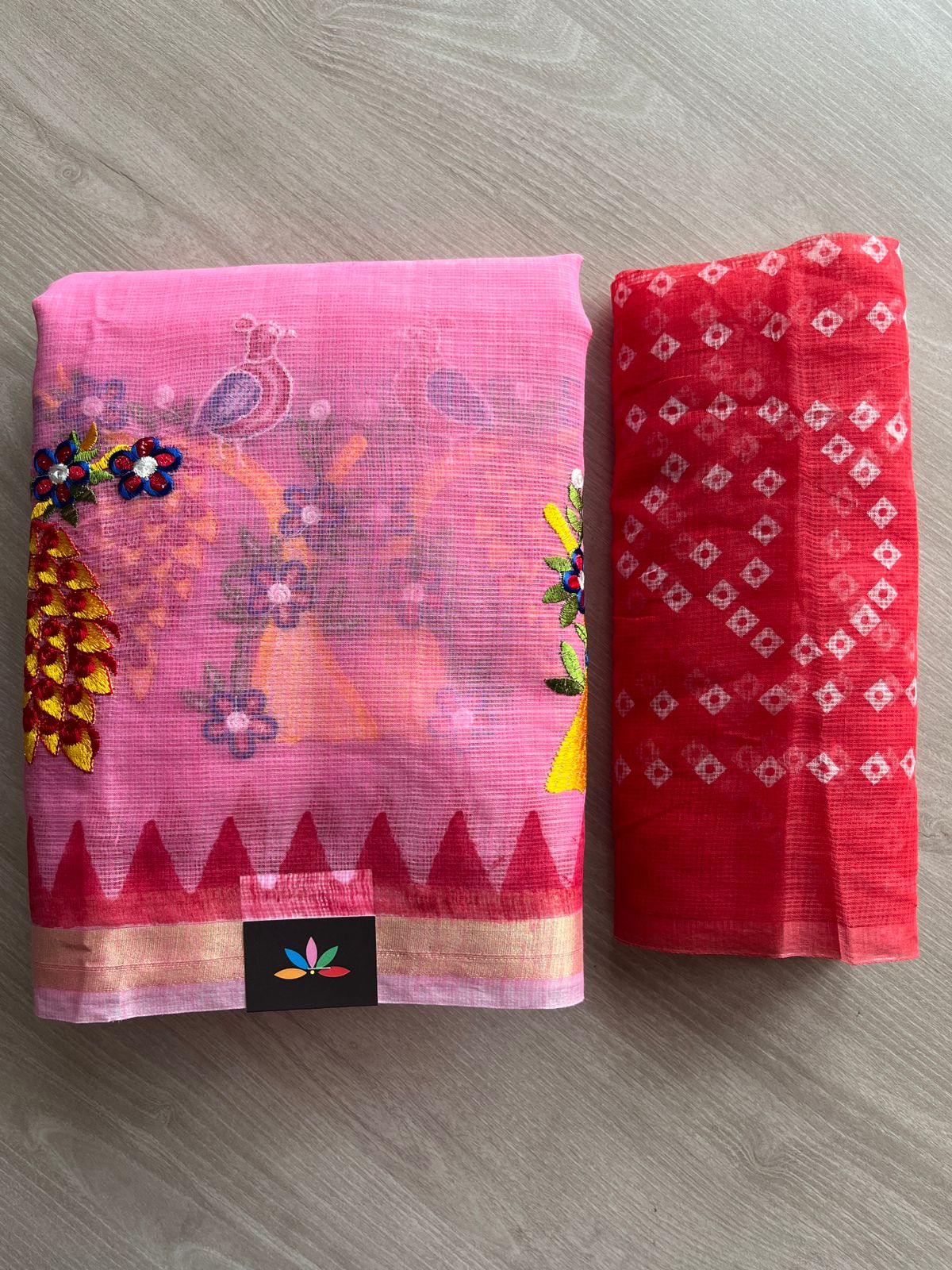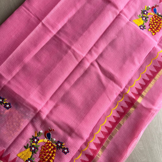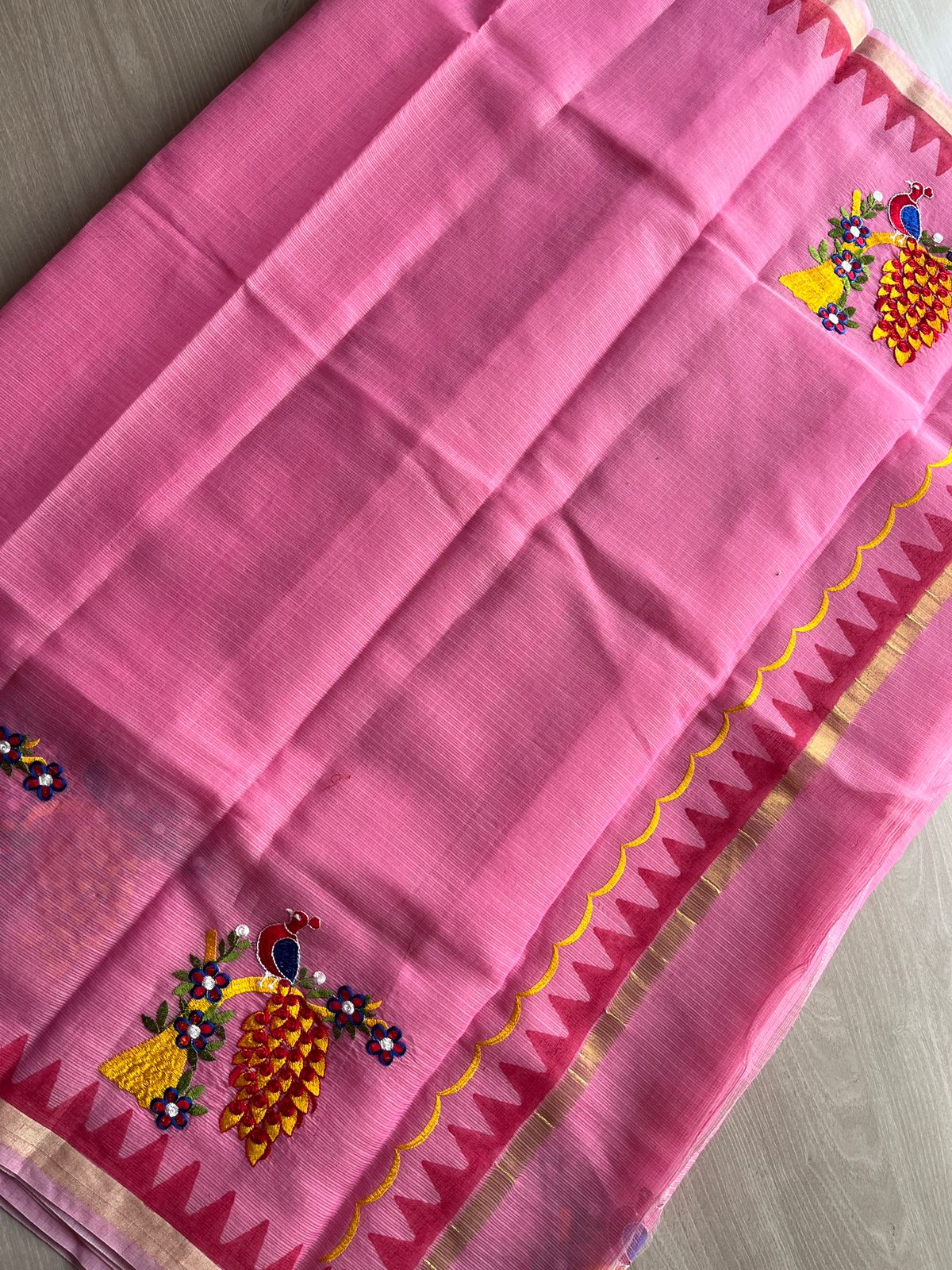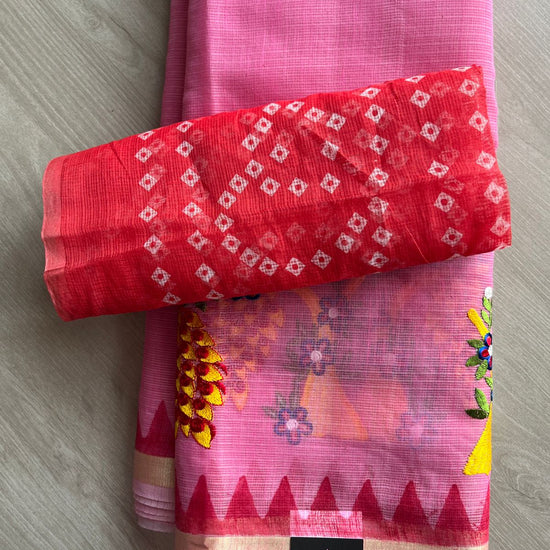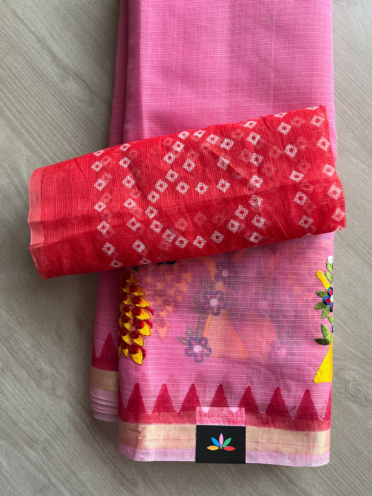 Simple Embroidery Kota Saree with Contrast Blouse-27313