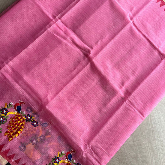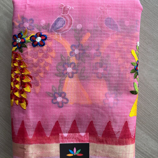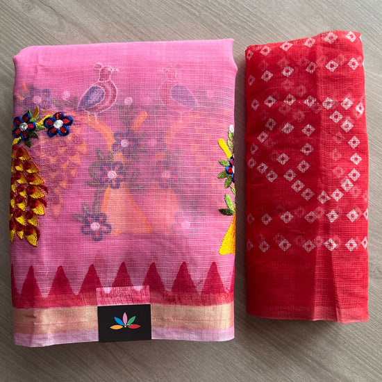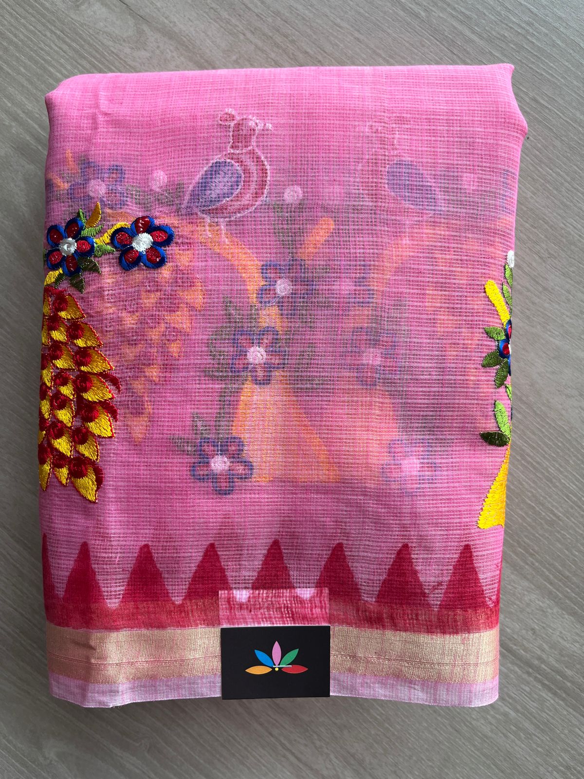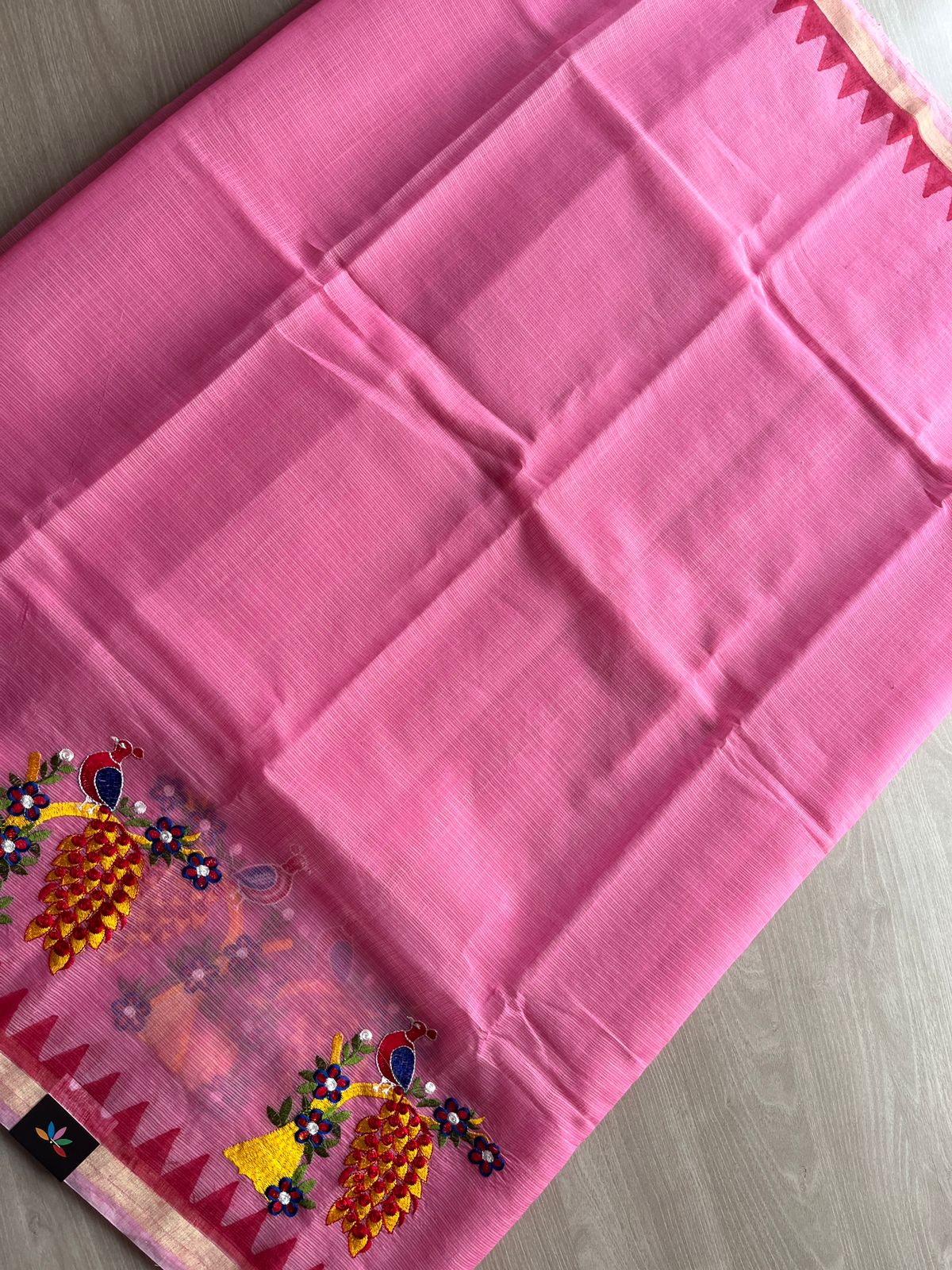 Simple Embroidery Kota Saree with Contrast Blouse-27313