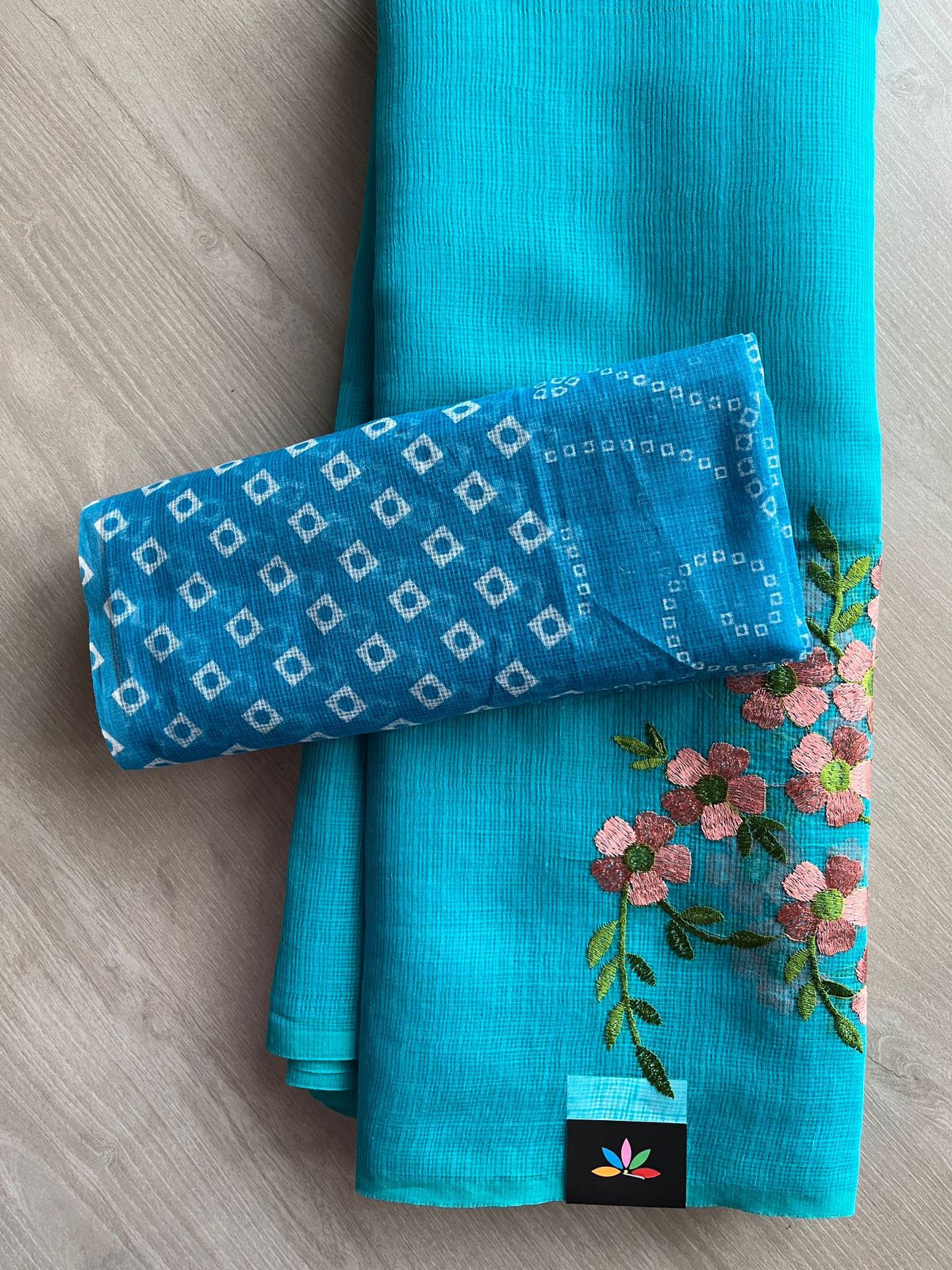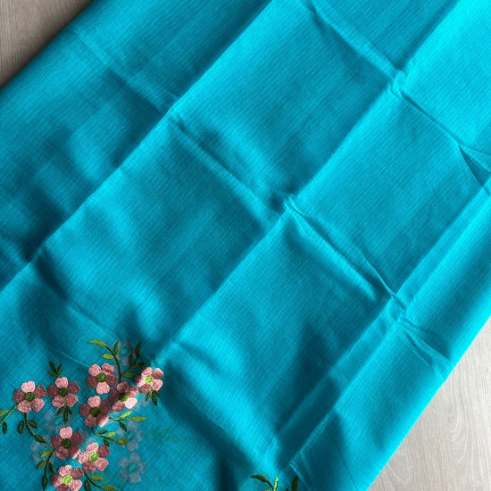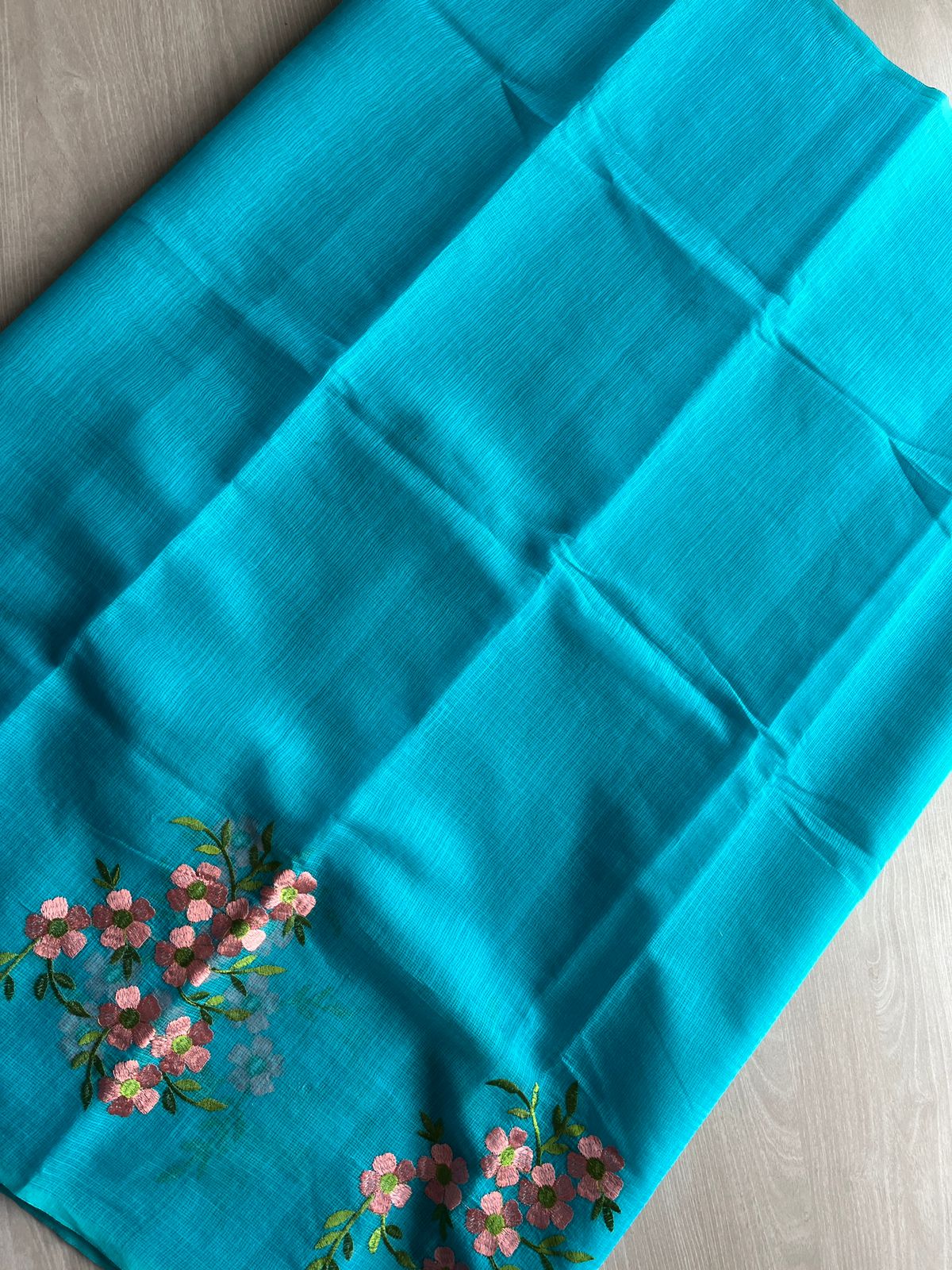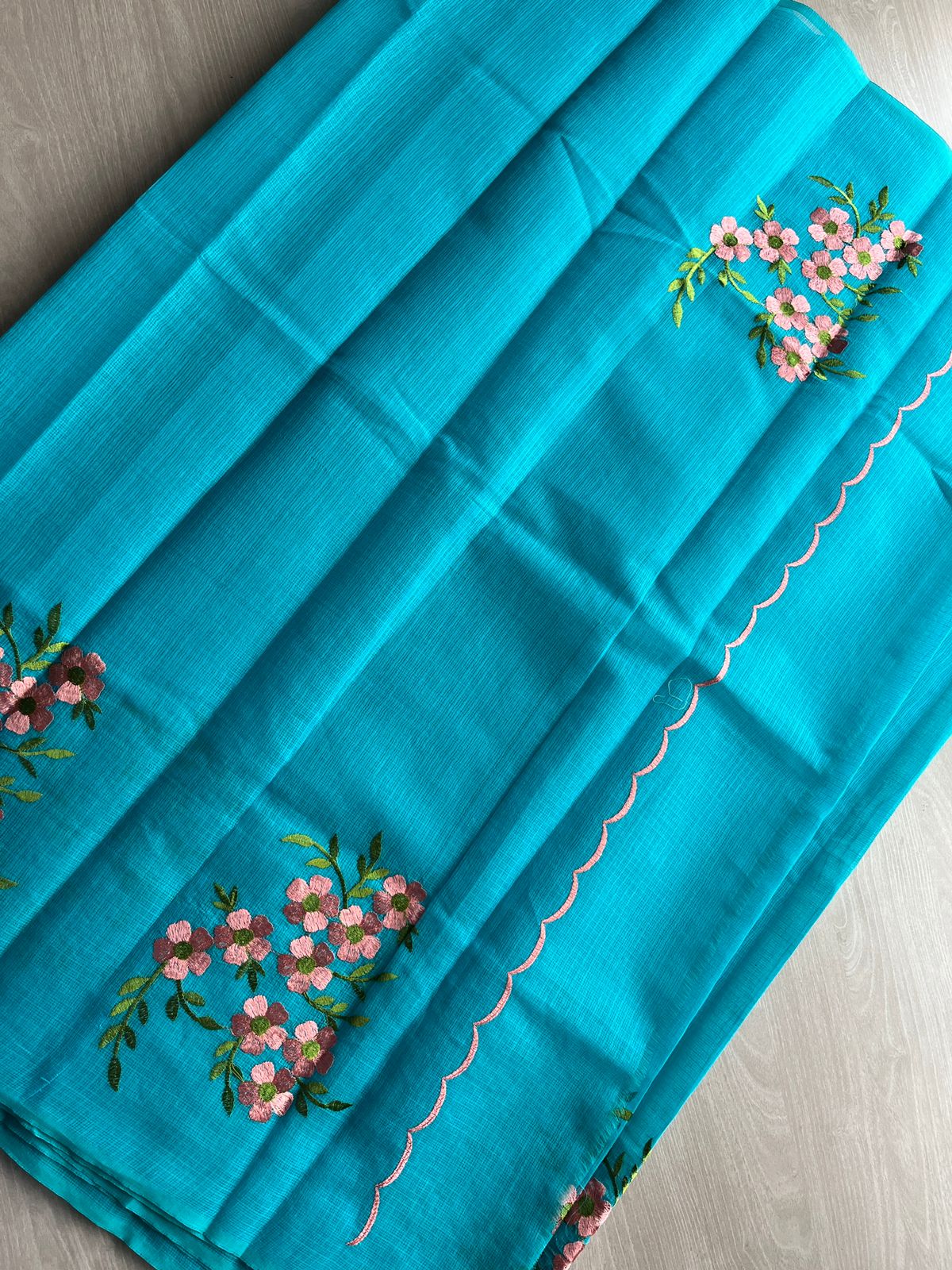 Simple Embroidery Kota Saree with Contrast Blouse-27317