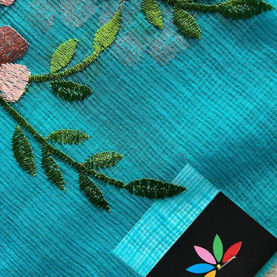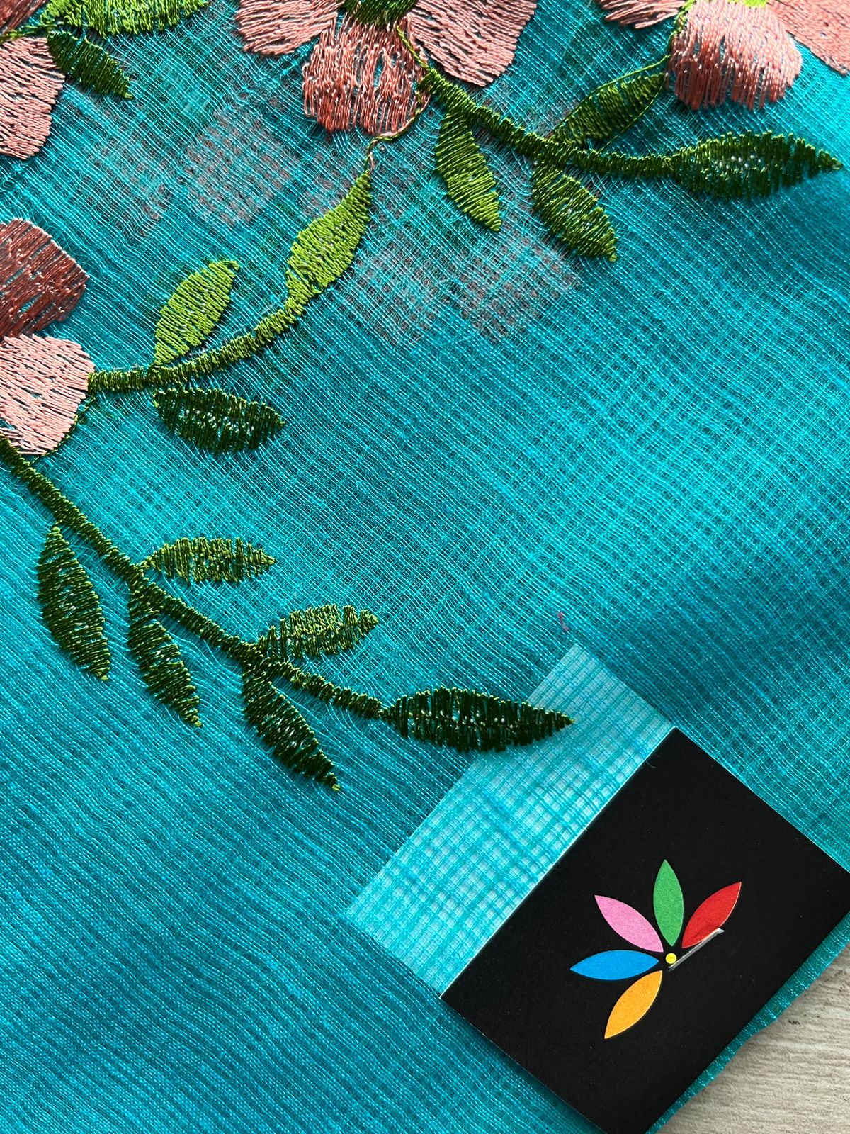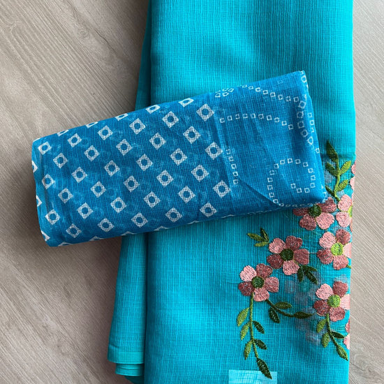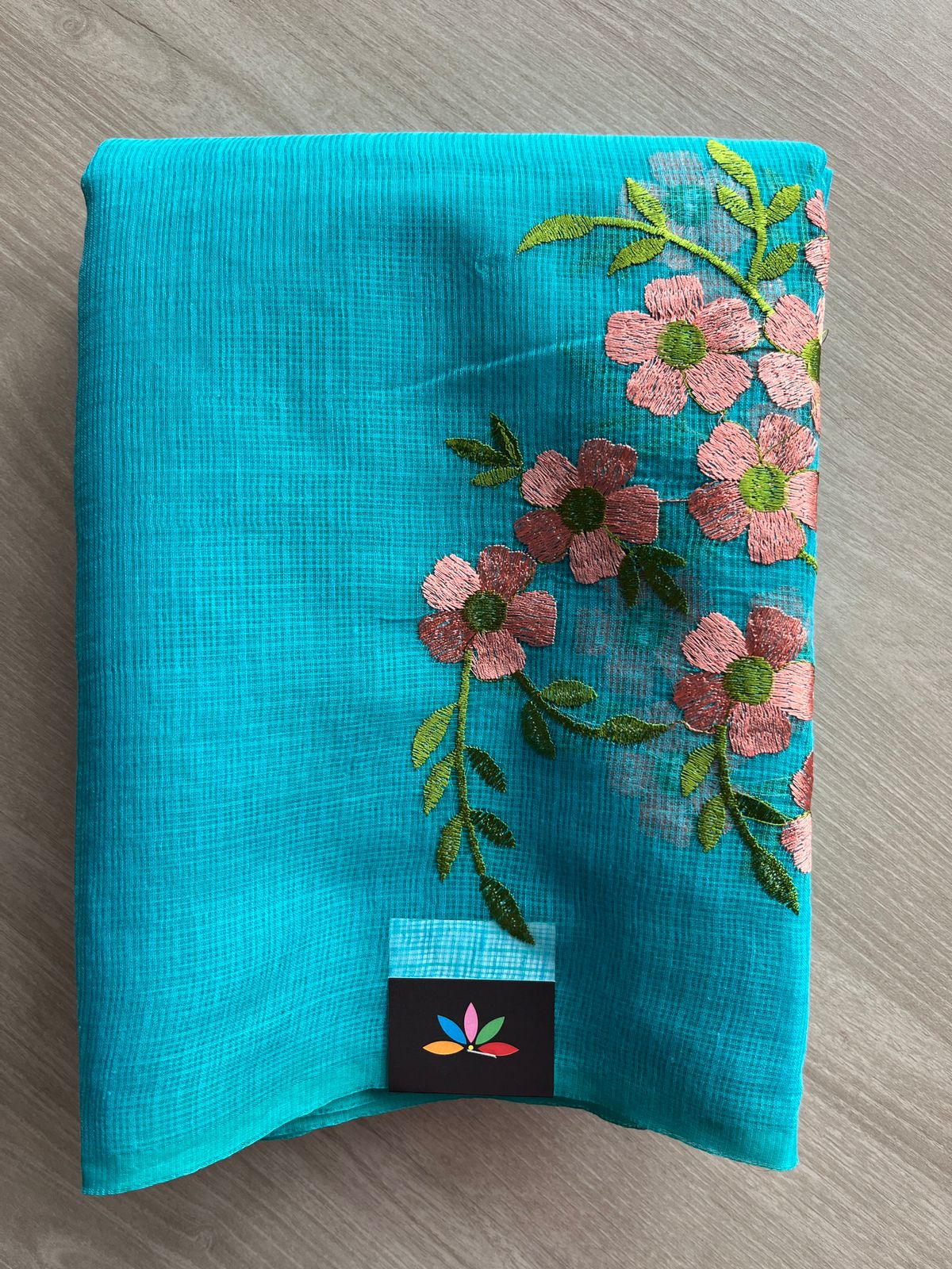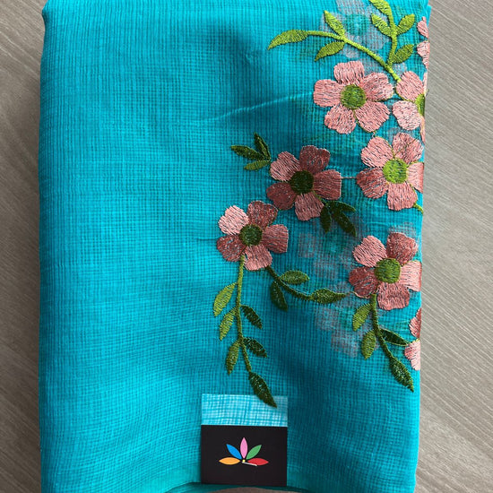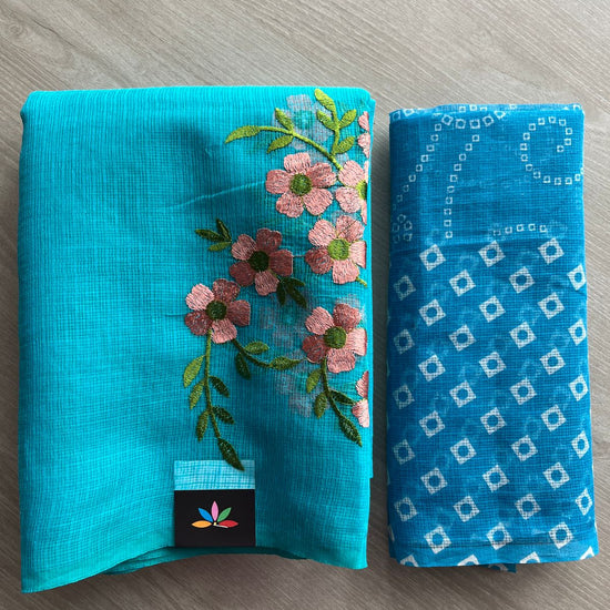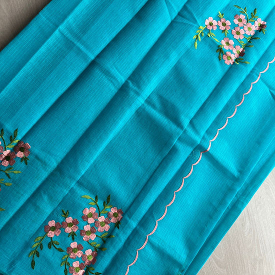 Simple Embroidery Kota Saree with Contrast Blouse-27317