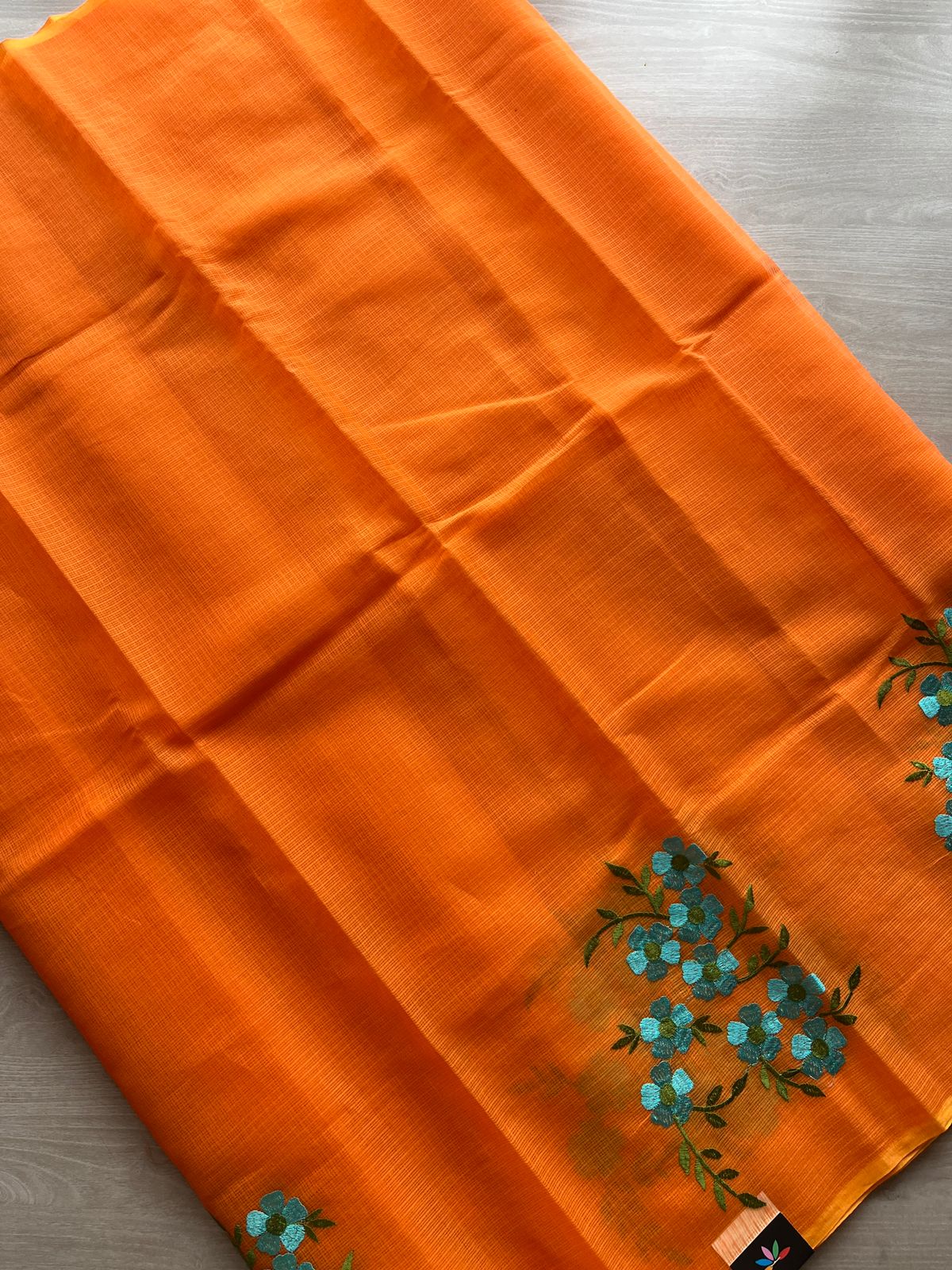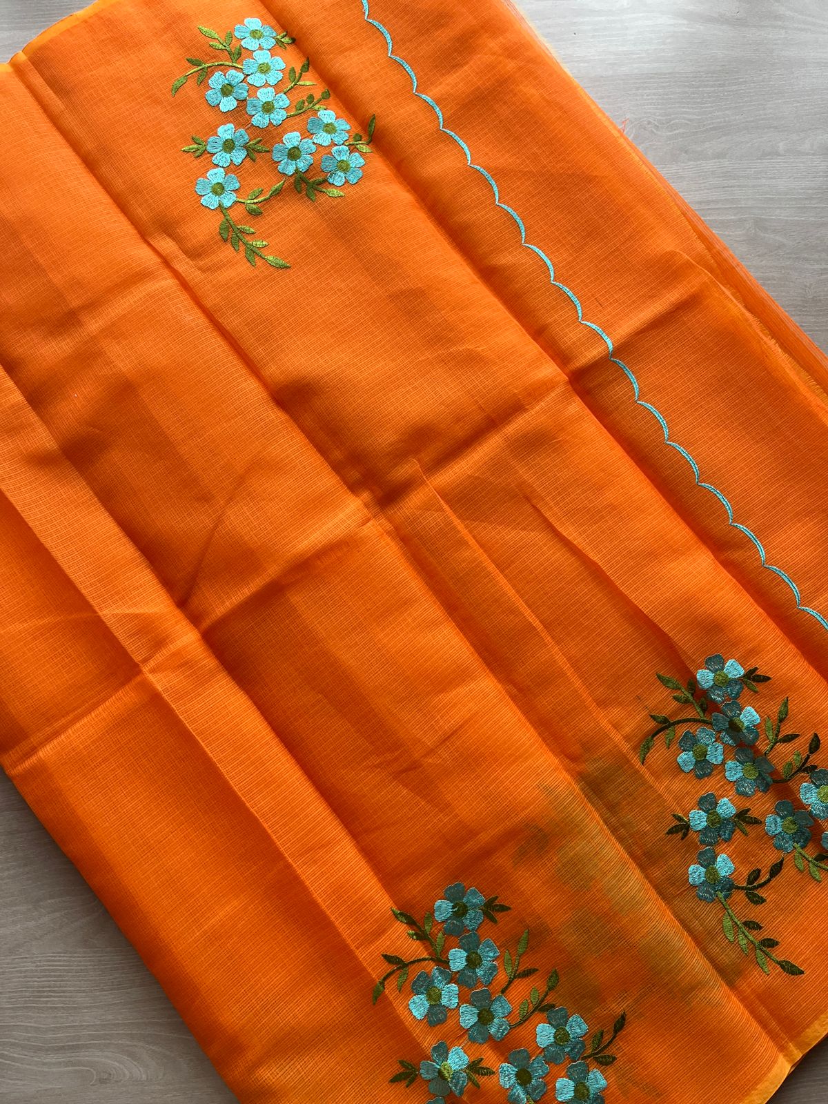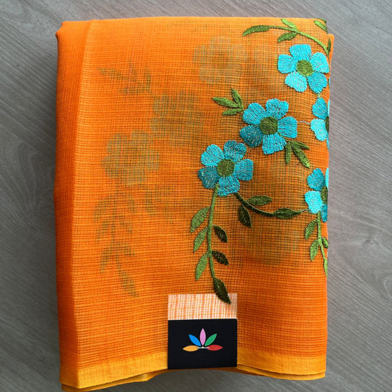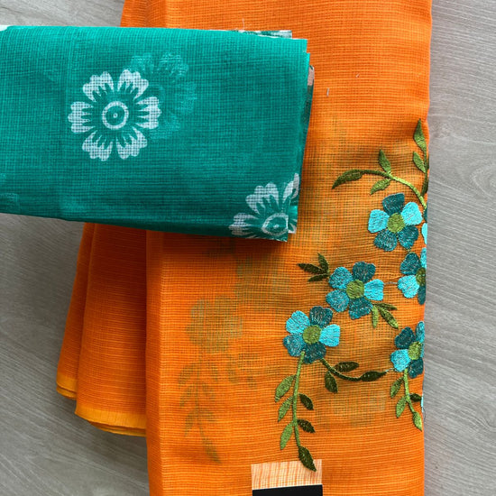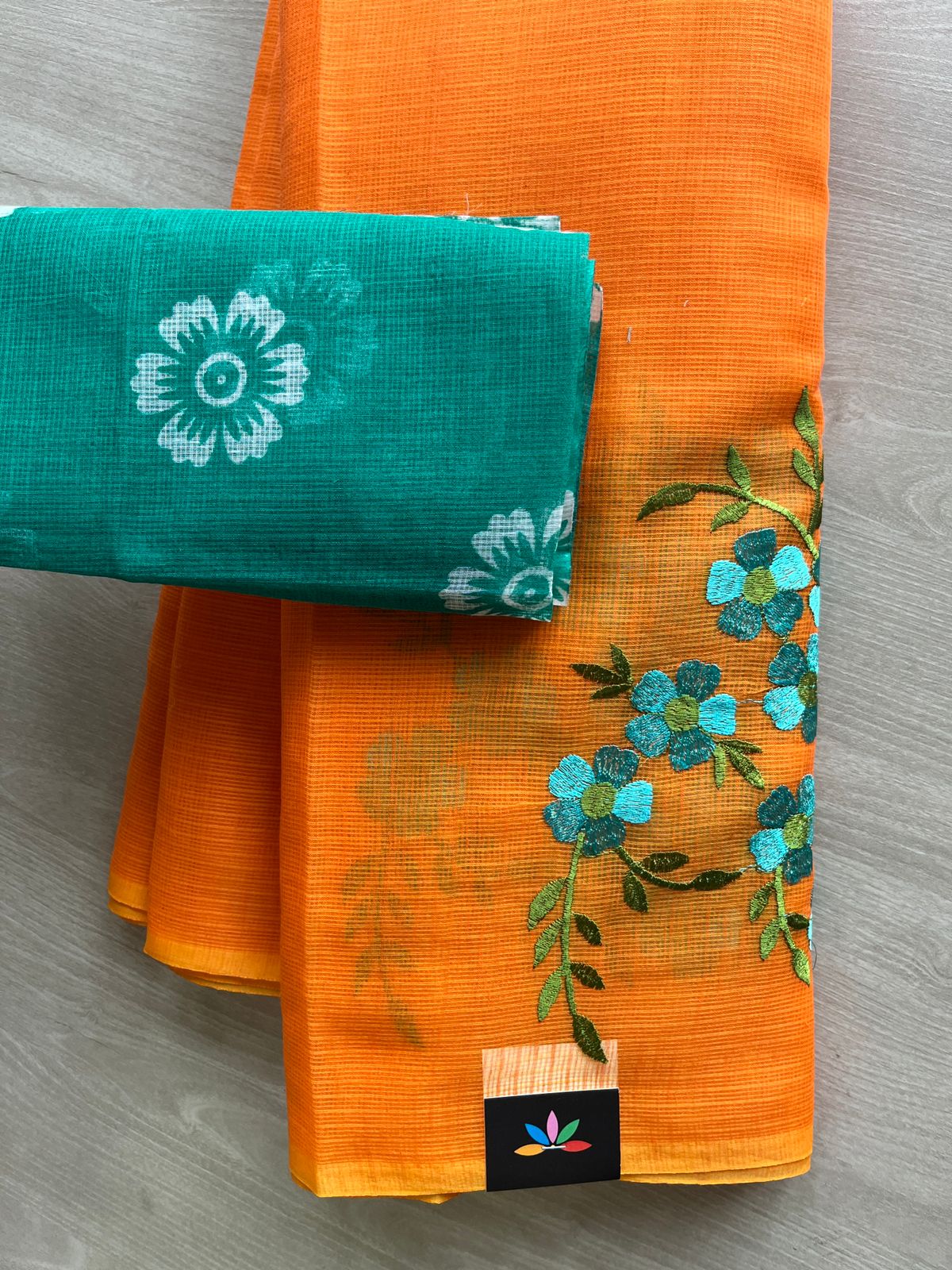 Simple Embroidery Kota Saree with Contrast Blouse-27321