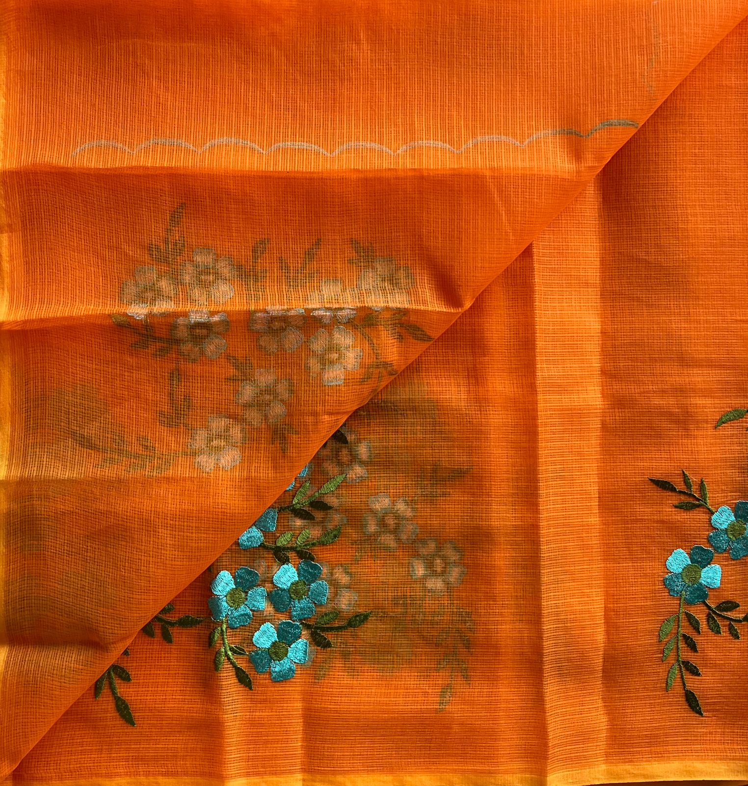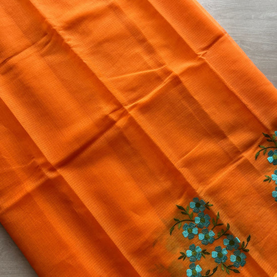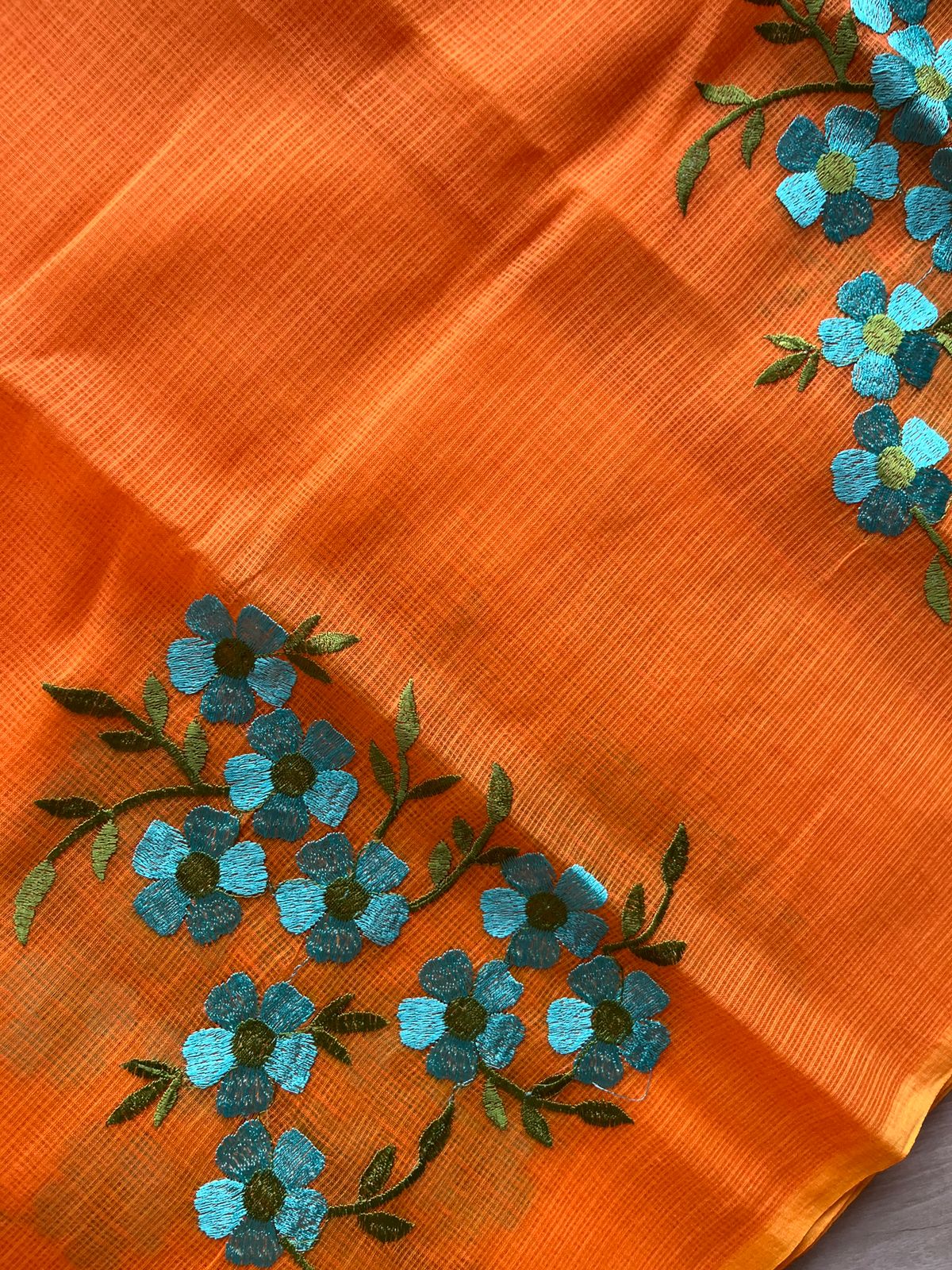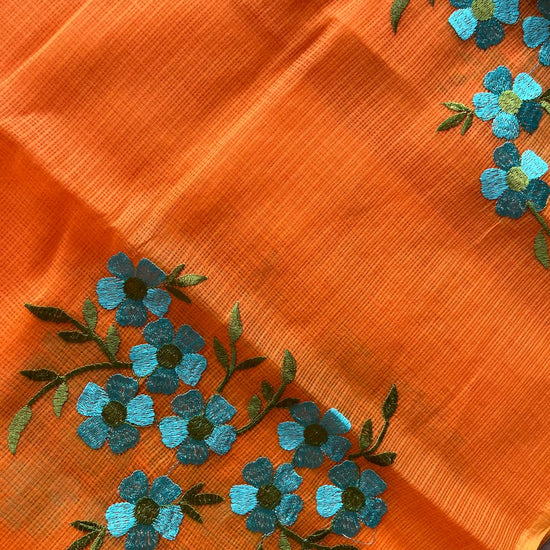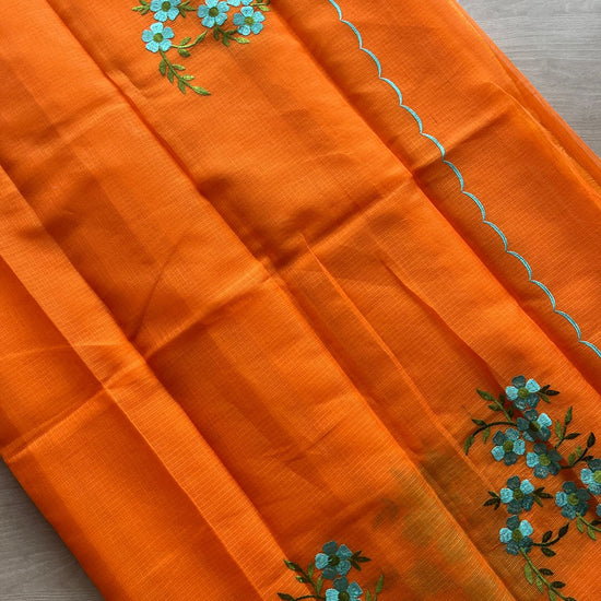 Simple Embroidery Kota Saree with Contrast Blouse-27321