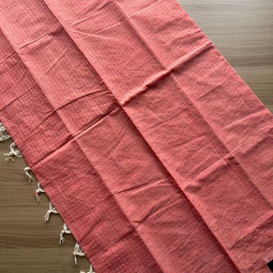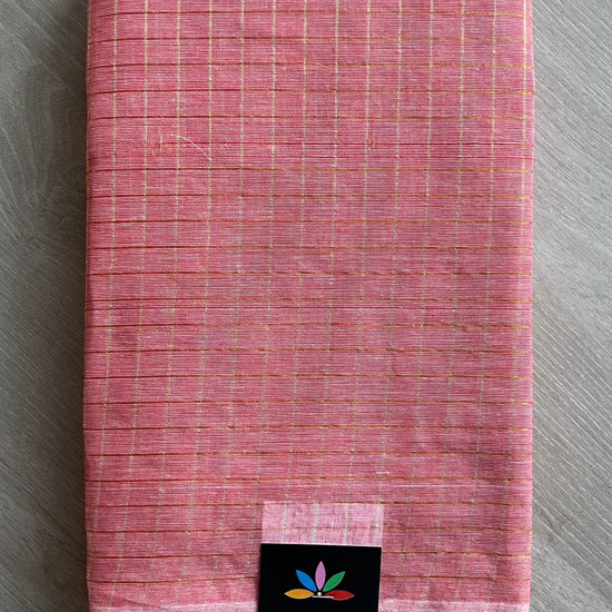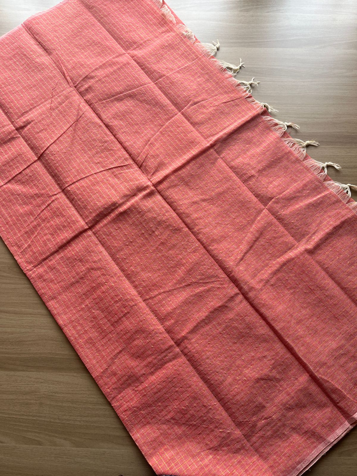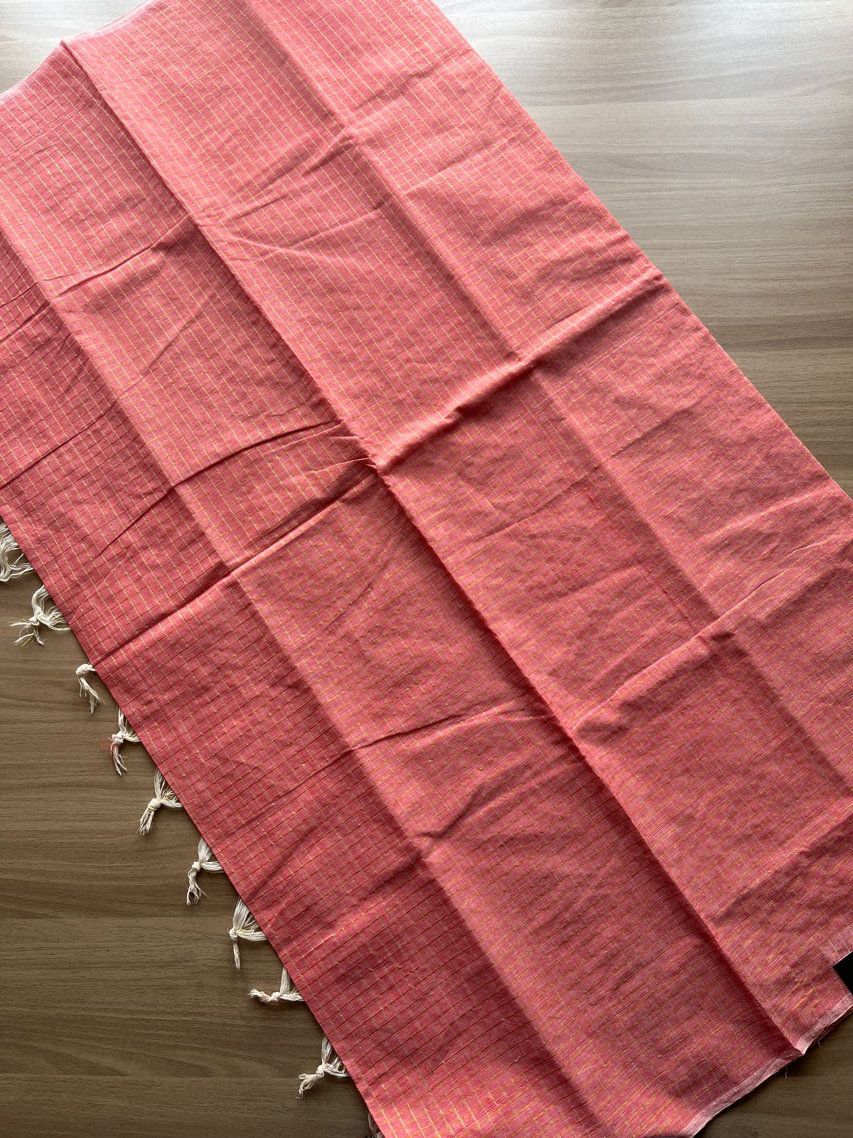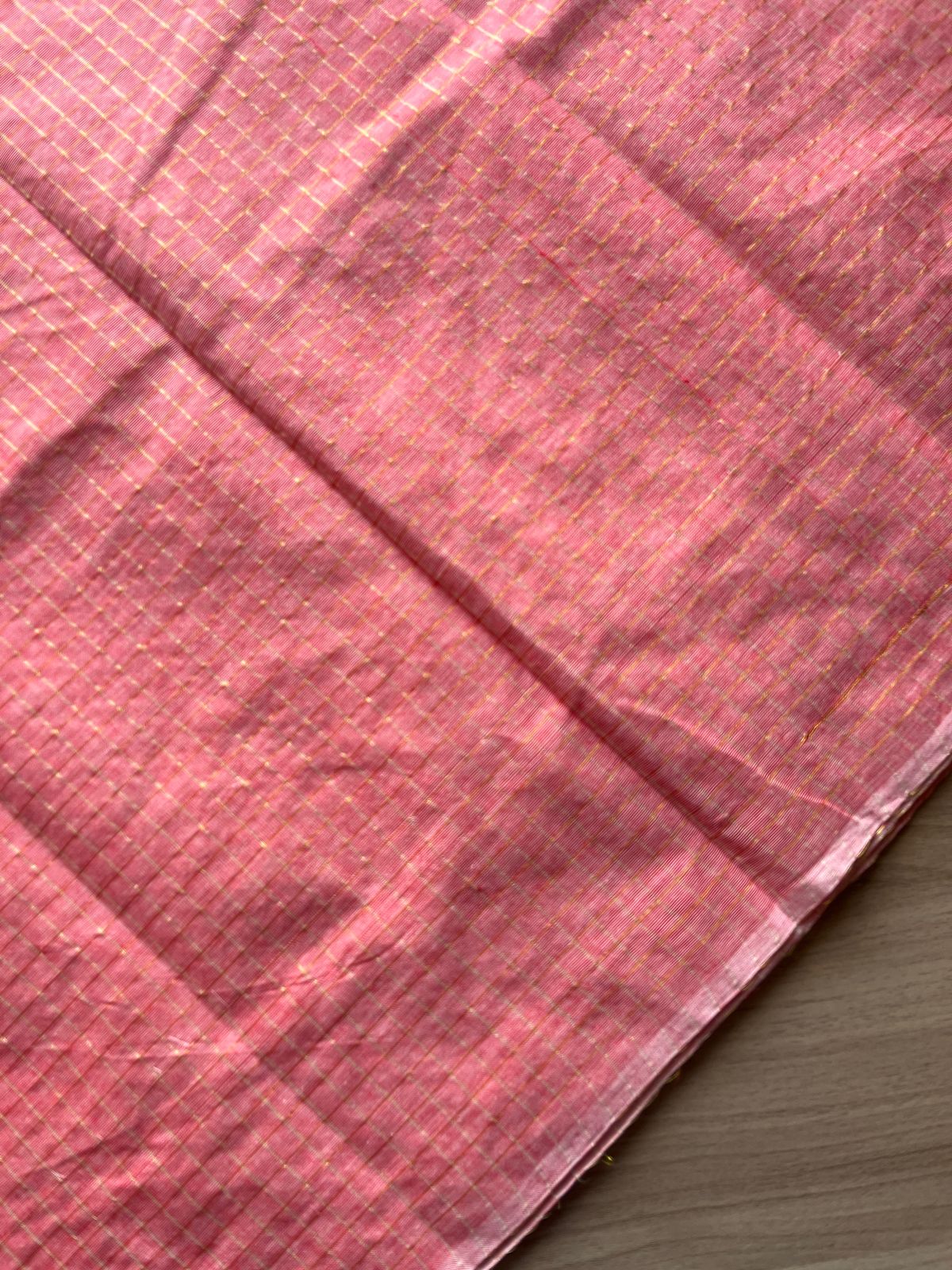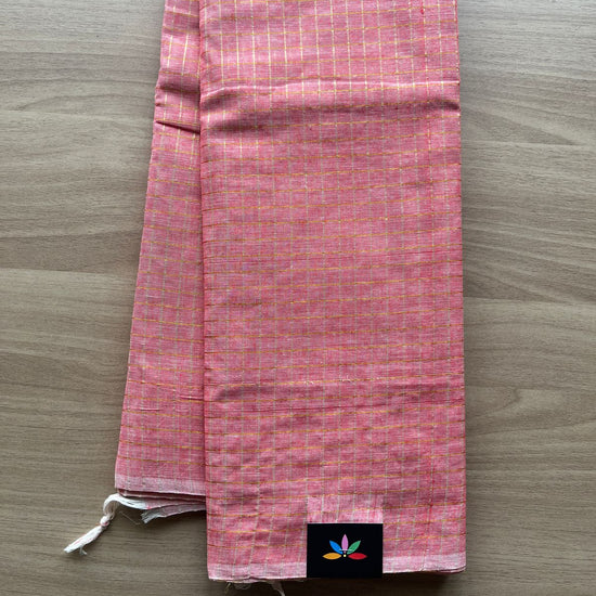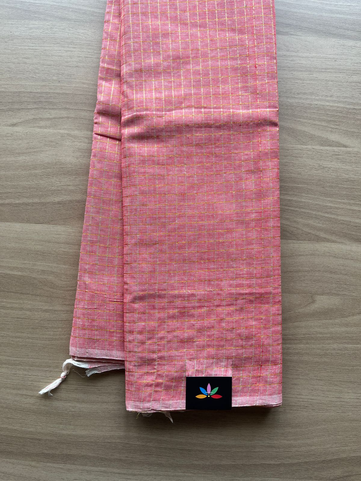Simple Zari Checks Cotton Starched Saree (Without blouse) - 25935