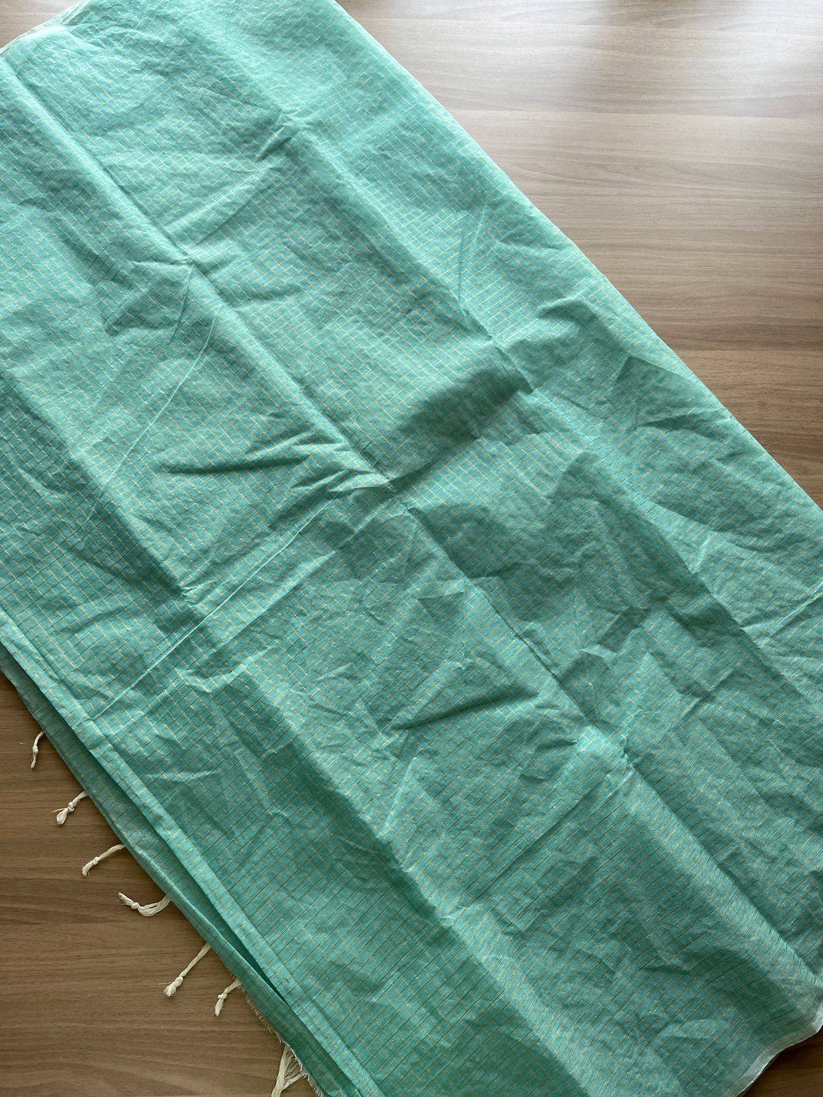 Simple Zari Checks Cotton Starched Saree (Without blouse) - 25937