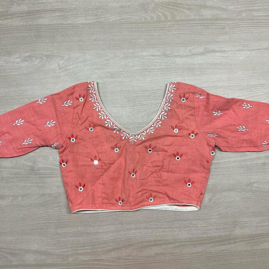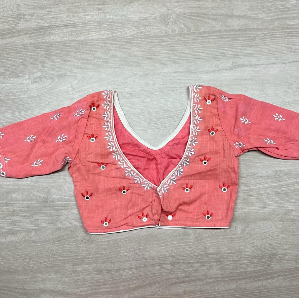 Size 34 - Embroidered Mirror Foil Work Pink Cotton Blouse -1705