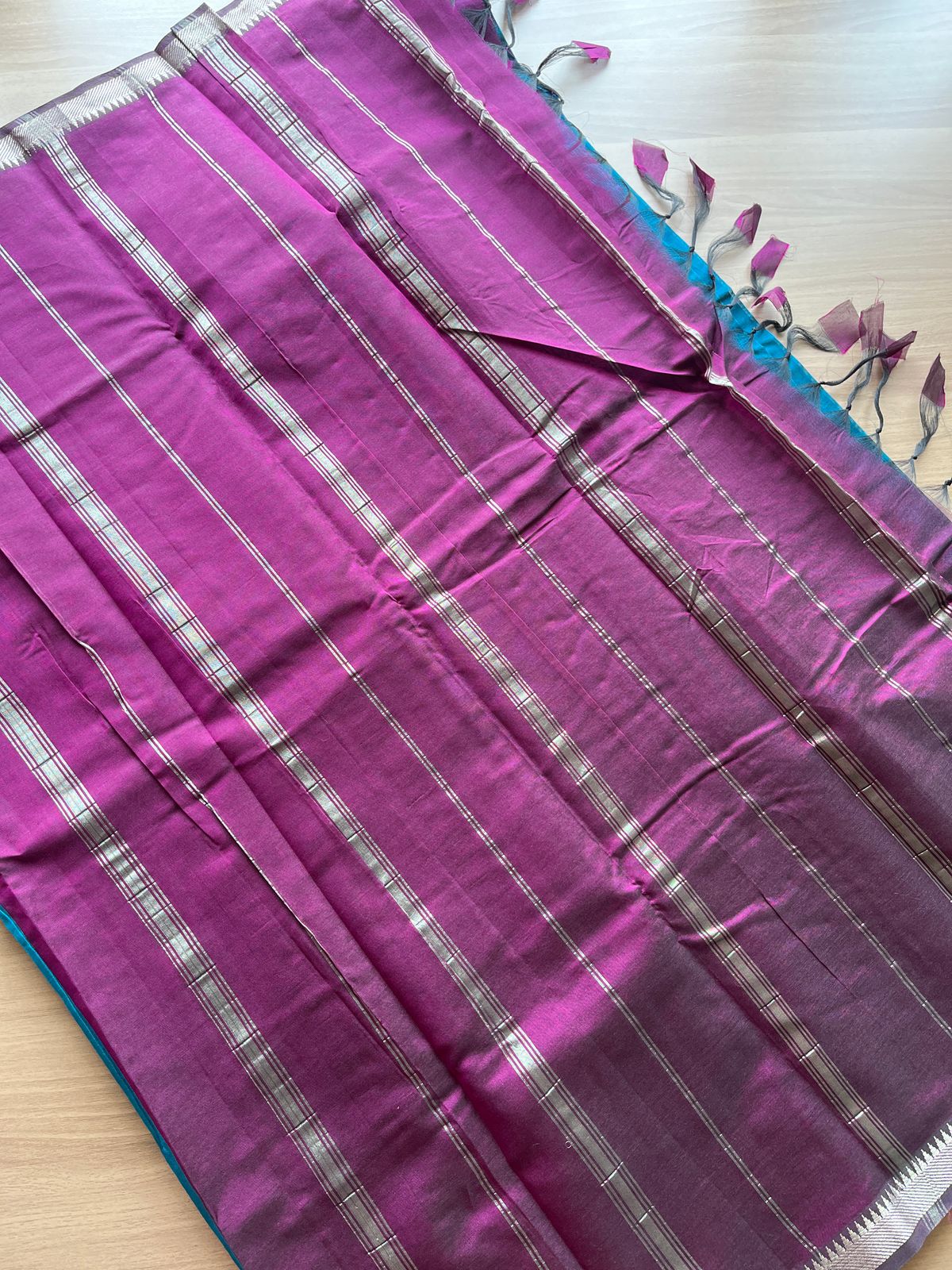 Small Border Handloom Mangalagiri Silk Cotton Saree (Thick Weave) -17938