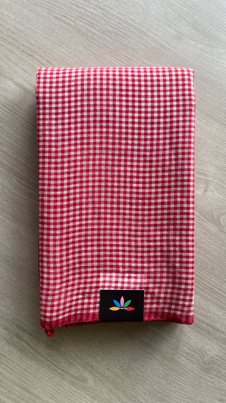 Small Checked Cotton Starched Saree (Without blouse)- 26059-26061