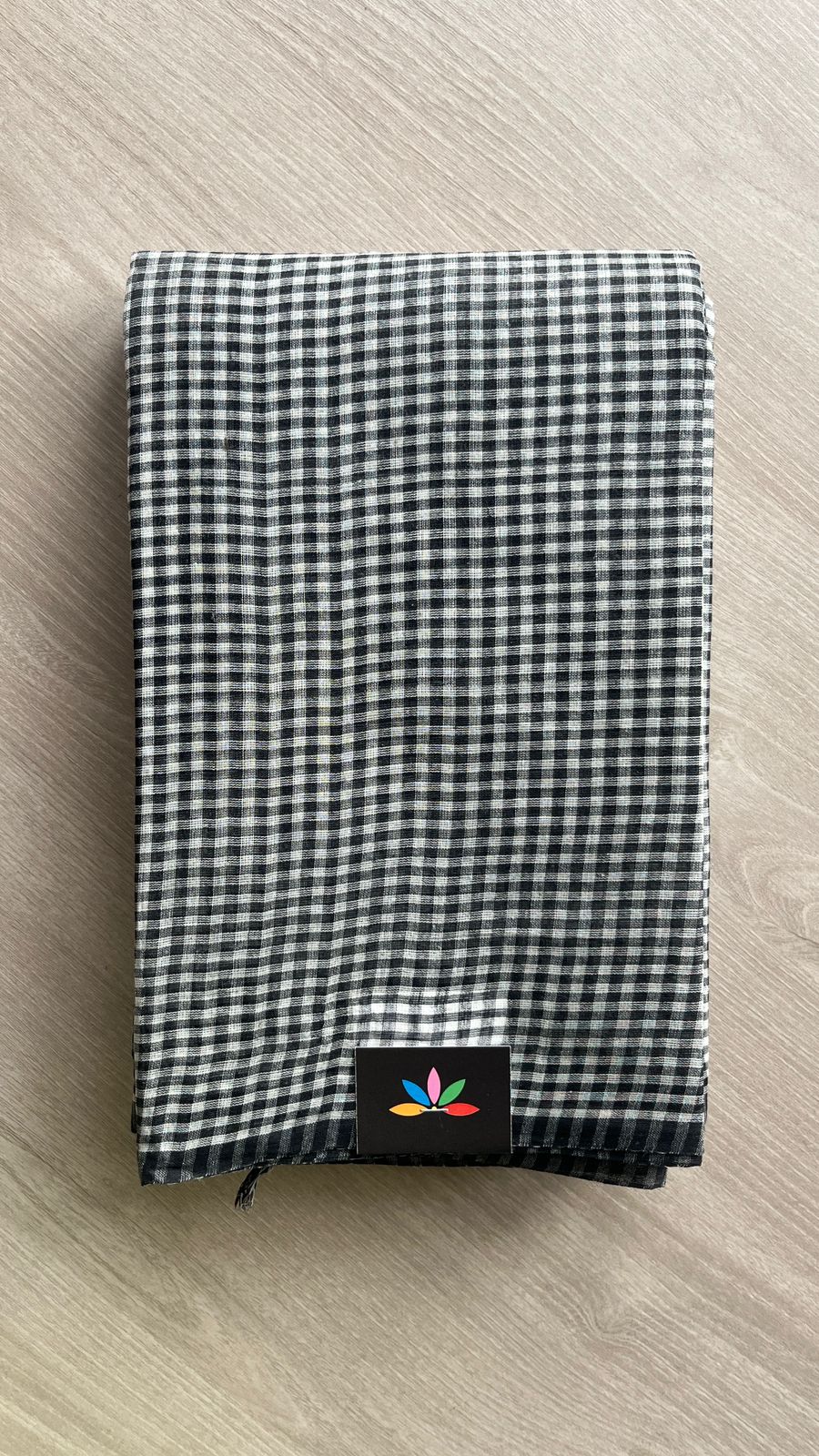 Small Checked Cotton Starched Saree (Without blouse)- 26064-26065