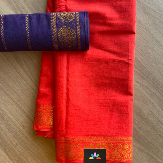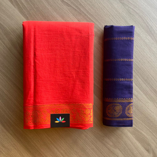 Small Mayil Border Cotton Saree with Contrast Blouse