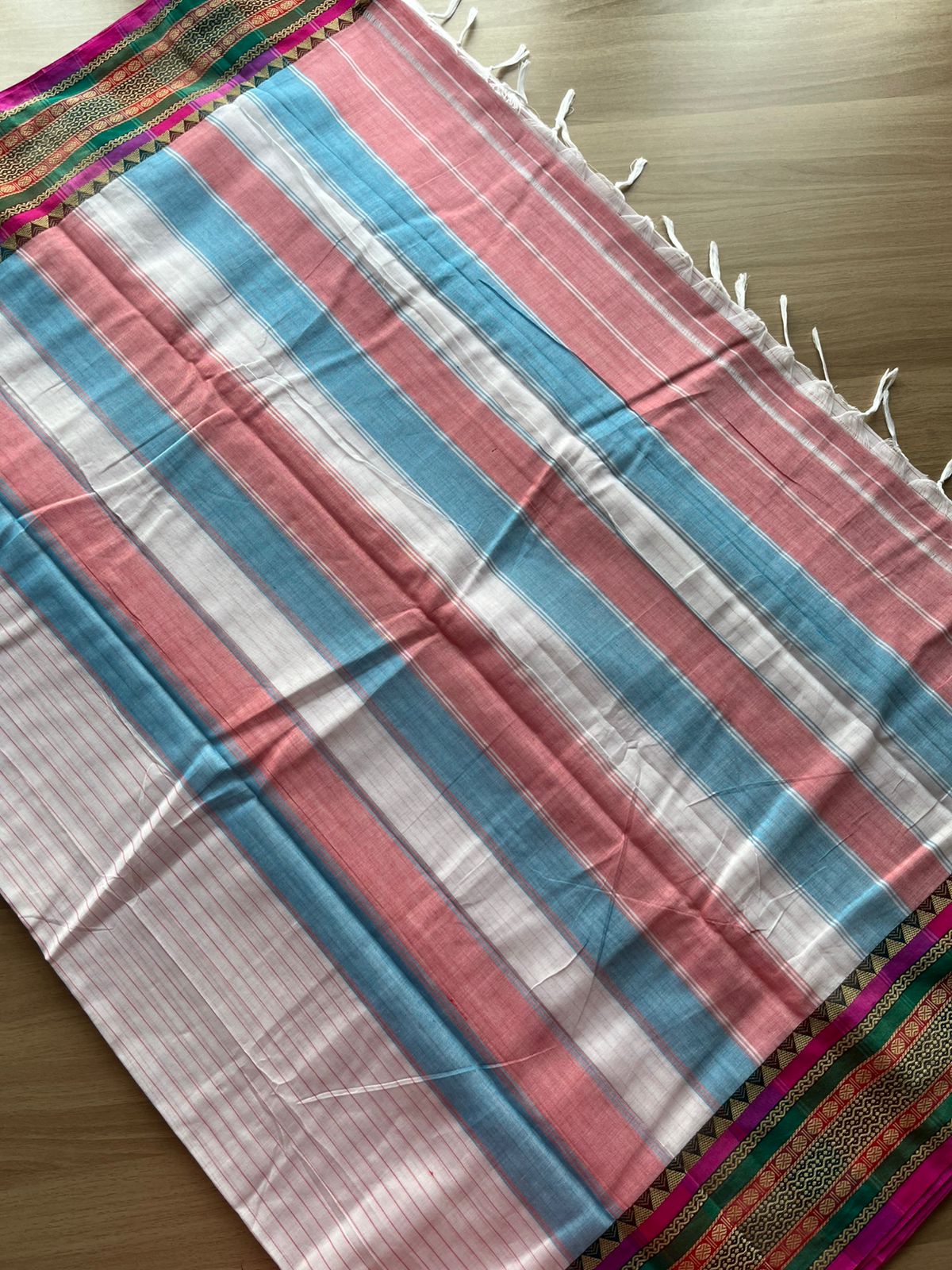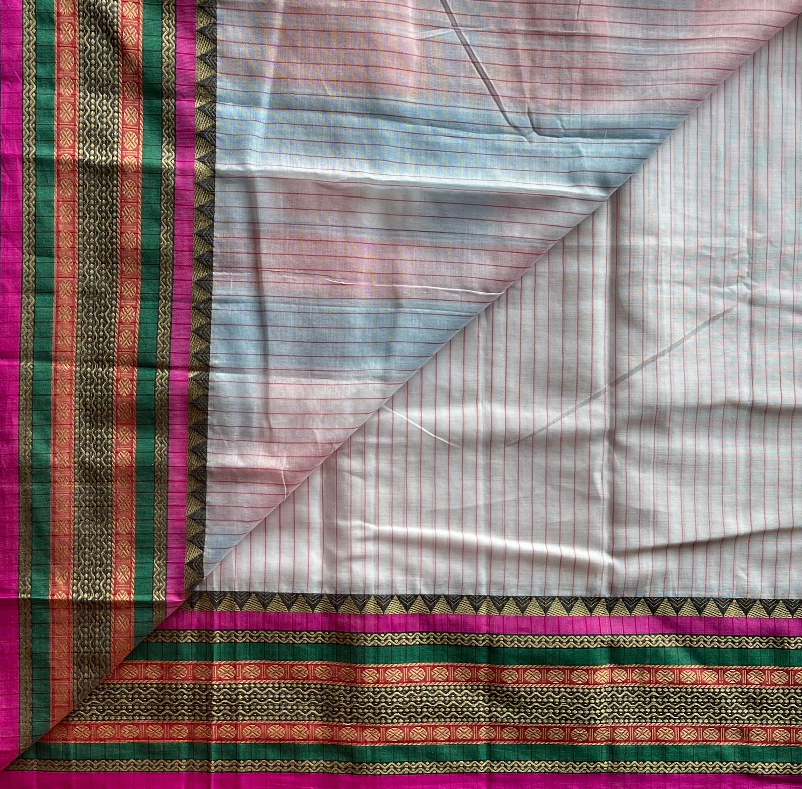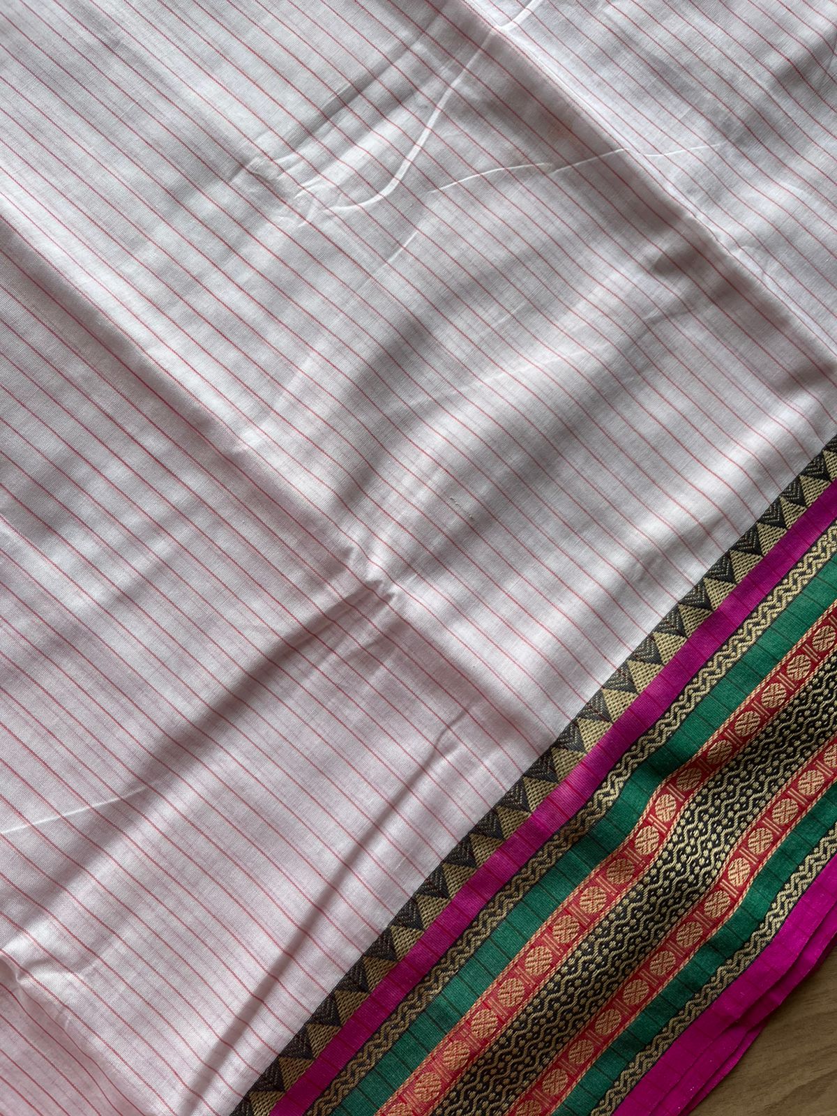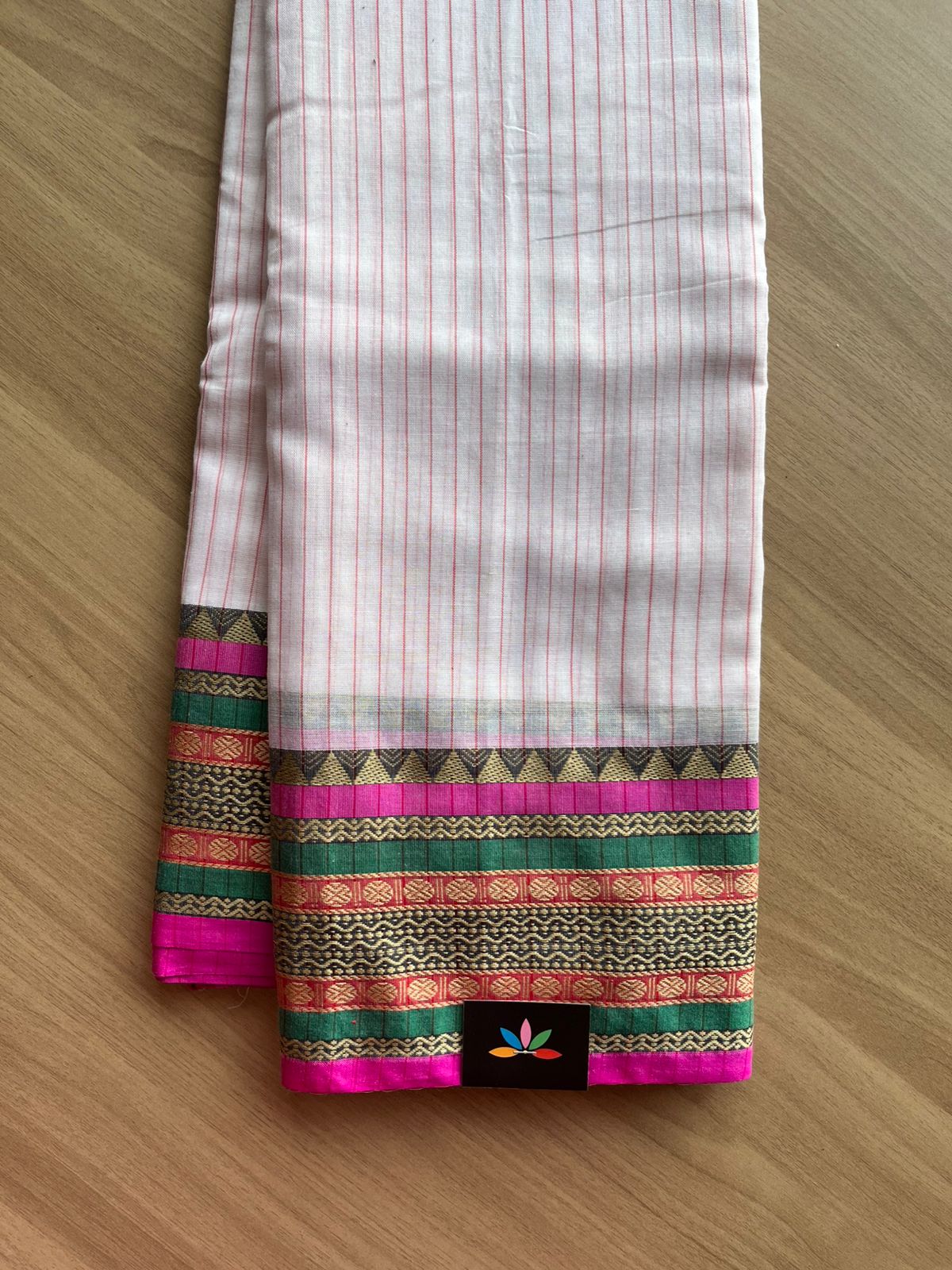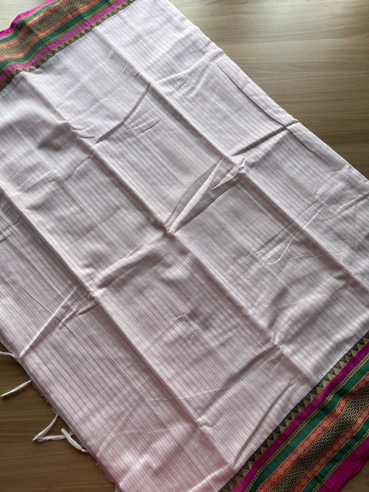 Stripped Long Border Narayanpet Mercerized Cotton Saree -24760-24761