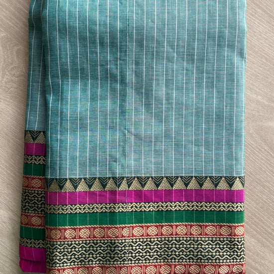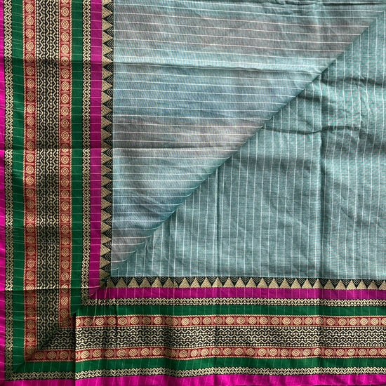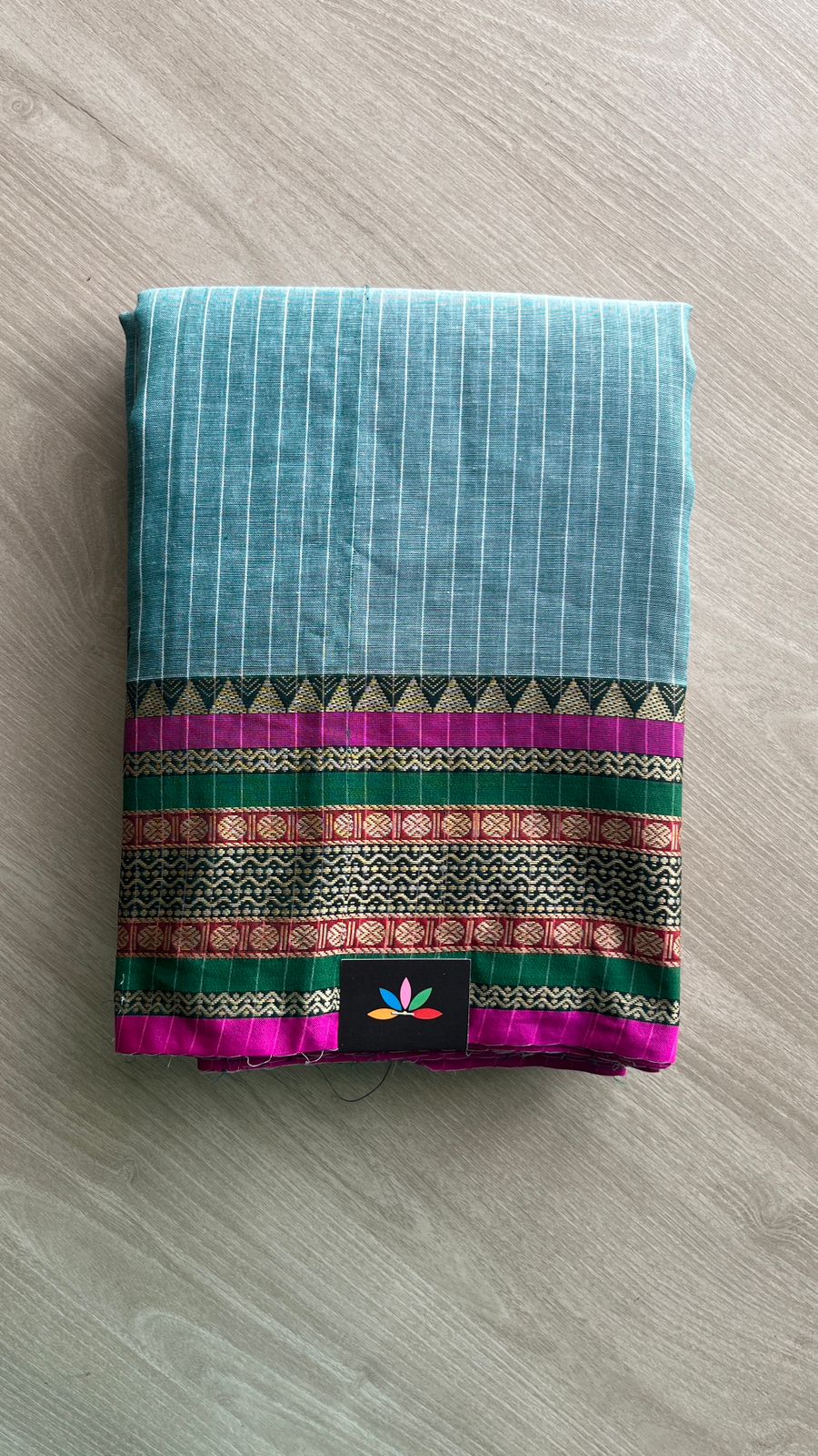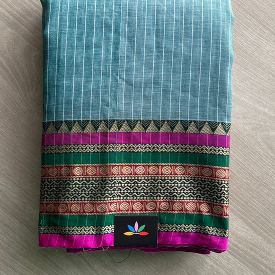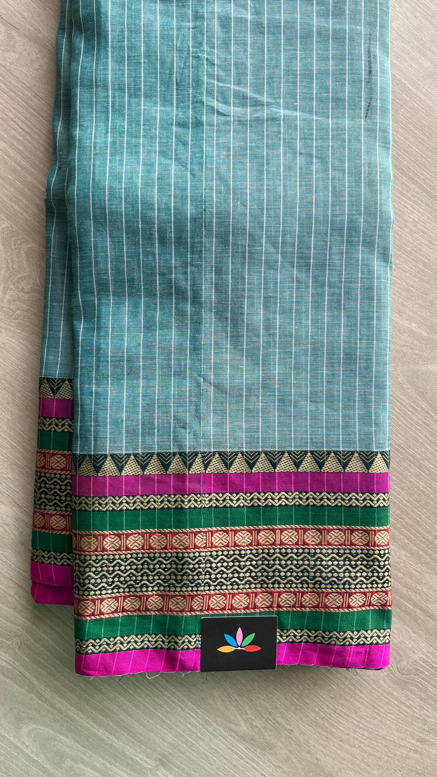 Stripped Long Border Narayanpet Mercerized Cotton Saree -25632-25633