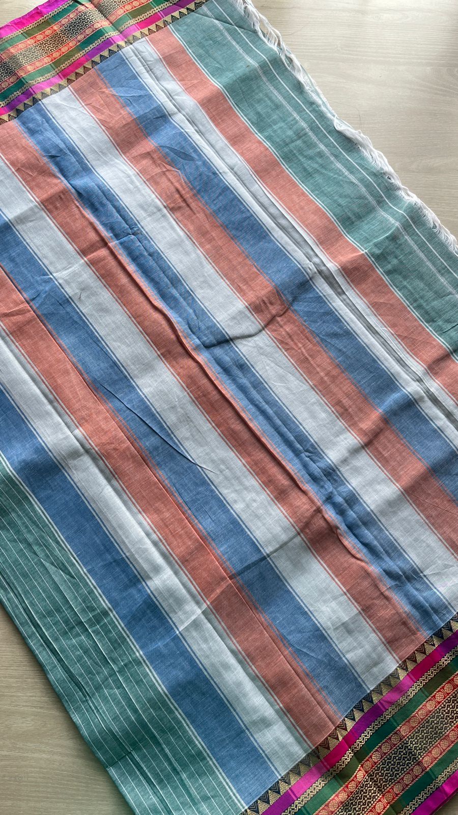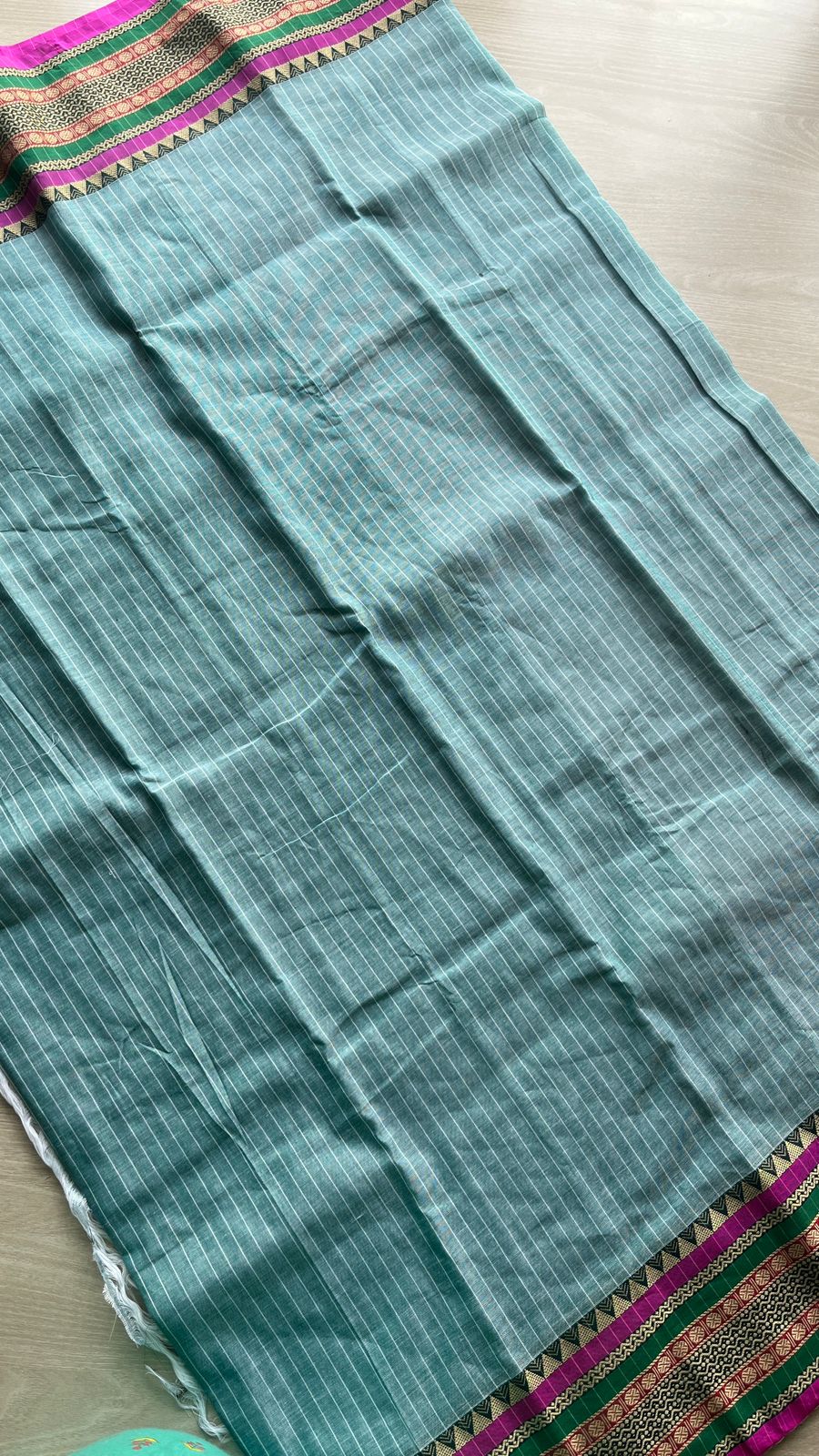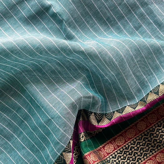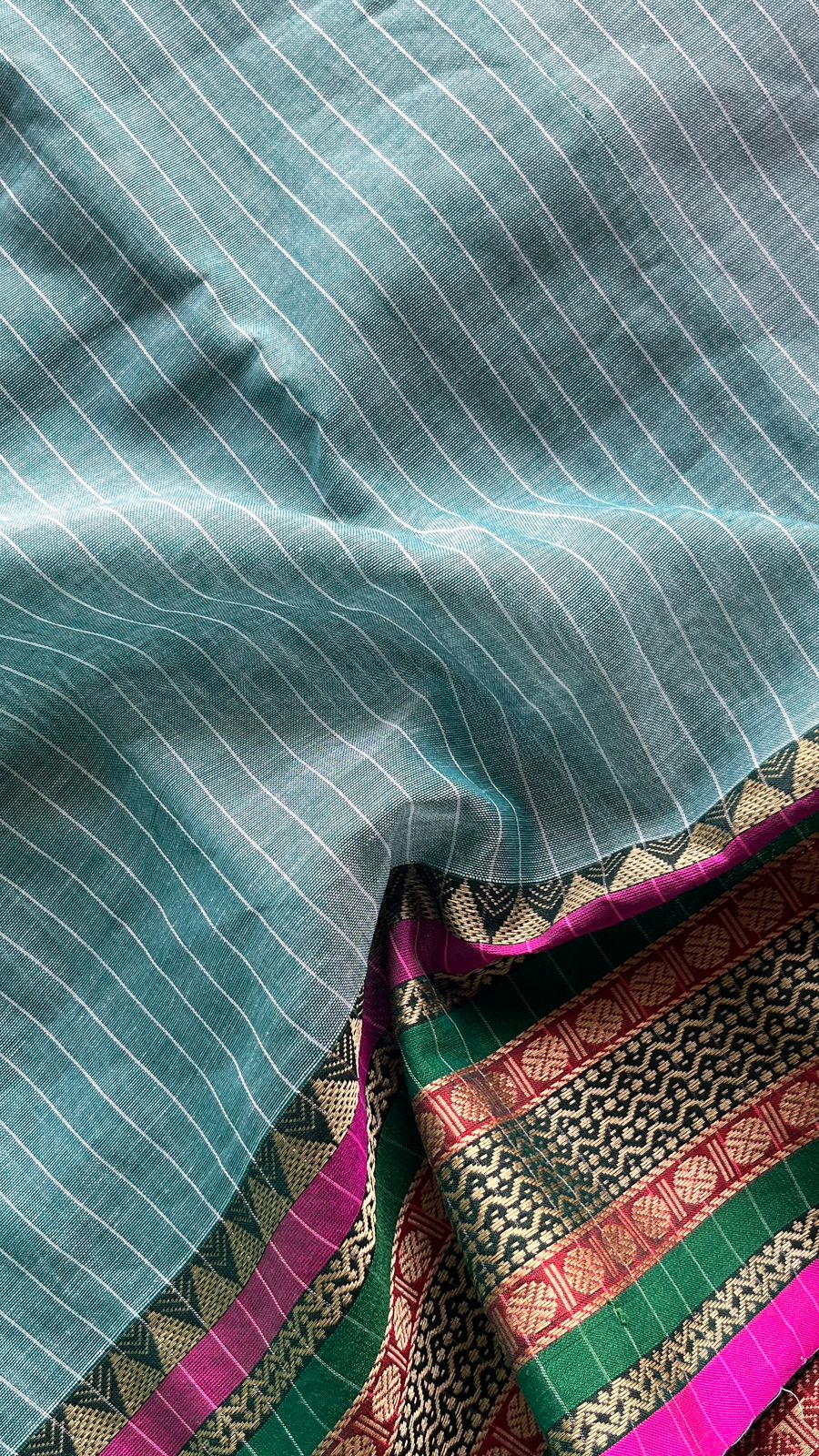 Stripped Long Border Narayanpet Mercerized Cotton Saree -25632-25633
