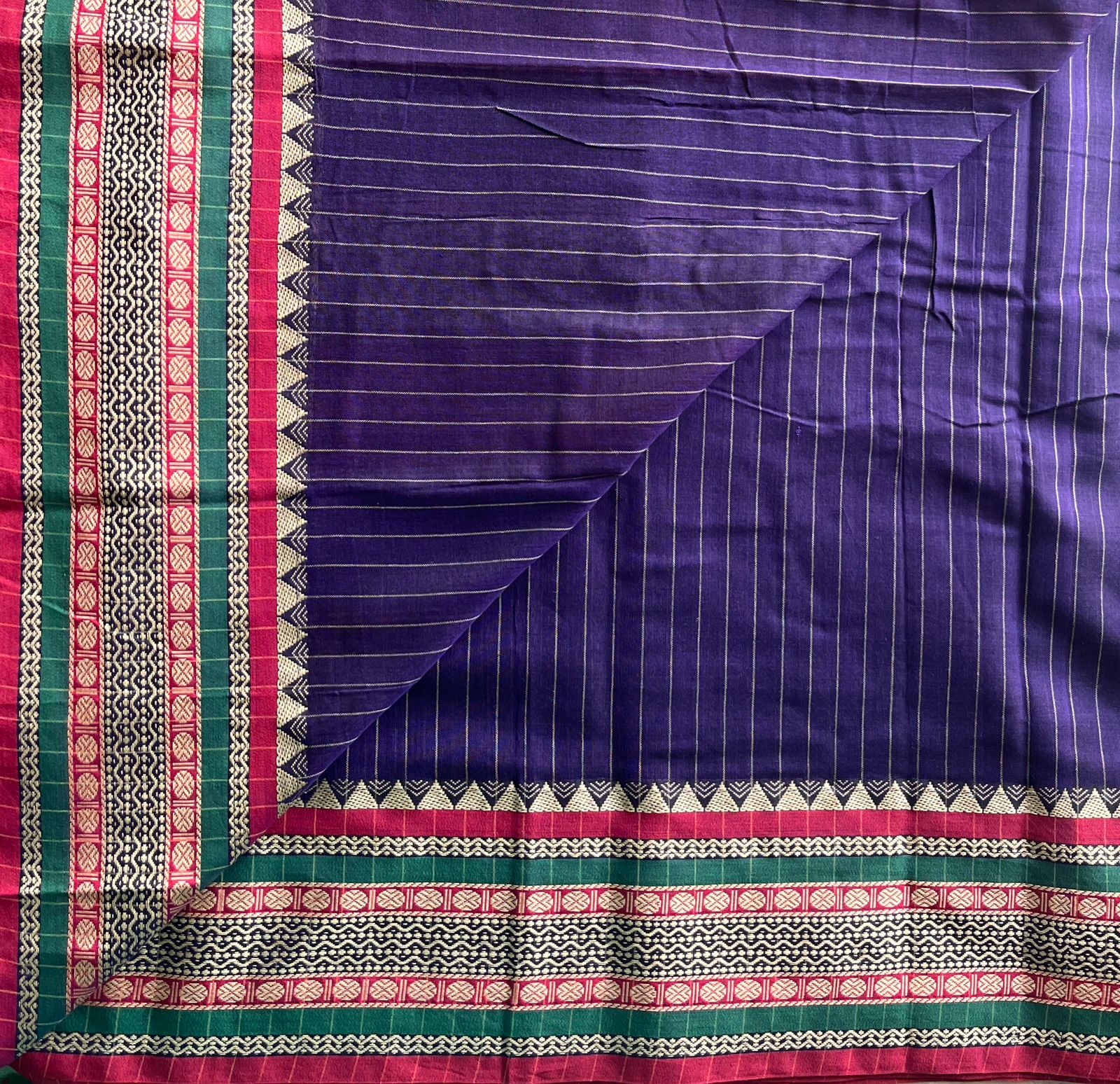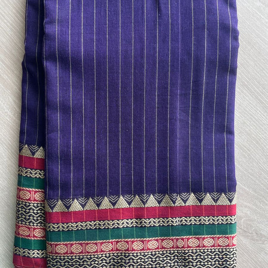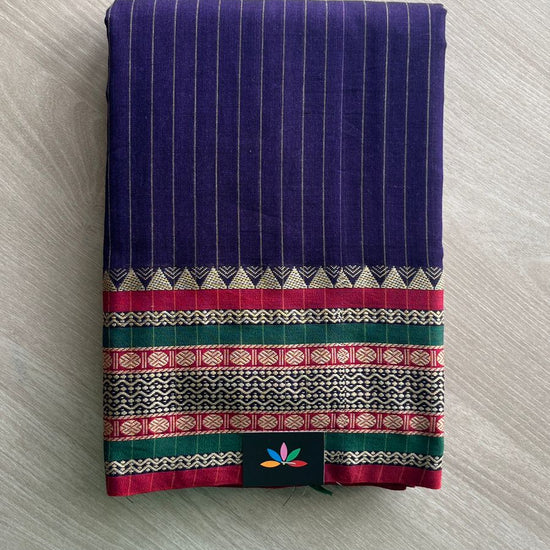 Stripped Long Border Narayanpet Mercerized Cotton Saree -25636-25637