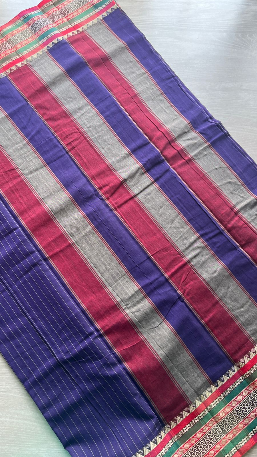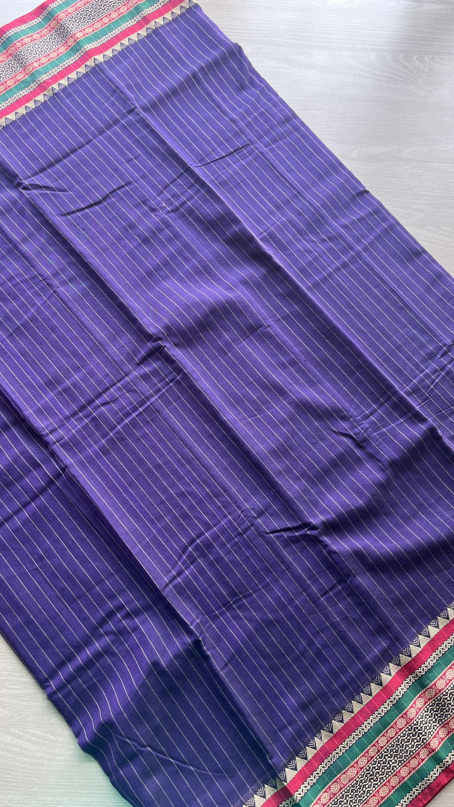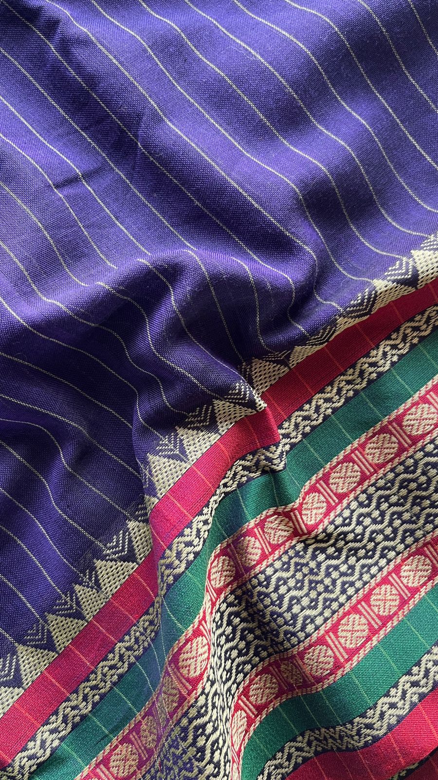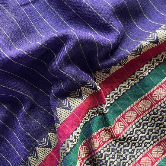 Stripped Long Border Narayanpet Mercerized Cotton Saree