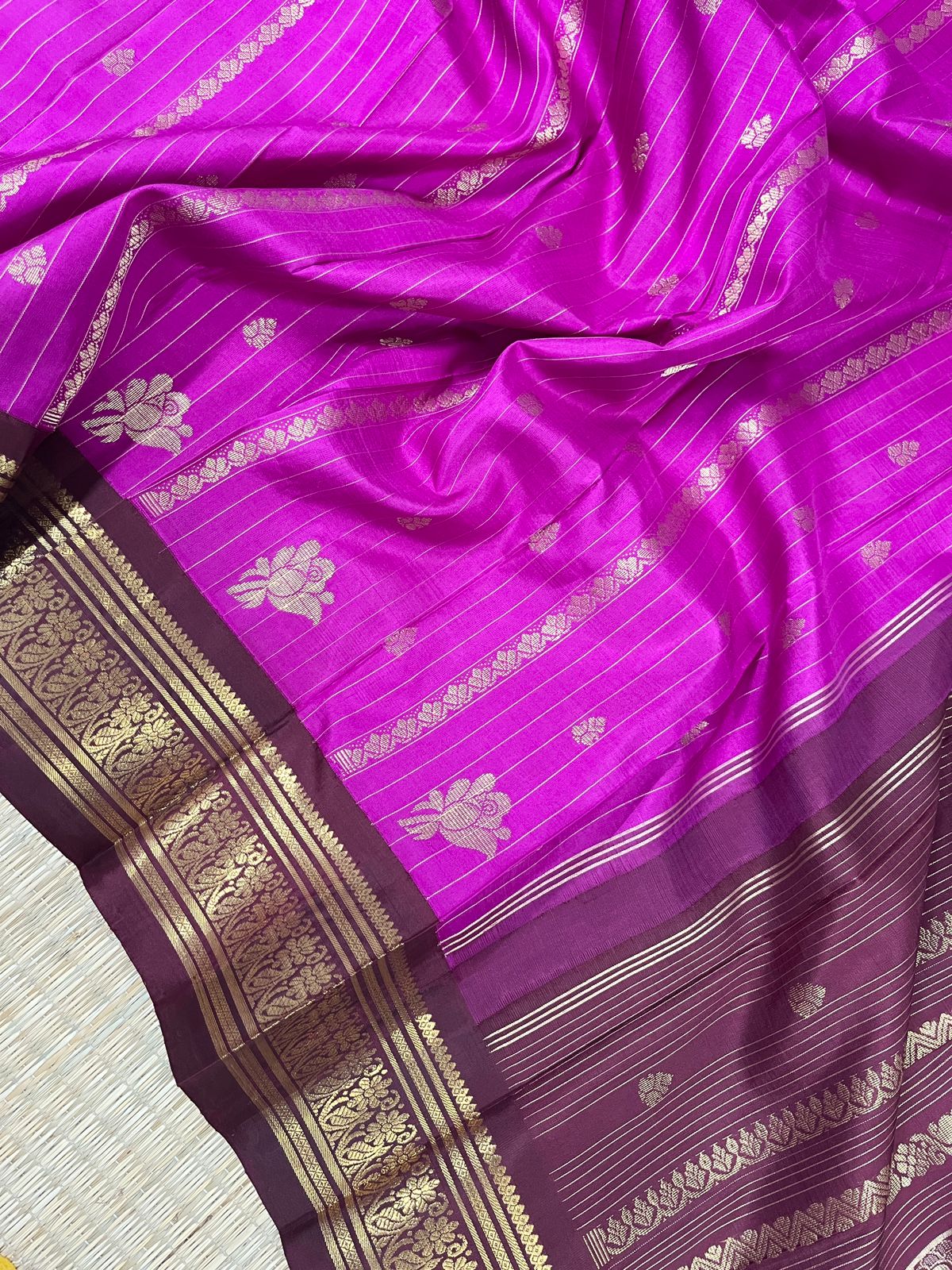 Thirubavanam Pure Handloom Silk Saree with Pure Zari Woven Oneside Border